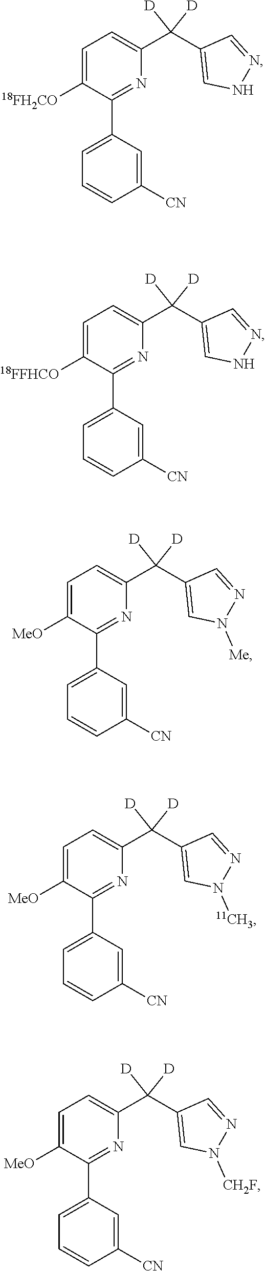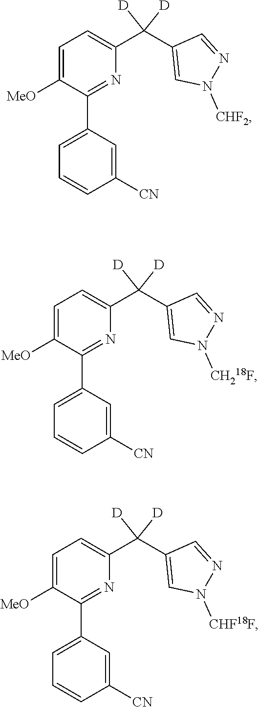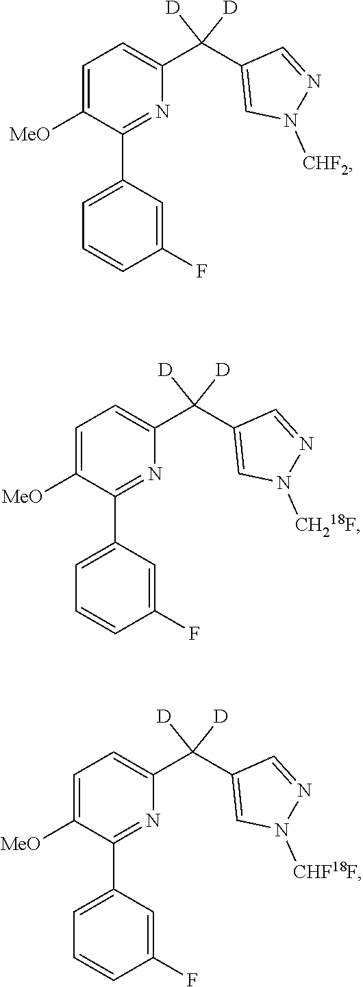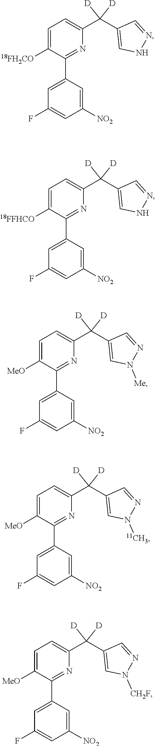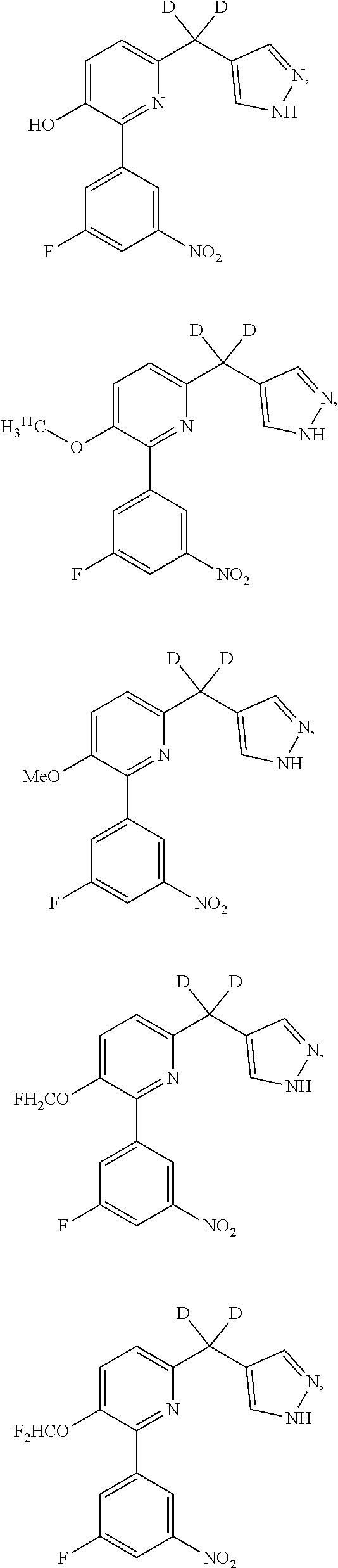Step 4: Crude 2-(3-nitro-phenyI)-3-methoxy-6-(dideuteriohydroxymethyl)pyridine (1.76 g) was dissolved in DCM (60 mL), cooled to 0° C., and treated with PBr3(1.2 mL, 12.6 mmol). The reaction was allowed to slowly warm to room temperature and stirred overnight. After 16 hrs, the reaction was poured onto saturated NaHCO3at 0° C. The phases were separated, and the aqueous phase extracted 2× DCM (70 mL). The combined organic phases were dried with Na2SO4and concentrated to give 2-(3-nitro-phenyI)-3-methoxy-6-(dideuteriomethylbromide)pyridine (1.83 g), which was used without further purification.