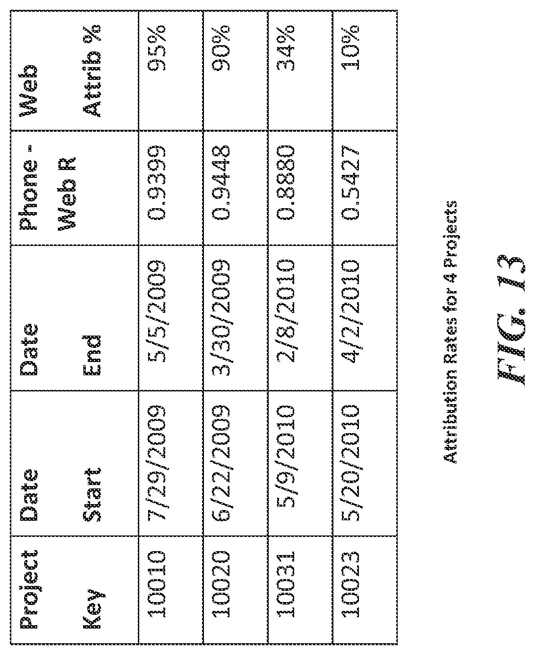 The machine learning problem is to train a model to predict, based on demographic distance, spot viewership, time difference between spot and response, the probability that this response-spot pairing is correct. A wide variety of models can be used for this problem including logistic regression and neural networks. A logistic regression is shown below An example of the prediction problem is shown in the table in ‘Demo dist’ is the demographic vector distance between the response, a person buying a product, and the media event which can also be defined by a demographic vector distance. Values for the demo dist are normalized to be between 0 and 1. The demo dist is a measure of how similar or dissimilar the demographic of the person buying the product and the demographic of the media event. In one embodiment, a correlation coefficient can be used instead of the demo dist. For example, if media was run on the TV Channel “Adult Swim”, and a customer responded to the advertisement 5 minutes after it ran, and that customer's demographics were “young”, “male”, “high school education”, then the probability that the customer came from that TV channel would be higher since their demographics match that of typical “Adult Swim” viewers. Likewise if the customer who responded was over 80 then the probability would decrease. ‘Geo dist’ is a measure of the distance between the media event and the person responding to the media event. For example, one of the spots, spot key 2, aired in the same geographic region as the response, as indicated by a geo distance of 1, while the other three spots have been assigned a geo distance of 0 because the responder is not in the same geographic region as the media event. While binary geo dist is used for this particular problem, the geo dist value for the spots can be any value between 0 and 1, inclusive. ‘High phone period’ is a normalized measure of how many phone calls are received at a particular time. This measure factors in the likelihood that people are calling in organically, rather than in response to an advertisement. For example, if a television spot airs at midnight and no phone calls are typically received at that particular time. Then if a phone call is received after the spot airs at midnight, it is more likely to be related to the midnight ad. The ‘correct spot for response’ identifies whether a spot is the “correct” spot for this response (correct spot=1). In this case, spot key 2 has been identified as being the spot that caused the telephone response. Ground truth cases are the events that are clearly causally linked to a media event because there is nothing else in time that was close enough to have caused the response. The information for the response to spot key 2 in the table in A. Drag Orders Several modifications are needed to ensure that the prediction problem is practical. Toll-free numbers (TFNs) are often unique for a television station, however different numbers tend not to be given for separate airings on the same station. Therefore, if an advertisement displays on a station like FOX once at noon and again at 3 pm, and a direct response occurs at 3:30 pm, the same toll free number is being used for each spot. It is likely that the response is due to the airing at 3 pm. However there is a small chance that the response is due to the airing at noon. This phenomenon is referred to in the television industry as “drag orders”. In order to solve this problem a technique has been developed for the system that is referred to as the “Lone Spot” method. Drag orders can only exist if multiple airings occur in a short period of time. Therefore, cases were identified where only a single Spot aired within W hour period such as 24 hours. This allows the system to create probabilities for response after airing. B. Partial Attribution Throughout this disclosure the most probable media event that caused a response will be the target, as this makes for easy reporting and analysis. In online advertising, similar simplifications are used. The most common conversion tracking simplification has been called by some authors “The Last Ad Standard” (Chandler-Pepelnjak, 2009). This is done by attributing the conversion to the most recent ad-click from that user, where the ad and the conversion page are both owned by the same advertiser. Under this standard, one and only one event also receives credit for the conversion. However other view or click events may have been related to the ultimate decision to convert (Biggs and Hollis, 1997). In the machine learning literature reinforcement learning methods such as Q-learning routinely assign credit to multiple earlier events (Sutton and Barto, 1998). In online advertising Atlas refers to “engagement mapping” (Chandler-Pepelnjak, 2009) to assign credit backwards in time to several originating click events. Partial conversions can be supported by the present model. The model above predicts conditional probabilities for each of many events and selects the maximum. These probabilities can be retained for partial attribution. The schema which stores the response-spot mappings can also be modified slightly such that (a) the mapping is changed to 1:M so that multiple spots can be associated with the response, and (b) probability is added to the schema to show the relative weighting for each of the media events in bringing about the response. VII. Variables A variety of variables are available to predict the probability of the response being conditionally dependent upon the spot. A. Geography Television advertising airings sometimes are localized by geography, and other times are national in nature. When the airings are localized by geography, it is possible to significantly de-weight the probability of a response if it occurs outside of the geographic area. Some examples of responses that are out-of-geo are shown in Although geography is a very important variable, it ca