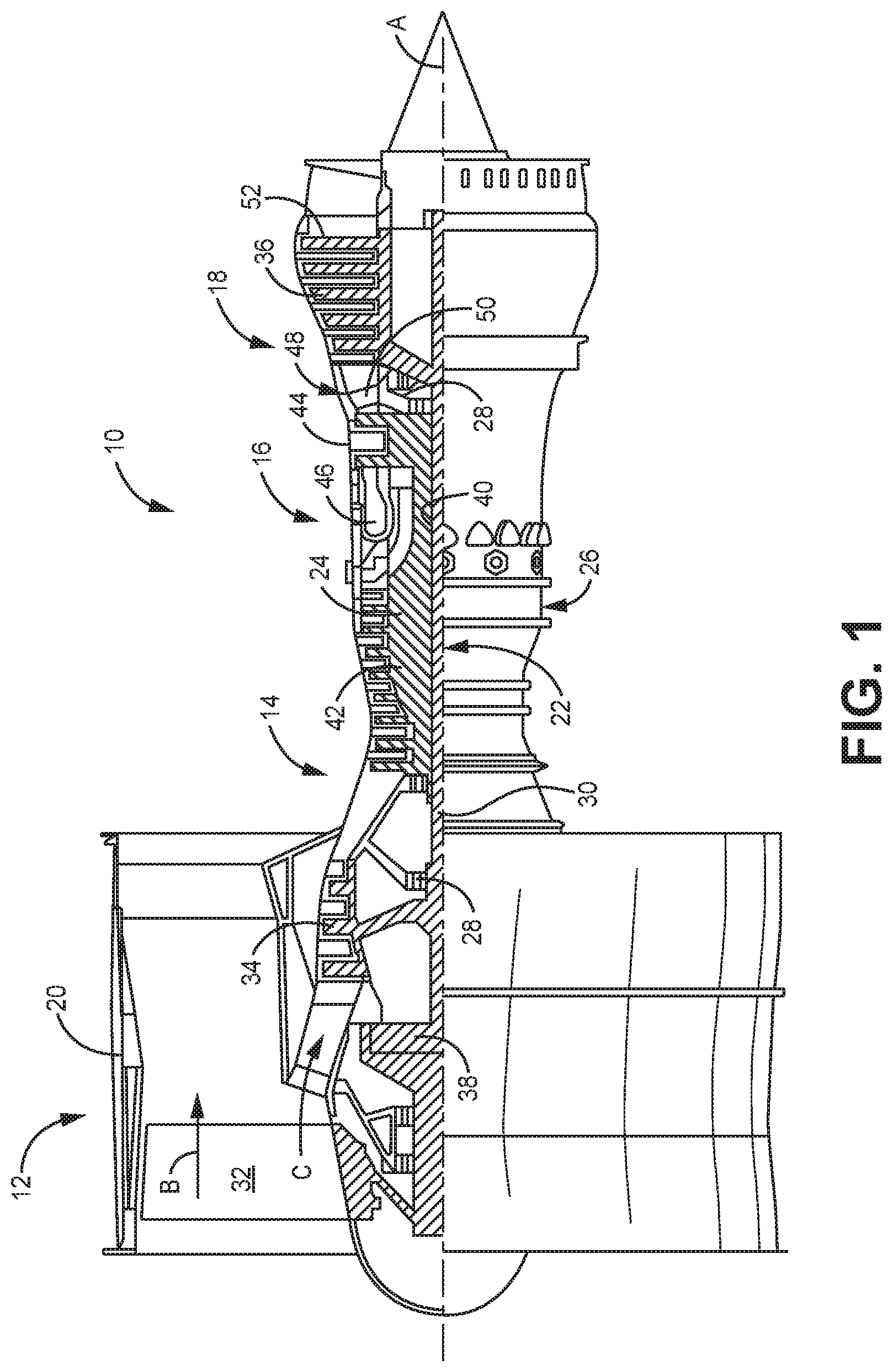 a first turbine stage comprising a plurality of blades rotatable about an engine axis; each of the plurality of blades comprising a blade body and a tip at a radially outermost extent of the blade body; and the active clearance control system of wherein the active clearance control system is configured to maintain a predetermined clearance between a radially inner side of the blade outer airseal and the tip of each of the plurality of blades. 13. A method of maintaining a predetermined clearance between an airfoil tip and a blade outer airseal within a gas turbine engine, the method comprising: