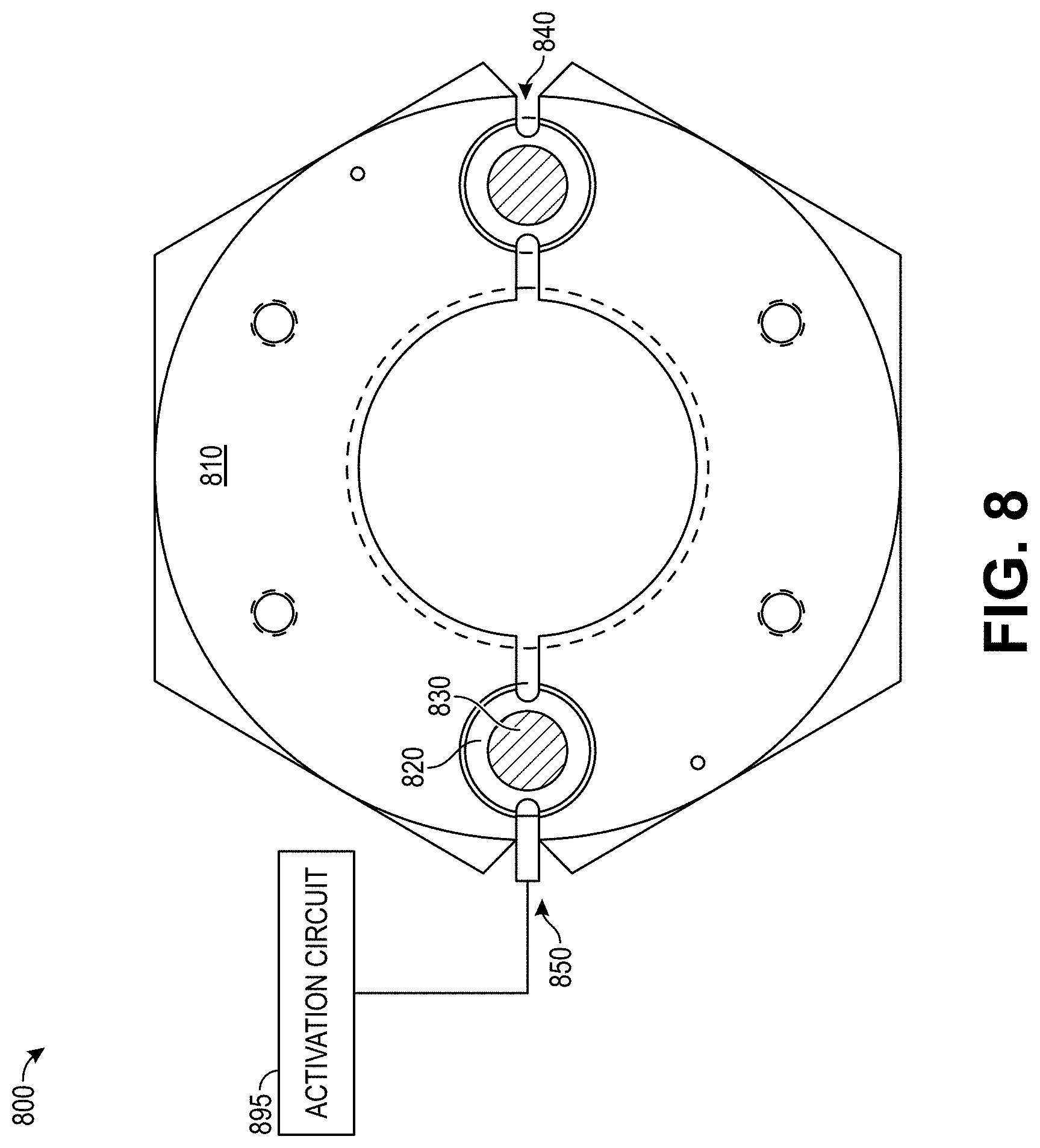 This application is generally directed to ski bindings. Various sports employ a sport boot coupled to another sporting platform (e.g., a ski or board) by way of a binding that controllably releases the boot or user's foot from the platform. The release of the user's foot or boot from the platform is for safety reasons (e.g., to avoid excessive forces or twist of a user's foot) in case of an accident. In most current systems the release occurs when a mechanical threshold, e.g., a force exceeds a preset limit. The binding then mechanically decouples the user's foot or boot to set the platform (ski, board) free. These conventional bindings are of limited use in protecting from very rapid events such as those experienced in competition sports like downhill skiing. Injuries to users include bone fractures, spinal injuries, concussions and other head injuries. More particularly in winter mountain sports, anterior cruciate ligament (ACL) injuries are far too common. Conventional bindings are manually adjusted based on anecdotal experience or approximate metrics, have finite (mechanical) response times, and do not sufficiently or effectively respond to prevent or reduce ACL or other injuries. Attempts to modernize bindings and binding release systems have not resulted in effective or commercially viable alternatives to current systems. Example embodiments described herein have innovative features, no single one of which is indispensable or solely responsible for their desirable attributes. The following description and drawings set forth certain illustrative implementations of the disclosure in detail, which are indicative of several exemplary ways in which the various principles of the disclosure may be carried out. The illustrative examples, however, are not exhaustive of the many possible embodiments of the disclosure. Without limiting the scope of the claims, some of the advantageous features will now be summarized. Other objects, advantages and novel features of the disclosure will be set forth in the following detailed description of the disclosure when considered in conjunction with the drawings, which are intended to illustrate, not limit, the invention. An embodiment is directed to a apparatus comprising a ski binding including a spring that has a first state that secures a ski boot in the ski binding and a second state that releases the ski boot from the ski binding; an explosive bolt in mechanical communication with the spring to releasably maintain the spring in the first state; a battery; an activation circuit extending from the explosive bolt to the battery, the activation circuit including a switch having a connected state in which the battery and the explosive bolt are electrically connected through the switch and a disconnected state in which the battery and the explosive bolt are electrically disconnected; and a processor-based controller electrically coupled to the switch, the processor configured to automatically generate an output signal that transitions the switch from the disconnected state to the connected state to activate the explosive bolt in response to an input signal from one or more sensors, wherein activation of the explosive bolt causes the spring to transition from the first state to the second state to thereby release the ski boot from the ski binding. An embodiment is directed to an automated method for releasing a ski boot from a ski binding, comprising receiving, by a processor-based controller, sensor data from a plurality of sensors disposed on a skier, on the ski boot, and/or on the ski binding; in the processor-based controller, evaluating the sensor data to determine a state of the skier; when the processor-based controller determines that the skier is in a falling state, automatically generating an output signal, with the processor-based controller, to activate a pyrotechnic fastener in the ski binding, the pyrotechnic fastener maintaining a spring, in the ski binding, in a first state that secures the ski boot in the ski binding; generating an explosion with the pyrotechnic fastener, the explosion breaking at least a portion of the pyrotechnic fastener; and transitioning the spring from the first state to a second state that releases the ski boot from the ski binding. An embodiment is directed to an automated method for releasing a ski boot from a ski binding, comprising wirelessly receiving, by a processor-based controller, a manual activation signal from a manual release device; automatically generating an output signal, with the processor-based controller in response to the manual activation signal, to activate a pyrotechnic fastener in the ski binding, the pyrotechnic fastener maintaining a spring, in the ski binding, in a first state that secures the ski boot in the ski binding; generating an explosion with the pyrotechnic fastener, the explosion breaking at least a portion of the pyrotechnic fastener; and transitioning the spring from the first state to a second state that releases the ski boot from the ski binding. For a fuller understanding of the nature and advantages of the present concepts, reference is made to the detailed description of preferred embodiments and the accompanying drawings. A pyrotechnic fastener is used to releasably secure a spring in a ski binding. The pyrotechnic fastener maintains the spring in a first state to secure a ski boot in the ski binding. When the pyrotechnic fastener is activated, the pyrotechnic fastener explodes and breaks (or at least a portion of the pyrotechnic fastener breaks). Breaking the pyrotechnic fastener causes the spring to transition from the first state to a second state where the ski boot is released (or at least partially released) from the ski binding. The pyrotechnic fastener can include an explosive bolt (or an explosive screw) and/or a frangible nut (an explosive nut). The pyrotechnic fastener includes a cavity to hold explosive material. For example, the explosive bolt can include a ho