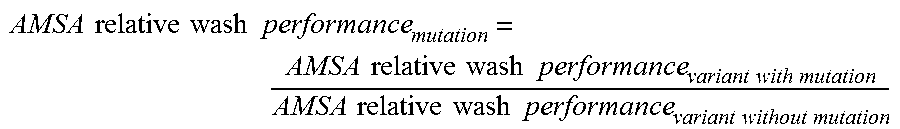 The AMSA relative wash performance is then calculated for each variant by dividing the intensity value for textile washed with the variant by the intensity value for the textile washed with the parent backbone
