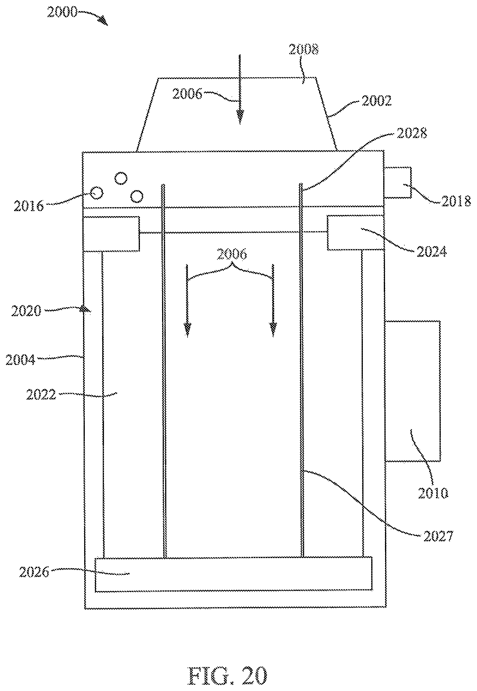 [0017]FIG. 20 shows a cross-sectional view of a filtration system according to another example embodiment.