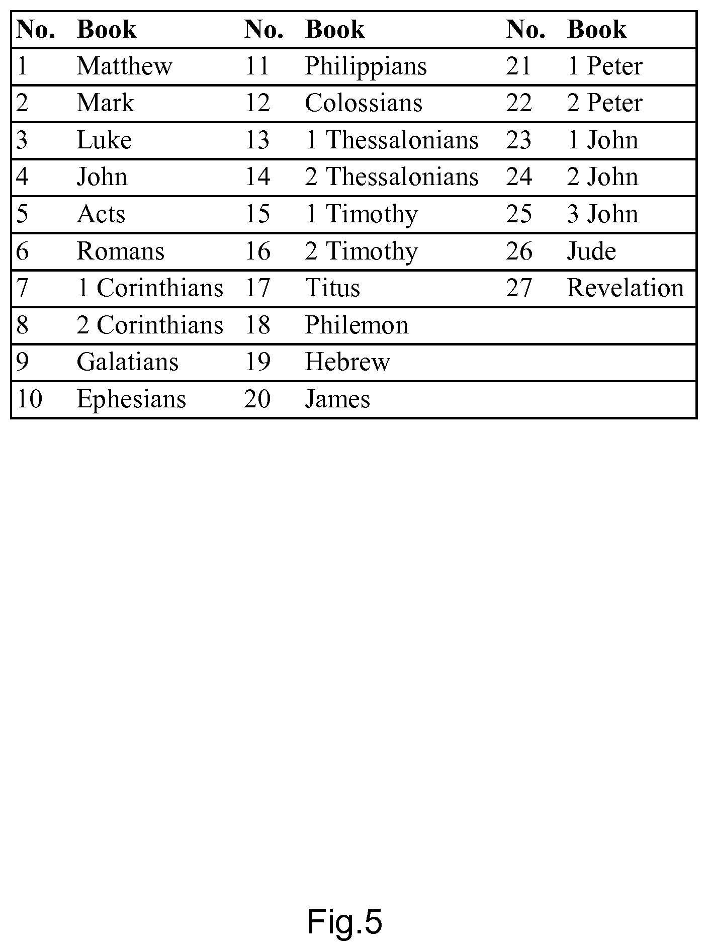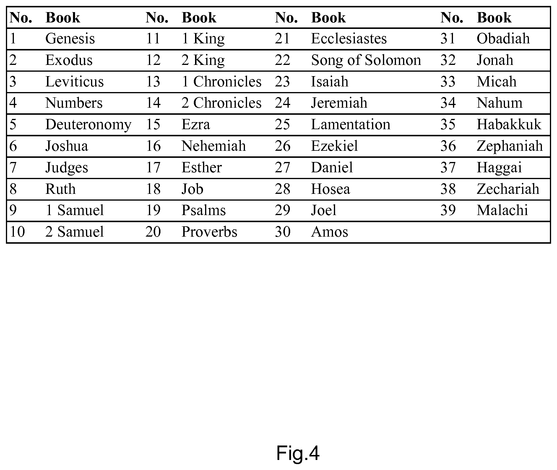 Because of the advantages of a dedicated audio bible player, there are several different audio bible players available in the market, e.g. GoBible Original (by GoBible LLC, Amazon.com product number: ASIN B001BKV06G US patent application publication 20070282786 A1), My-ibible (by Hendrickson Publisher, Amazon.com product number: ISBN-10: 1619706687), Franklin Speaking Bible (by Franklin Electronics, Amazon.com product number: ASIN B008EH7M84), etc. While they eliminate the hassle of loading mp3 files correctly by the user, and temptations and distractions of smart phone/tablets, there is no actual improvement of their indexing systems. Besides audio bible players, there are also electronic bibles available for displaying bible text only. In theory, they could use the same indexing system as an audio bible player, except that they will display bible texts. While there were several attempts in US patents and US patent application publications to improve the indexing system of electronic bible, none of them are that successful. In U.S. Pat. No. 5,987,451 (1999), and US patent application publication 20090240671 A1, 20100083162 A1, 20030006969 A1, 66 buttons are used for 66 bible books, which is too complicated to implement and use. U.S. Pat. No. 4,970,680 (1999) proposed a computerized bible with full keyboard, which is also complicated with no actual indexing improvement. U.S. Pat. No. 4,445,196 (1984) proposed a numerical system in which each of the 66 books would be assigned a book number based on the book name alphabetical order. Because it is difficult to remember, it has not been implemented on any real products. As a result, most of the audio bible players and electronic bibles today are still use the traditional indexing system as illustrated in Despite the advantages promised by indexing to verse level, only the Gobible Original can index to verse level. However, it didn't make any fundamental improvement to the indexing system other than adding one more sub menu for verses as illustrated in An audio bible player with a 6-digit numerical indexing system that can reach any chapter of the bible quickly and switch to the same chapter of different translations easily. An audio bible player with a 9-digit numerical indexing system that can reach any verse of the bible quickly and switch to the same verse of different translations easily. In this audio bible player, a 6-digit numerical indexing system is used: Each bible chapter is represented by a six digit number, a-bb-ccc a=1 represents Old Testament. a=2 represents New Testament bb is the book number in Old Testament (See ccc is the chapter number, e.g. chapter 5 is represented by 005 and chapter 12 is represented by 012. All the zeros are necessary in order to make up a 3-digit number. As an example, we want to find the gospel of John chapter 3: Because the gospel of John is in the New Testament, a=2 Because the gospel of John is the 4th book in the New Testament, bb=04 For chapter 3, ccc=003. So, the 6-digit index for the gospel of John chapter 3 is 2-04-003 Since there are only 66 book numbers, it won't be difficult to remember. At the beginning, a user can always refer to book numbers listed in a user manual. As he/she uses it more, he/she will be able to remember more and more book numbers naturally. There is also an additional benefit for remembering the book numbers: Since the book numbers correspond to the natural bible book order, the user will also be able to remember the whole structure of the bible, which is very important for bible study. Operation A user enters a six-digit bible chapter number using an input mean, e.g. a keypad. For the gospel of John chapter 3, 2-04-003 is entered. The controller will interpret this number based on the 6-digit numerical indexing system, and search in the memory. First, it would go into root folder “2”, then it would go into the subfolder “04” to find the audio file named “003”. Finally, it would control the output means, e.g speaker, or earphone, to play out the sound of the audio file. This audio bible player can also load and play multiple bible versions. For example, suppose that it is preloaded with English Standard Version (ESV) Old Testament and New Testament, and King James Version (KJV) Old Testament and New Testament. In the memory root directory, there would be four different folders. Folder “1” is for ESV Old Testament Folder “2” is for ESV New Testament Folder “3” is for KJV Old Testament Folder “4” is for KJV New Testament For John chapter 3, the numerical index would be 2-04-003 for the ESV version, and 4-04-003 for KJV version. The difference is only the first digit, making it very easy for a user to remember and to switch from one version to the same chapter of another version. Or, using an input means, e.g. a special “version/translation change” key, a user can send a command to the controller to change bible version. After receiving this command, the controller would automatically find and play the same chapter of a different bible version. If there are more than two versions loaded, it would switch to the same chapter of the next available version if the user presses this key again. This is a very convenient multiple bible version playback function. The Audio bible player is also programmed to remember the last position it played. So, whenever the play is turned off and turned on again, it would start playing automatically from where it was turned off. Audio bible players with a 6-digit numerical indexing system to the bible chapter level or a 9-digit numerical indexing system to the bible verse level are disclosed. Users can not only find a particular chapter or verse of the bible quickly, but also can switch to the same chapter or verse of a different translation easily for comparison study. They are easy and convenient to use, and are great tools for bible study, bible memorization, language study, and sharing bible with people in o