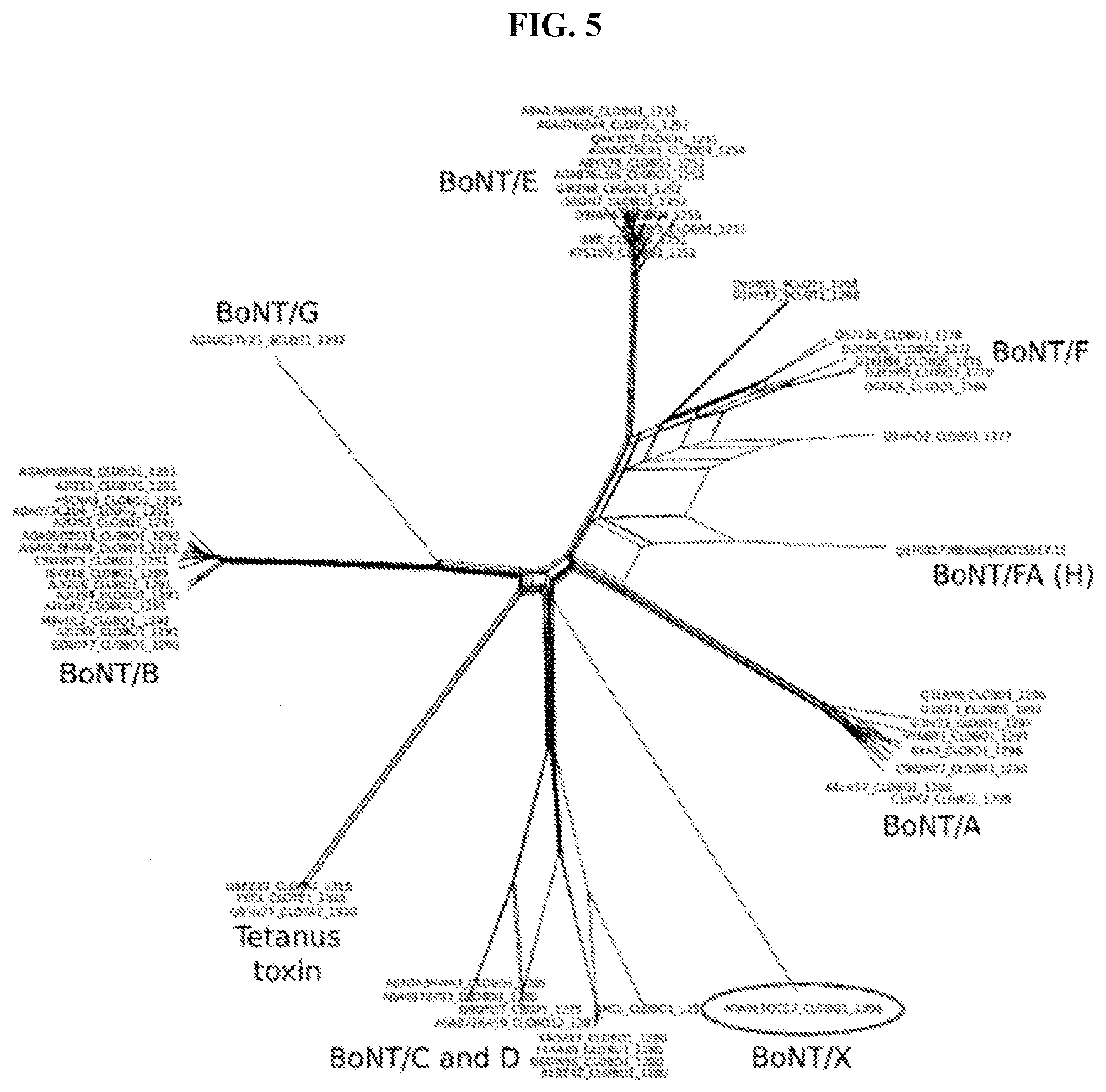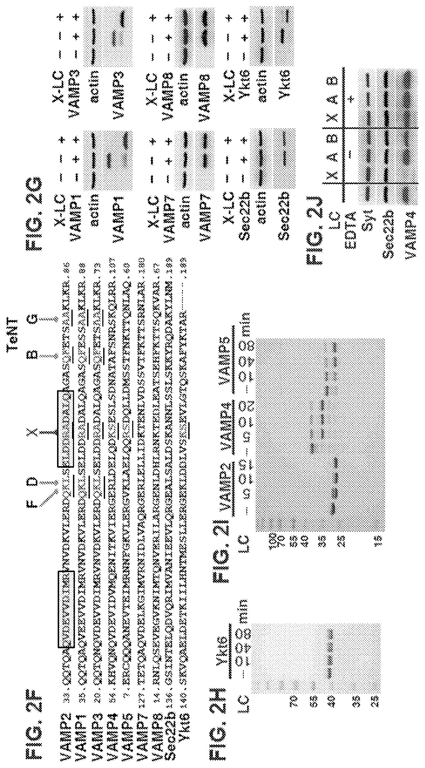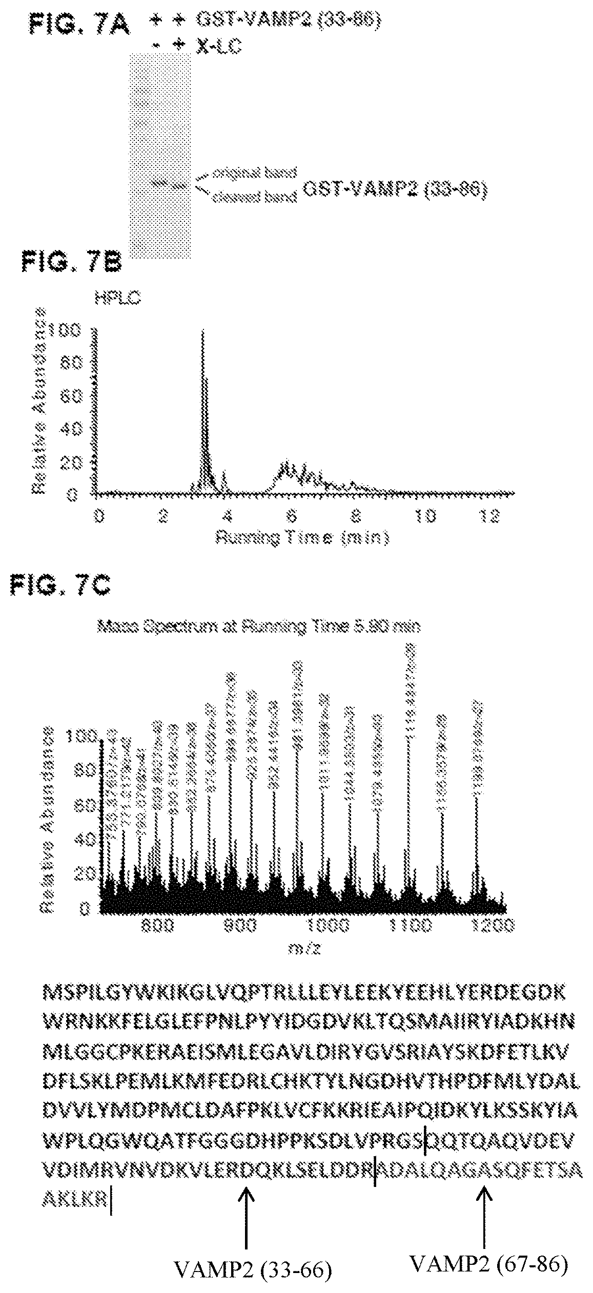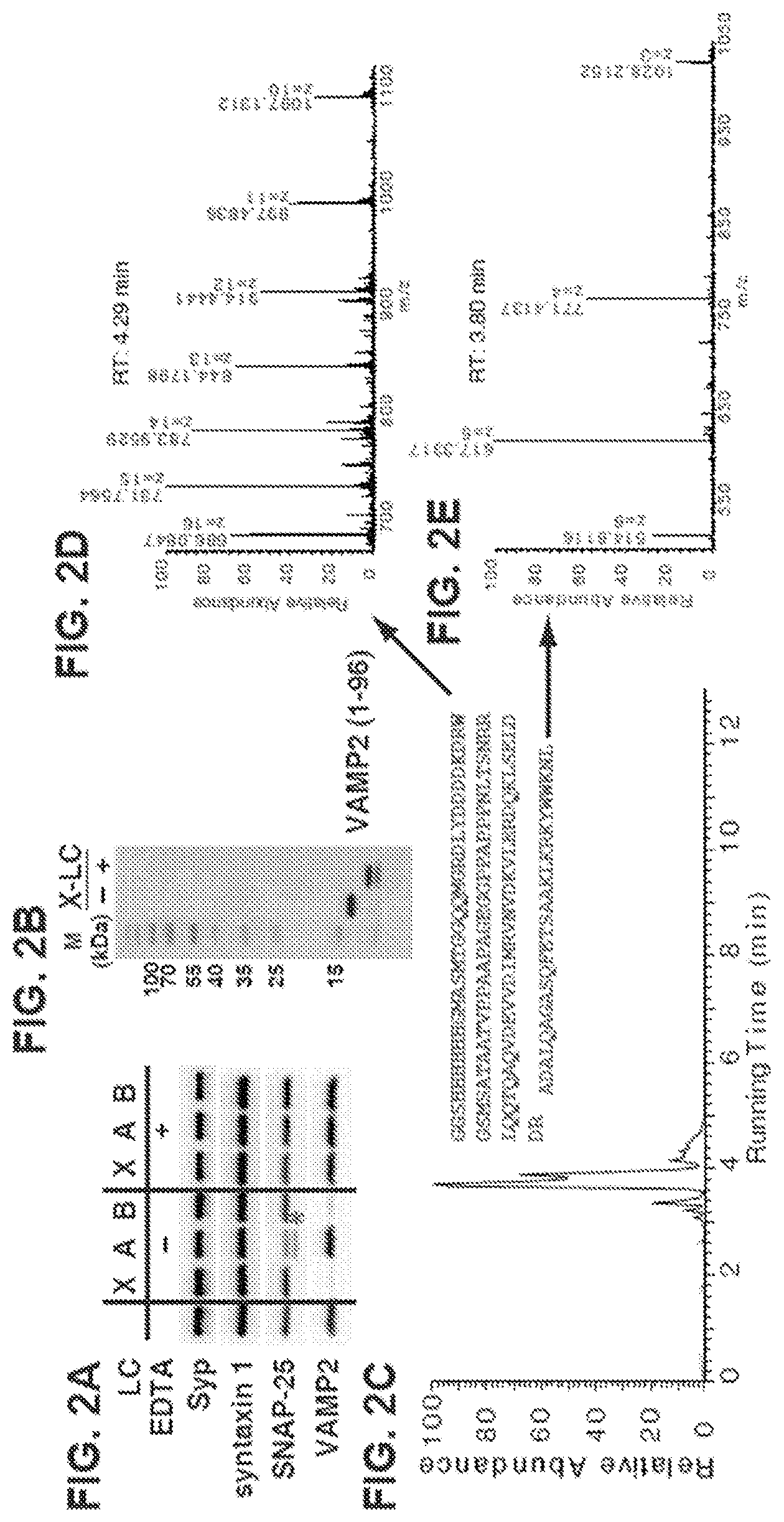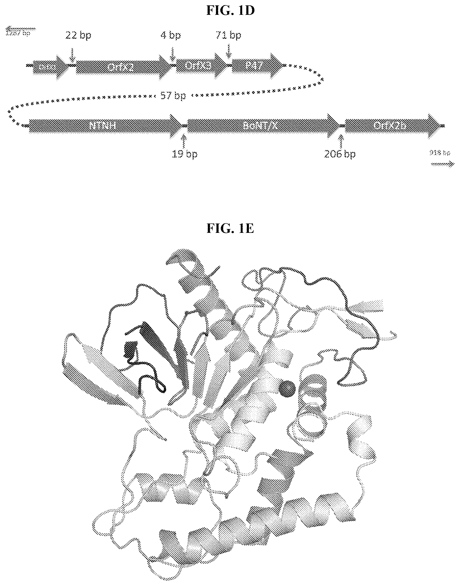 BoNT Polypeptide Sequences SEQ ID NO. Description Sequence 1 WT BoNT/X MKLEINKFNYNDPIDGINVITMRPPRHSDKINKGKGPFKAFQVIKNIWIVPERYNFTNNTNDLNIPSEPIME ADAIYNPNYLNTPSEKDEFLQGVIKVLERIKSKPEGEKLLELISSSIPLPLVSNGALTLSDNETIAYQENNN IVSNLQANLVIYGPGPDIANNATYGLYSTPISNGEGTLSEVSFSPFYLKPFDESYGNYRSLVNIVNKFVKRE FAPDPASTLMHELVHVTHNLYGISNRNFYYNFDTGKIETSRQQNSLIFEELLTFGGIDSKAISSLIIKKIIE TAKNNYTTLISERLNTVTVENDLLKYIKNKIPVQGRLGNFKLDTAEFEKKLNTILFVLNESNLAQRFSILVR KHYLKERPIDPIYVNILDDNSYSTLEGFNISSQGSNDFQGQLLESSYFEKIESNALRAFIKICPRNGLLYNA IYRNSKNYLNNIDLEDKKTTSKTNVSYPCSLLNGCIEVENKDLFLISNKDSLNDINLSEEKIKPETTVFFKD KLPPQDITLSNYDFTEANSIPSISQQNILERNEELYEPIRNSLFEIKTIYVDKLTTFHFLEAQNIDESIDSS KIRVELTDSVDEALSNPNKVYSPFKNMSNTINSIETGITSTYIFYQWLRSIVKDFSDETGKIDVIDKSSDTL AIVPYIGPLLNIGNDIRHGDFVGAIELAGITALLEYVPEFTIPILVGLEVIGGELAREQVEAIVNNALDKRD QKWAEVYNITKAQWWGTIHLQINTRLAHTYKALSRQANAIKMNMEFQLANYKGNIDDKAKIKNAISETEILL NKSVEQAMKNTEKFMIKLSNSYLTKEMIPKVQDNLKNFDLETKKTLDKFIKEKEDILGTNLSSSLRRKVSIR LNKNIAFDINDIPFSEFDDLINQYKNEIEDYEVLNLGAEDGKIKDLSGTTSDINIGSDIELADGRENKAIKI KGSENSTIKIAMNKYLRFSATDNFSISFWIKHPKPTNLLNNGIEYTLVENFNQRGWKISIQDSKLIWYLRDH NNSIKIVTPDYIAFNGWNLITITNNRSKGSIVYVNGSKIEEKDISSIWNTEVDDPIIFRLKNNRDTQAFTLL DQFSIYRKELNQNEVVKLYNYYFNSNYIRDIWGNPLQYNKKYYLQTQDKPGKGLIREYWSSFGYDYVILSDS KTITFPNNIRYGALYNGSKVLIKNSKKLDGLVRNKDFIQLEIDGYNMGISADRFNEDTNYIGTTYGTTHDLT TDFEIIQRQEKYRNYCQLKTPYNIFHKSGLMSTETSKPTFHDYRDWVYSSAWYFQNYENLNLRKHTKTNWYF IPKDEGWDED 2 WT BoNT/X MKLEINKFNYNDPIDGINVITMRPPRHSDKINKGKGPFKAFQVIKNIWIVPERYNFTNNTNDLNIPSEPIME LC-HN ADAIYNPNYLNTPSEKDEFLQGVIKVLERIKSKPEGEKLLELISSSIPLPLVSNGALTLSDNETIAYQENNN IVSNLQANLVIYGPGPDIANNATYGLYSTPISNGEGTLSEVSFSPFYLKPFDESYGNYRSLVNIVNKFVKRE FAPDPASTLMHELVHVTHNLYGISNRNFYYNFDTGKIETSRQQNSLIFEELLTFGGIDSKAISSLIIKKIIE TAKNNYTTLISERLNTVTVENDLLKYIKNKIPVQGRLGNFKLDTAEFEKKLNTILFVLNESNLAQRFSILVR KHYLKERPIDPIYVNILDDNSYSTLEGFNISSQGSNDFQGQLLESSYFEKIESNALRAFIKICPRNGLLYNA IYRNSKNYLNNIDLEDKKTTSKTNVSYPCSLLNGCIEVENKDLFLISNKDSLNDINLSEEKIKPETTVFFKD KLPPQDITLSNYDFTEANSIPSISQQNILERNEELYEPIRNSLFEIKTIYVDKLTTFHFLEAQNIDESIDSS KIRVELTDSVDEALSNPNKVYSPFKNMSNTINSIETGITSTYIFYQWLRSIVKDFSDETGKIDVIDKSSDTL AIVPYIGPLLNIGNDIRHGDFVGAIELAGITALLEYVPEFTIPILVGLEVIGGELAREQVEAIVNNALDKRD QKWAEVYNITKAQWWGTIHLQINTRLAHTYKALSRQANAIKMNMEFQLANYKGNIDDKAKIKNAISETEILL NKSVEQAMKNTEKFMIKLSNSYLTKEMIPKVQDNLKNFDLETKKTLDKFIKEKEDILGTNLSSSLRRKVSIR LNKNIAFDINDIPFSEFDDLINQYKNEI 3 WT BoNT/X MKLEINKFNYNDPIDGINVITMRPPRHSDKINKGKGPFKAFQVIKNIWIVPERYNFTNNTNDLNIPSEPIME LC ADAIYNPNYLNTPSEKDEFLQGVIKVLERIKSKPEGEKLLELISSSIPLPLVSNGALTLSDNETIAYQENNN IVSNLQANLVIYGPGPDIANNATYGLYSTPISNGEGTLSEVSFSPFYLKPFDESYGNYRSLVNIVNKFVKRE FAPDPASTLMHELVHVTHNLYGISNRNFYYNFDTGKIETSRQQNSLIFEELLTFGGIDSKAISSLIIKKIIE TAKNNYTTLISERLNTVTVENDLLKYIKNKIPVQGRLGNFKLDTAEFEKKLNTILFVLNESNLAQRFSILVR KHYLKERPIDPIYVNILDDNSYSTLEGFNISSQGSNDFQGQLLESSYFEKIESNALRAFIKICPRNGLLYNA IYRNSKN 4 WT BoNT/X MKLEINKFNYNDPIDGINVITMRPPRHSDKINKGKGPFKAFQVIKNIWIVPERYNFTNNTNDLNIPSEPIME C461SQ ADAIYNPNYLNTPSEKDEFLQGVIKVLERIKSKPEGEKLLELISSSIPLPLVSNGALTLSDNETIAYQENNN IVSNLQANLVIYGPGPDIANNATYGLYSTPISNGEGTLSEVSFSPFYLKPFDESYGNYRSLVNIVNKFVKRE FAPDPASTLMHELVHVTHNLYGISNRNFYYNFDTGKIETSRQQNSLIFEELLTFGGIDSKAISSLIIKKIIE TAKNNYTTLISERLNTVTVENDLLKYIKNKIPVQGRLGNFKLDTAEFEKKLNTILFVLNESNLAQRFSILVR KHYLKERPIDPIYVNILDDNSYSTLEGFNISSQGSNDFQGQLLESSYFEKIESNALRAFIKICPRNGLLYNA IYRNSKNYLNNIDLEDKKTTSKTNVSYPSSLLNGCIEVENKDLFLISNKDSLNDINLSEEKIKPETTVFFKD KLPPQDITLSNYDFTEANSIPSISQQNILERNEELYEPIRNSLFEIKTIYVDKLTTFHFLEAQNIDESIDSS KIRVELTDSVDEALSNPNKVYSPFKNMSNTINSIETGITSTYIFYQWLRSIVKDFSDETGKIDVIDKSSDTL AIVPYIGPLLNIGNDIRHGDFVGAIELAGITALLEYVPEFTIPILVGLEVIGGELAREQVEAIVNNALDKRD QKWAEVYNITKAQWWGTIHLQINTRLAHTYKALSRQANAIKMNMEFQLANYKGNIDDKAKIKNAISETEILL NKSVEQAMKNTEKFMIKLSNSYLTKEMIPKVQDNLKNFDLETKKTLDKFIKEKEDILGTNLSSSLRRKVSIR LNKNIAFDINDIPFSEFDDLINQYKNEIEDYEVLNLGAEDGKIKDLSGTTSDINIGSDIELADGRENKAIKI KGSENSTIKIAMNKYLRFSATDNFSISFWIKHPKPTNLLNNGIEYTLVENFNQRGWKISIQDSKLIWYLRDH NNSIKIVTPDYIAFNGWNLITITNNRSKGSIVYVNGSKIEEKDISSIWNTEVDDPIIFRLKNNRDTQAFTLL DQFSIYRKELNQNEVVKLYNYYFNSNYIRDIWGNPLQYNKKYYLQTQDKPGKGLIREYWSSFGYDYVILSDS KTITFPNNIRYGALYNGSKVLIKNSKKLDGLVRNKDFIQLEIDGYNMGISADRFNEDTNYIGTTYGTTHDLT TDFEIIQRQEKYRNYCQLKTPYNIFHKSGLMSTETSKPTFHDYRDWVYSSAWYFQNYENLNLRKHTKTNWYF IPKDEGWDED 5 WT BoNT/X MKLEINKFNYNDPIDGINVITMRPPRHSDKINKGKGPFKAFQVIKNIWIVPERYNFTNNTNDLNIPSEPIME C461A ADAIYNPNYLNTPSEKDEFLQGVIKVLERIKSKPEGEKLLELISSSIPLPLVSNGALTLSDNETIAYQENNN IVSNLQANLVIYGPGPDIANNATYGLYSTPISNGEGTLSEVSFSPFYLKPFDESYGNYRSLVNIVNKFVKRE FAPDPASTLMHELVHVTHNLYGISNRNFYYNFDTGKIETSRQQNSLIFEELLTFGGIDSKAISSLIIKKIIE TAKNNYTTLISERLNTVTVENDLLKYIKNKIPVQGRLGNFKLDTAEFEKKLNTILFVLNESNLAQRFSILVR KHYLKERPIDPIYVNILDDNSYSTLEGFNISSQGSNDFQGQLLESSYFEKIESNALRAFIKICPRNGLLYNA IYRNSKNYLNNIDLEDKKTTSKTNVSYPASLLNGCIEVENKDLFLISNKDSLNDINLSEEKIKPETTVFFKD KLPPQDITLSNYDFTEANSIPSISQQNILERNEELYEPIRNSLFEIKTIYVDKLTTFHFLEAQNIDESIDSS KIRVELTDSVDEALSNPNKVYSPFKNMSNTINSIETGITSTYIFYQWLRSIVKDFSDETGKIDVIDKSSDTL AIVPYIGPLLNIGNDIRHGDFVGAIELAGITALLEYVPEFTIPILVGLEVIGGELAREQVEAIVNNALDKRD QKWAEVYNITKAQWWGTIHLQINTRLAHTYKALSRQANAIKMNMEFQLANYKGNIDDKAKIKNAISETEILL NKSVEQAMKNTEKFMIKLSNSYLTKEMIPKVQDNLKNFDLETKKTLDKFIKEKEDILGTNLSSSLRRKVSIR LNKNIAFDINDIPFSEFDDLINQYKNEIEDYEVLNLGAEDGKIKDLSGTTSDINIGSDIELADGRENKAIKI KGSENSTIKIAMNKYLRFSATDNFSISFWIKHPKPTNLLNNGIEYTLVENFNQRGWKISIQDSKLIWYLRDH NNSIKIVTPDYIAFNGWNLITITNNRSKGSIVYVNGSKIEEKDISSIWNTEVDDPIIFRLKNNRDTQAFTLL DQFSIYRKELNQNEVVKLYNYYFNSNYIRDIWGNPLQYNKKYYLQTQDKPGKGLIREYWSSFGYDYVILSDS KTITFPNNIRYGALYNGSKVLIKNSKKLDGLVRNKDFIQLEIDGYNMGISADRFNEDTNYIGTTYGTTHDLT TDFEIIQRQEKYRNYCQLKTPYNIFHKSGLMSTETSKPTFHDYRDWVYSSAWYFQNYENLNLRKHTKTNWYF IPKDEGWDED 6 WT BoNT/X MKLEINKFNYNDPIDGINVITMRPPRHSDKINKGKGPFKAFQVIKNIWIVPERYNFTNNTNDLNIPSEPIME C467S ADAIYNPNQYLNTPSEKDEFLQGVIKVLERIKSKPEGEKLLELISSSIPLPLVSNGALTLSDNETIAYQENN NIVSNLQANLVIYGPGPDIANNATYGLYSTPISNGEGTLSEVSFSPFYLKPFDESYGNYRSLVNIVNKFVKR EFAPDPASTLMHELVHVTHNLYGISNRNFYYNFDTGKIETSRQQNSLIFEELLTFGGIDSKAISSLIIKKII ETAKNNYTTLISERLNTVTVENDLLKYIKNKIPVQGRLGNFKLDTAEFEKKLNTILFVLNESNLAQRFSILV RKHYLKERPIDPIYVNILDDNSYSTLEGFNISSQGSNDFQGQLLESSYFEKIESNALRAFIKICPRNGLLYN AIYRNSKNYLNNIDLEDKKTTSKTNVSYPCSLLNGSIEVENKDLFLISNKDSLNDINLSEEKIKPETTVFFK DKLP