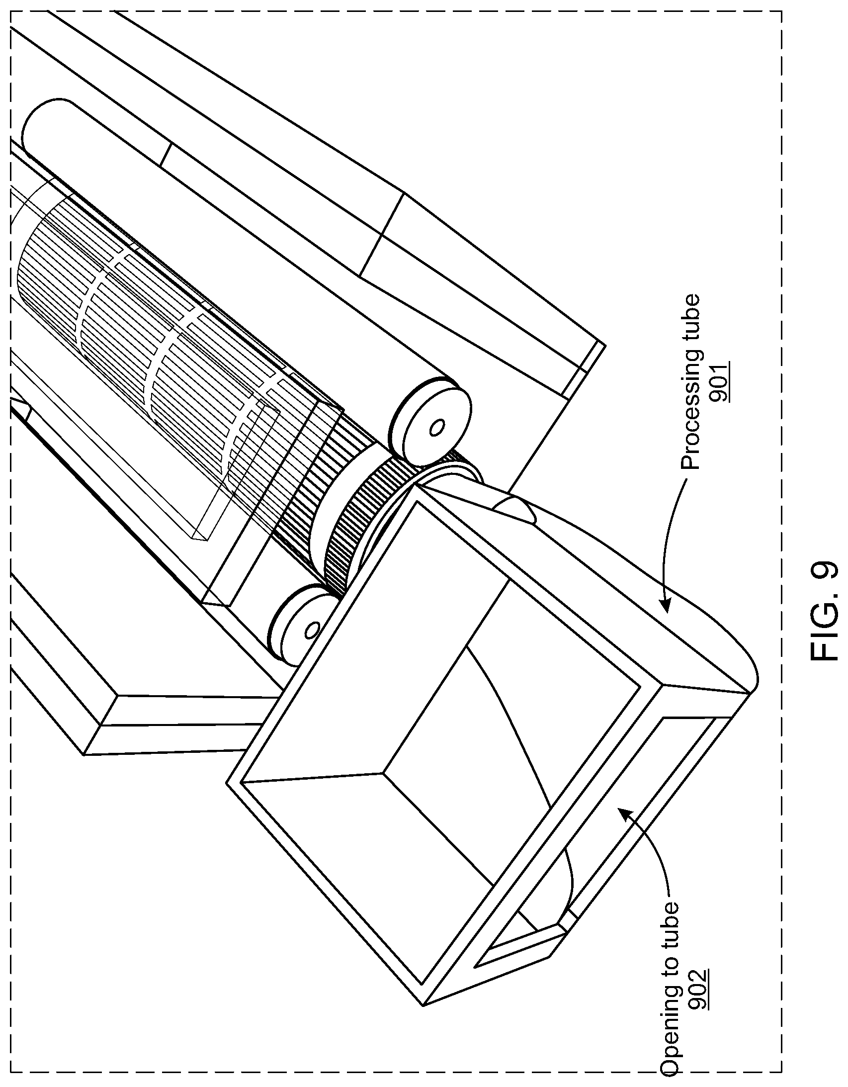 This application claims the benefit of and priority to U.S. Provisional Application No. 62/801,565, filed on Feb. 5, 2019, which is hereby incorporated by reference in its entirety. Embodiments according to the present invention relate to a method and device for a blade and razor used in plant trimming. Certain plants including but not limited to Cassava and Cannabis require post-harvesting processing such as Trimming, Drying, and De-Budding as part of their preparation steps. After harvest, these plants are generally trimmed of their leaf matters, leaving behind only the buds. Trim refers to the leftover leaves, which can be used for making concentrates and infused products. In other words, after harvesting the product, the plant is generally unusable unless some trimming functions takes place to “trim” certain parts and extract the usable part of the plant and this makes trimming process necessary and unavoidable. The solutions currently available consist of mostly through manual methods including but not limited to hand-scissoring by labor, mechanical scissors and motorized blades and such methods deem to be considerably outdated. Embodiments of the present invention pertain to an apparatus and method for automatic blade and razor for use in plant trimming. Embodiments of the present invention provides enhanced capabilities as a result of integrating robotic features, automations, artificial intelligence, queuing, fault control, automatic transport, scalability, safety measures, smaller footprint, and other computerized functions, along with a creative business model. In design of this invention the following high-level requirements were achieved: scalable for small, medium, and large businesses; safer than other machines in the market; sanitation consideration; simplicity in maintenance, and automated functions to reduce the need for labor (e.g., integration of robotics, AI, and/or other computerized systems). The following detailed description together with the accompanying drawings will provide a better understanding of the nature and advantages of the present invention. Embodiments of the present invention are illustrated by way of example, and not by way of limitation, in the figures of the accompanying drawings and in which like reference numerals refer to similar elements. In the figures, elements having the same designation have the same or similar function. Reference will now be made in detail to embodiments, examples of which are illustrated in the accompanying drawings. While the embodiments will be described in conjunction with the drawings, it will be understood that they are not intended to limit the embodiments. On the contrary, the embodiments are intended to cover alternatives, modifications and equivalents. Furthermore, in the following detailed description, numerous specific details are set forth in order to provide a thorough understanding. However, it will be recognized by one of ordinary skill in the art that the embodiments may be practiced without these specific details. In other instances, well-known methods, procedures, components, and circuits have not been described in detail as not to unnecessarily obscure aspects of the embodiments. A description of triggering event of the sensor is as follows. The disposal bin has a simple sensor that triggers when it identifies any object across the light. The fault system is triggered when someone attempts to unplug any of the parts or accessories using a latch sensor. The unidentified object sensor is triggered if any out of balance turn in the tumbler or metal object is identified using magnet sensor. These sensors would signal the main chipset system on each unit that there is a fault or change in the system and the chipset then can control the flow of the system or inform the user via screen/light to correct the error or provide status of the operation. The errors are communicated to the user via function of light, screen, or application. The Processing Unit is in charge of maintaining the queue and fault signals. The processing unit board 401 can be placed in other areas of the system depending on customer requirement. The airflow unit 402 is required to keep the equipment cool. The separator unit 403 is located between the board and trimming functionality of the machine. And the fan 404 keeps the equipment temperature within the required range. In the solutions currently in the market, the main angina is connected to the blade by a “belt” very similar to what is used in the hand right vacuum machine. In our analysis, having a belt attached to the blade, increases the turbulence of the overall machine and thus by having it directly attached to the blade we were able to reduce the overall turbulence and noise of the trimming machine. In one embodiment of the present invention, each blade can be run by a directly-attached motor, also known as “direct-drive” or “mini-direct-drive” the motion is transferred directly to the target. Eliminating the belt also allows the machine to operate outside of the normal range of temperature that's suggested for the belt and reduces or eliminates the transmission loss. Using direct-drive one can utilize more transmission power with the less energy, in fact almost a double amount of performance and maintenance of such belt is eliminated since the dust cannot get into the belt of the main blade. Replacing the motor would consist of a simple unplugging and re-plugging the motor. It would also allow the blade to be hot-pluggable. The units operate with “direct-drive” engine eliminating the need for primary belt. The razor cartridge 501 allows the user-insertable blade and razor be properly plugged in. A direct-drive motor/engine 502 (contrary to belt-driven motor) and the blade is shown coupled to the cartridge 501. A latch 503 enables simple unplug/replug/reinsert of the blade cartridge. The frame of the blade assembly 504 allows the trimmed particles of the proces