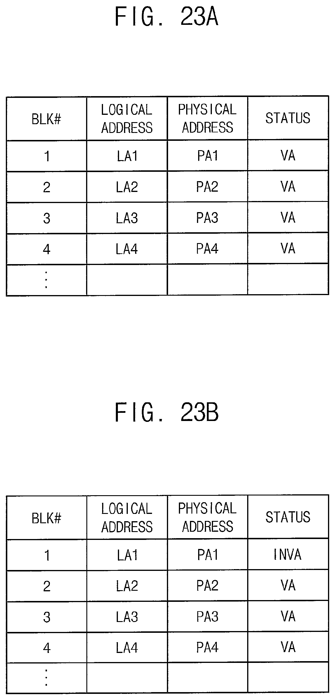 Referring to FIGS. 23A and 23B, the address mapping table 822 stored in the buffer memory 820 of FIG. 22 is illustrated.