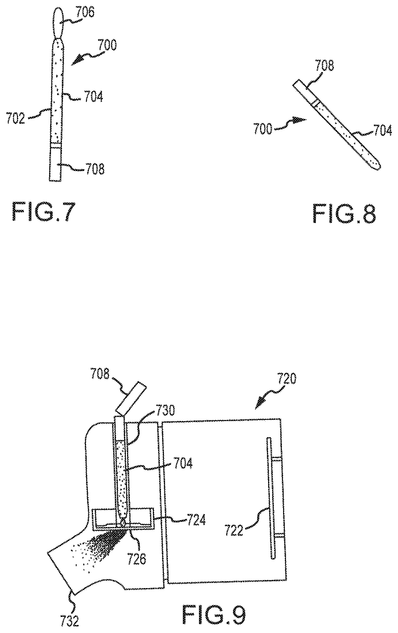 a first indication that the dosage of liquid has been received within a receiving chamber within the housing; and a second indication that the vibratable element has aerosolized the dosage of liquid and the entire dosage of liquid has been delivered to the user, wherein: