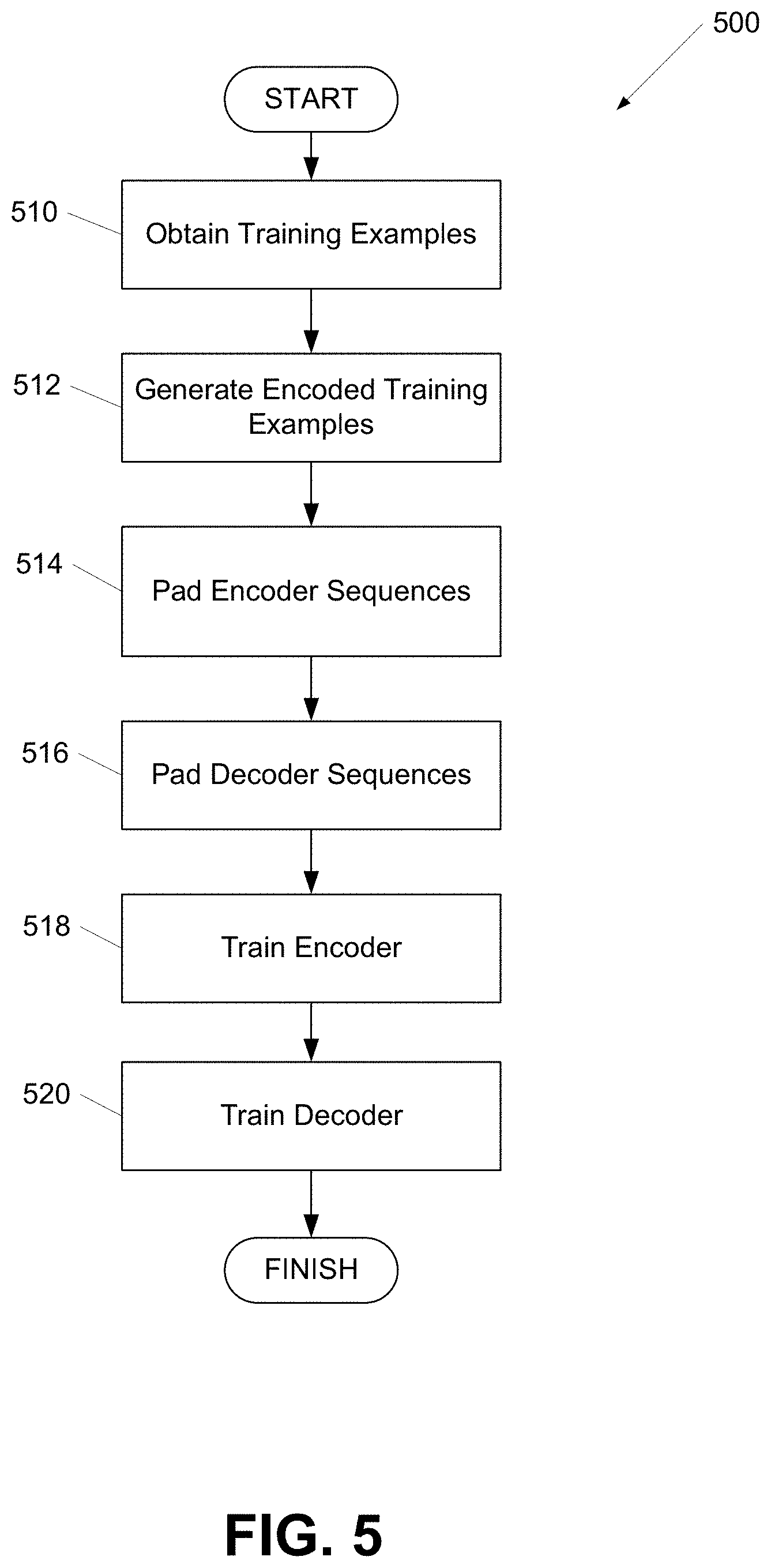 xiband/or xiamay be independent from (yi, xi). Appending these random paddings may reduce adverse effects of syntactic redundancy in dialog data, resulting in the conditional distribution P(yi|xi) being an inference on the joint distribution P(xia, yi, xi, xib). Machine classifiers in accordance with aspects of the application may utilize an autoregressive transformer architecture using only a decoder without the need for a separate encoder. Autoregressive transformer models may use multiple layers of masked multi-head self-attention to map a sequence of input tokens to a sequence of output tokens (i.e., the input sequence token shifted one position to the right). During inference, at each step, the machine classifier may be autoregressive, consuming the previously generated token as additional input when generating the next. There are some basic conceptual differences between autoregressive architectures based on transformers and those based on recurrent neural networks (RNNs). For instance, while the output of an RNN layer depends on only the immediate previous output, a transformer layer output consists of attention over all previous outputs. Due to this lack of ordering in transformer architectures, the position representation is usually passed along with the input tokens into the model. A variety of parameters, attention layers, and/or hidden state sizes may be used in a particular machine classifier. For example, a machine classifier may use 117 million parameters, 12 attention layers, and a hidden state size of 767 for a particular set of training examples for a first task. In a second example, a machine classifier may use 345 million parameters, 24 attention layers, and a hidden state size of 1024 for a different set of training examples for a second task. The machine classifiers may be trained using an adaptive moment estimation stochastic gradient descent with an arbitrary learning rate, such as 0.001. A variety of batch sizes and iterations may be used as appropriate. At step 510, training examples may be obtained. The training examples may include one or more input sequences. Each input sequence may be associated with a task. Each input sequence may include one or more subsequences. The subsequences may include encoder sequences and/or a decoder sequences that may be provided to an encoder and a decoder, respectively, of a machine classifier during a training process to train the machine classifier to classify data associated with the task. A machine classifier may be trained for the task represented by at least one input sequence in the training examples. An input sequence may include multiple subsequences as described herein. At step 512, encoded training examples may be generated. Any of a variety of encodings, such as byte pair encodings, WordPiece encodings, subword tokenization, and any other encoding may be utilized as appropriate. Encodings may be generated for each input sequence within the training examples. The encodings may include a token embedding, a segmentation embedding, and a position embedding as described herein. An encoding of a training example may include an indication of a task associated with the input sequence used to generate the encoded training examples. In a variety of embodiments, a subset of the training examples are encoded. The subset of training examples can be randomly sampled from the training examples and/or selected based on particular characteristics of the training examples. For example, if the machine classifier is being trained to identify a particular feature in input data, the training examples having that particular feature may be included in the subset of training examples. At step 514, the encoder sequences may be padded. The encoder sequences may be padded using any tokens, such as a random sampling of encoded tokens from the training examples. The tokens may be prepended, appended, and/or randomly inserted within the encoder sequences as appropriate. This may address syntactic redundancy in the training examples and improve the training of the machine classifier when learning human conversation tasks. At step 516, decoder sequences may be padded. A decoder sequence may be a subsequence within an input sequence that is provided to the decoder portion of a machine learning classifier. An input sequence may include one or more subsequences that are associated with an output to an input subsequence. For example, an input sequence may include a first subsequence that indicates a question and a second subsequence that is a response to the first subsequence. In another example, the input sequence may include a third subsequence that is a response to the second subsequence. In this way, a particular subsequence may be an output subsequence and/or an input subsequence based on the context in which the subsequence is being analyzed. Similarly, the second subsequence may be provided to a decoder as a decoder sequence when the encoder is being trained using the first subsequence, while the second subsequence may be provided to the encoder as an encoder subsequence when the decoder is being trained using the third subsequence as a decoder sequence. Decoder sequences may be padded to shift the tokens in the decoder sequence one or more positions to the right of the corresponding tokens in the corresponding input sequence. Decoder sequences may be shifted to reduce the likelihood that the machine classifier will learn to copy a decoder sequence for a particular input sequence during training of the machine classifier. By padding the decoder sequence for a particular input subsequence (e.g. an encoder sequence that is provided to an encoder of a machine classifier during training), the decoder may learn to generate an output token for a particular input token provided to the encoder. The decoder may learn to predict the target word/character for position i having only seen the word/characters 1, . . . . , i−1 in the decoder sequence. In sev
