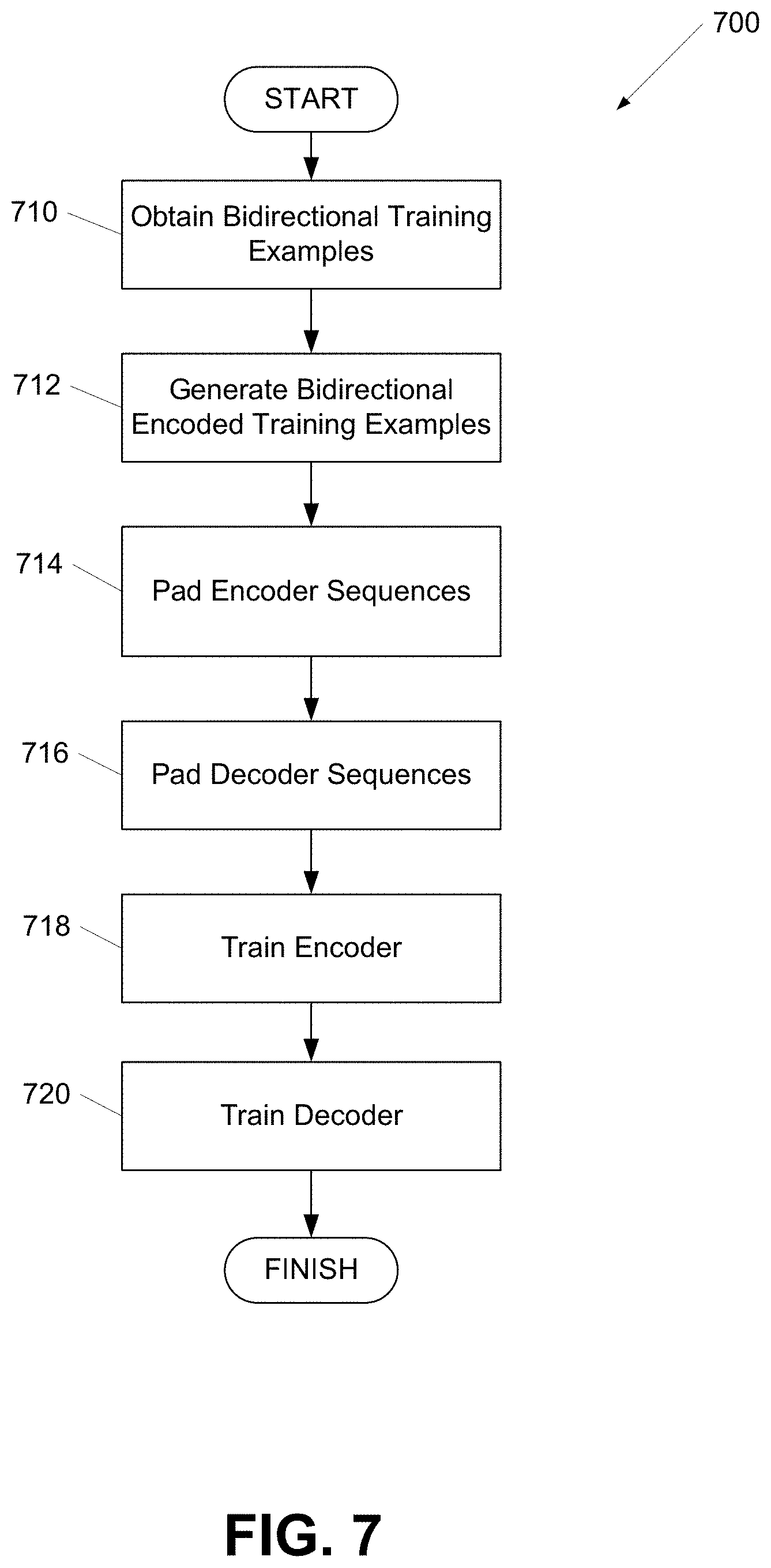 At step 710, training examples may be obtained. The training examples may include one or more input sequences. Each input sequence may be associated with a task. Each input sequence may include one or more subsequences. The subsequences may include encoder sequences and/or a decoder sequences that may be provided to an encoder and a decoder, respectively, of a machine classifier during a training process to train the machine classifier to classify data associated with the task. A machine classifier may be trained for the task represented by at least one input sequence in the training examples. An input sequence may include multiple subsequences as described herein. At step 712, bidirectionally encoded training examples may be generated. Any of a variety of encodings, such as byte pair encodings, WordPiece encodings, subword tokenization, and any other encoding may be utilized as appropriate. Bidirectional encodings may be generated for each input sequence within the training examples. The bidirectional encodings may include a forward encoding and a backward encoding as described herein. A forward encoding and/or a backward encoding may include a token embedding, a segmentation embedding, and a position embedding as described herein. A forward encoding and/or a backward encoding of a training example may include an indication of a task associated with the input sequence used to generate the encoded training examples. At step 714, the encoder sequences may be padded. In several embodiments, the encoder sequence includes the forward encoding of the training examples. The encoder sequences may be padded using any tokens, such as a random sampling of encoded tokens from the training examples. The tokens may be prepended, appended, and/or randomly inserted within the encoder sequences as appropriate. This may address syntactic redundancy in the training examples and improve the training of the machine classifier when learning human conversation tasks. At step 716, decoder sequences may be padded. In a variety of embodiments, a decoder sequence includes the backward encodings of the training examples. A decoder sequence may be a subsequence within an input sequence that is provided to the decoder portion of a machine learning classifier. In this way, a particular subsequence may be an output subsequence and/or an input subsequence based on the context in which the subsequence is being analyzed. Decoder sequences may be padded to shift the tokens in the decoder sequence one or more positions to the right of the corresponding tokens in the corresponding input sequence. Decoder sequences may be shifted to reduce the likelihood that the machine classifier will learn to copy a decoder sequence for a particular input sequence during training of the machine classifier. By padding the decoder sequence for a particular input subsequence (e.g. an encoder sequence that is provided to an encoder of a machine classifier during training), the decoder may learn to generate an output token for a particular input token provided to the encoder. The decoder may learn to predict the target word/character for position i having only seen the word/characters 1, . . . , i−1 in the decoder sequence. In several embodiments, the decoder sequence is padded using a start of sentence token. In a number of embodiments, an end-of-sentence token is appended to the decoder input sequence to mark the end of that sequence. At step 718, an encoder may be trained. The encoder may be trained for a particular task by providing one or more encoder sequences to the encoder. In several embodiments, an encoder sequence is associated with a loss mask and the encoder ignores encoder sequences that have been masked for the particular task. Training the encoder may include determining a set of attention weights for the tokens within the encoder sequence and providing the encoder sequence and/or attention weights to a decoder. In a variety of embodiments, the attention weights are included in a set of model parameters used by the encoder. The model parameters may be shared with the decoder. At step 720, a decoder may be trained. The decoder may be independently and/or simultaneously trained to decode the input sequence. The decoder may be trained by determining a set of attention weights for a decoder sequence corresponding to the encoder sequence provided to the encoder during the training of the encoder. The attention weights for the decoder sequence may be determined based on the encoder sequence, the decoder sequence, and/or the encoder attention weights as appropriate. In several embodiments, the attention weights for the decoder sequence are shared with the encoder. In several embodiments, the decoder is provided with the correct decoder data using a teacher forcing process. In many embodiments, the decoder sequence is associated with a loss mask and the decoder ignores decoder sequences that have been masked for the particular task. The training of the encoder and decoder may continue for each input sequence in the training examples. Although process 700 is described with respect to the joint training of the encoder and the decoder using a forward and backward encoding, it should be noted that a variety of embodiments of the invention separately train the encoder and the decoder. For example, many embodiments of the invention include only training the encoder using one or more encoded input sequences. A number of embodiments of the invention may include only training the decoder using one or more encoded decoder sequences. The decoder sequences may or may not be padded, particularly in those embodiments where only the decoder is being trained. In several embodiments, particularly those where the encoder and decoder are not being jointly trained, the encoder sequence may not be fed from the encoder to the decoder during the training process. That is, the decoder may be trained using a decoder sequence without a corresponding encoder s
