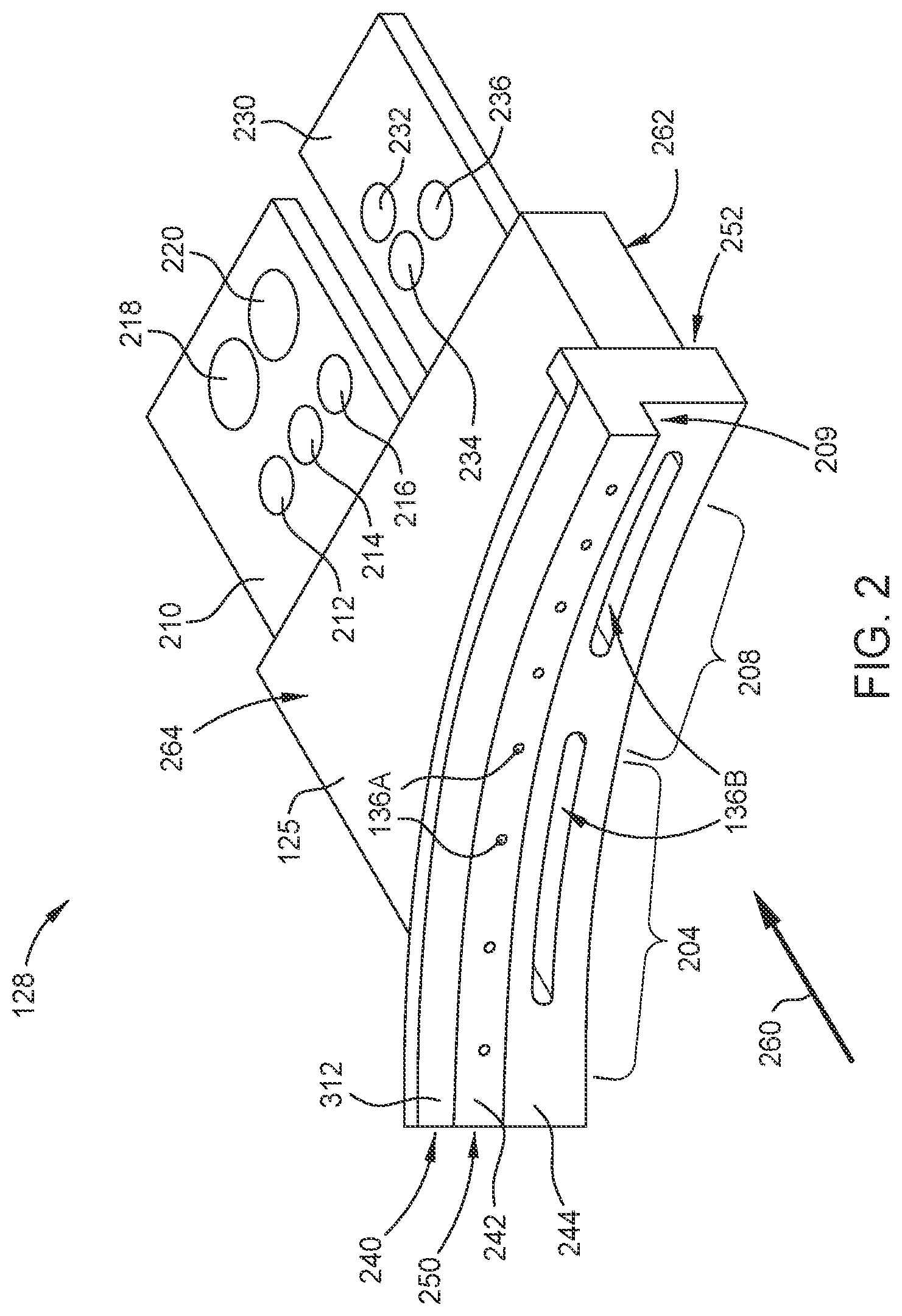 an injector body; a first arcuate surface of the injector body, the first arcuate surface having a first outlet formed therein, the first outlet in fluid communication with a first conduit formed within the injector body; a second arcuate surface of the injector body, the second arcuate surface having a second outlet formed therein, the second outlet in fluid communication with a second conduit formed within the injector body; a third surface of the injector body, the third surface having a third outlet formed therein, the third outlet in fluid communication with a third conduit formed within the injector body, wherein the third surface is substantially normal to the first arcuate surface and the second arcuate surface and the third outlet is substantially normal to the first outlet and the second outlet; a first portion of a cooling channel formed within the injector body, the first portion of the cooling channel disposed around a first side of the first conduit and a second side of the first conduit opposite the first side of the first conduit, the first portion of the cooling channel adjacent to the first arcuate surface; and a second portion of the cooling channel formed within the injector body, the second portion of the cooling channel disposed around a first side of the second conduit and a second side of the second conduit opposite the first side of the second conduit, the second portion of the cooling channel adjacent to the second arcuate surface. 15. The structure of 16. The structure of 17. The structure of 18. The structure of 19. The injector apparatus of 20. The substrate processing apparatus of