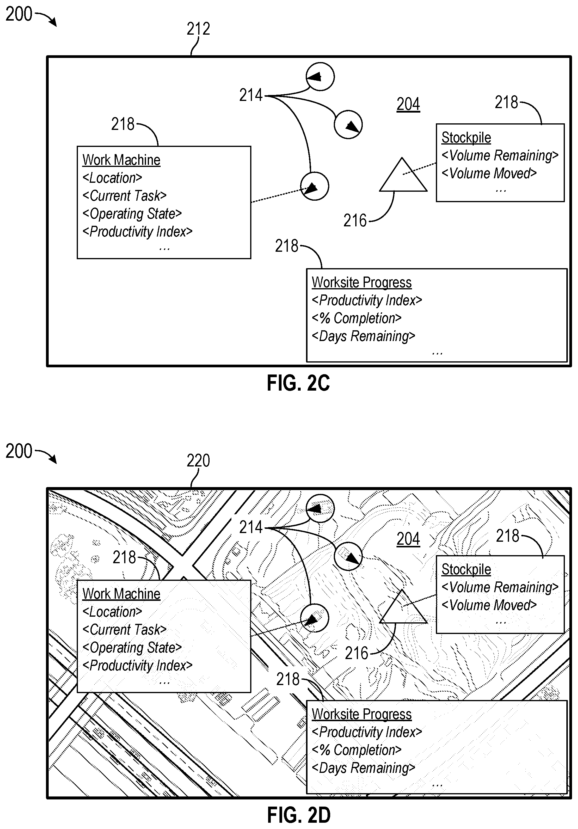 the composite image positioning the image layer relative to the map layer to correspond to the geospatial reference associated with the image layer with the geographical coordinates associated with the map layer, and positioning a visual indication of the productivity layer relative to the geospatial reference of the image layer or the geographical coordinates of the map layer; generating, by the device, a record based on the composite image and a respective timestamp of the composite image; transmitting, by the device and based on the composite image, a command signal to an imaging device to capture an updated image associated with the worksite; obtaining, by the device, an updated productivity data corresponding to a change in the state or the progress of the operation associated with the worksite; generating, by the device, an updated composite image based on the updated image and the updated productivity data; generating, by the device, an updated record based on the updated composite image and a respective timestamp of the updated composite image; generating, by the device, a catalog of the composite image and the updated composite image,