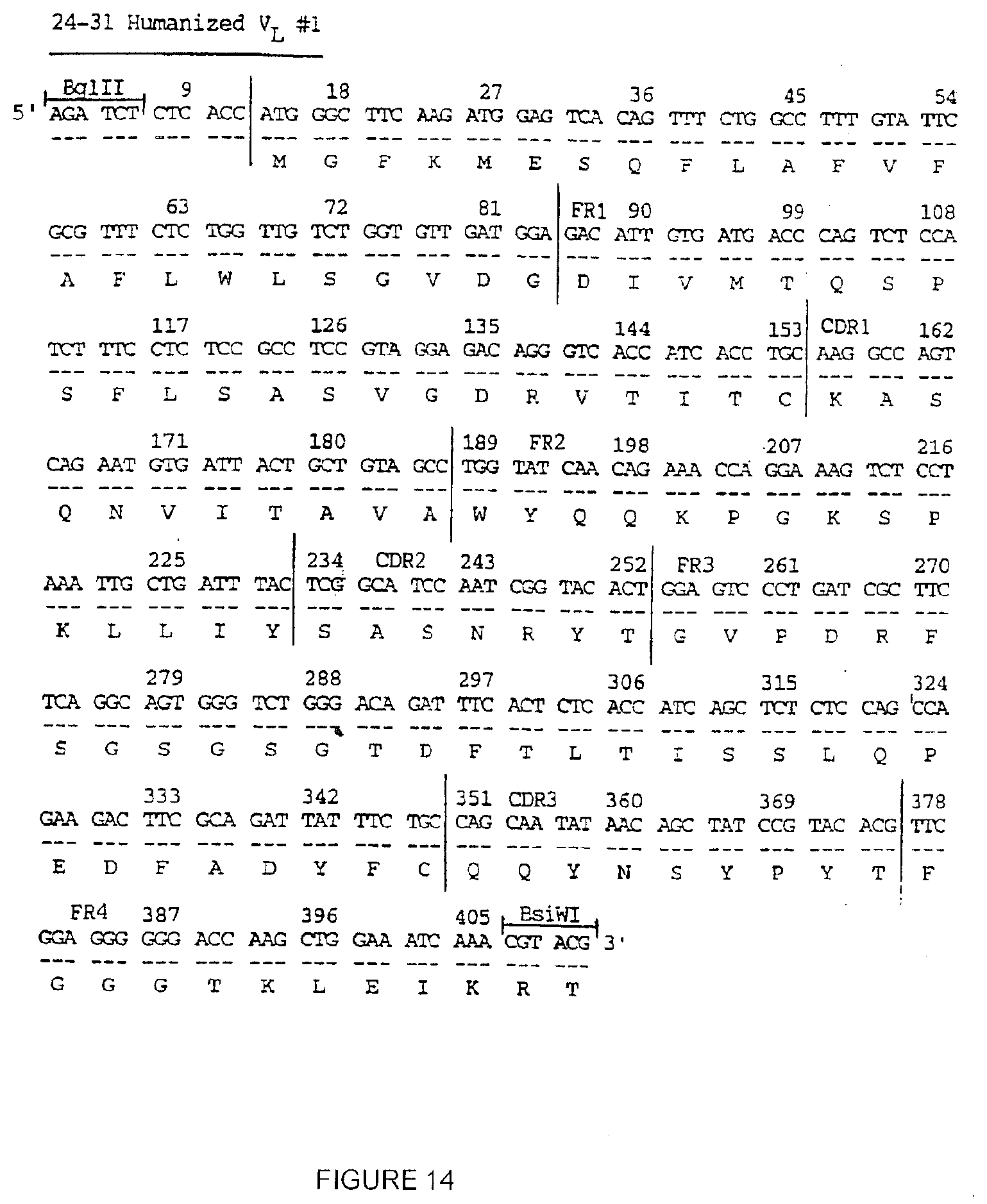 FIGS. 14-16 contain humanized sequences corresponding to an anti-human CD154 antibody (IDEC-131).