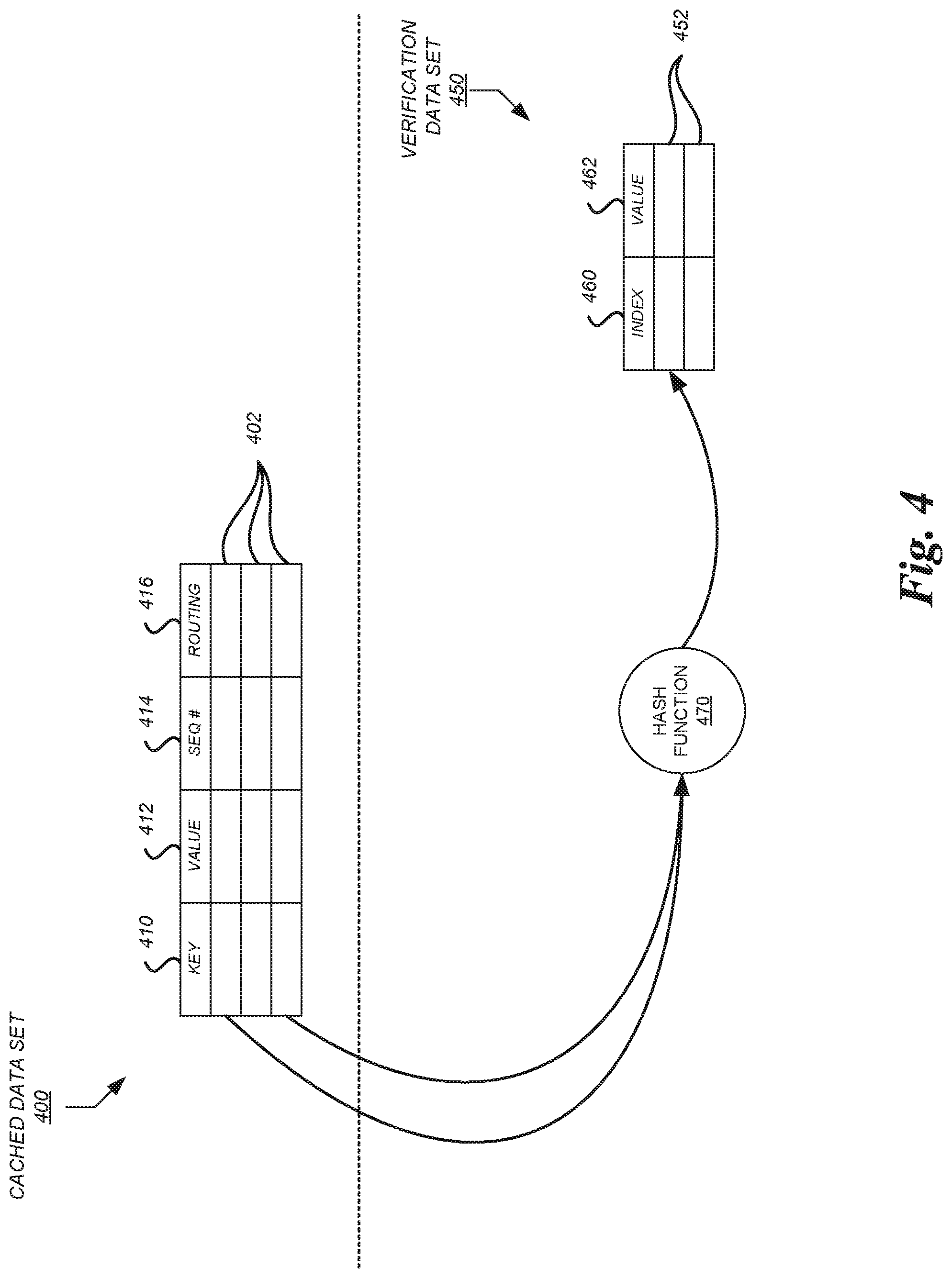 During general operation, frontend nodes 110 may be configured to obtain a call to a request method, and apply that request method to input data for the method. For example, a frontend node 110 can respond to a request to PUT input data into the system 104 as an object by storing that input data as the object on the system 104. Objects may be stored, for example, in one or more of the object storage service's object storage nodes 140, which correspond to any persistent or substantially persistent storage (including hard disk drives (HDDs), solid state drives (SSDs), network accessible storage (NAS), storage area networks (SANs), non-volatile random access memory (NVRAM), or any of a variety of storage devices known in the art). As a further example, the frontend node 110 can respond to a request to GET an object from the system 104 by retrieving the object from the object storage service 114 (the object representing input data to the GET resource request), and returning the object to a requesting client device 102. The index service 112 can maintain information about the specific storage location (e.g., network address) at which each data object is stored and accessible in the object storage service 114. For example, data objects may be exposed to clients and interacted with according to a unique identifier for the object, such as a key. In some embodiments, the key may be an alphanumeric string for ease of reference. Use of the key by clients outside of the distributed storage system 104 can shield the clients from the complexity of storing objects in, and accessing objects stored in, the distributed storage system 104. This shielding and simplification for clients can be particularly beneficial when the object storage system is a scalable storage system. The index service 112 may include a set of persistent storage nodes 120 to store the key map data that represents mappings of data object keys to storage locations at which the data objects are stored in the object storage service 114. The persistent storage nodes 120 may include any number of replica nodes to provide durability and availability of the key map data. When the frontend node 110 receives a request to store, retrieve, or otherwise interact with a data object stored in the object storage server 114, the index service 112 may be employed to determine the specific storage location of the data object identified by key. In some embodiments, the object storage service 114 may provide an immutable data store. For example, when a data object is stored at a particular location in the object storage service, only that data object, with the data value(s) assigned to the data object at the time of storage, will be stored at that particular location. When a change is made to the data object, the changed data object is stored at a new storage location. Thus, the mapping of the object key to storage location may change each time the data object itself is changed. The index service 112 may therefore serve an important role in maintaining the mapping of data object keys to current storage locations without which it may be difficult or impossible to retrieve the latest version of a data object using the data object key. To provide faster access to frequently-used key map data, the index service 112 may include a key cache 122 to cache key map records stored in the persistent storage nodes 120. Whenever a data object is changed, the key map data stored in the cache becomes stale because the changed version of the data object is stored at a different location in the object storage service 114. Thus, verifying the freshness of the key cache 122 may become necessary to avoid accessing an old version of the data object after it has been changed. To provide freshness verification, a witness service 116 may be implemented. The witness service 116 may be notified of any change to the key map data stored in the persistent storage nodes 120. When the key cache 122 is accessed to obtain key map data for a particular key, the key cache 122 may request that the witness service 116 provide data regarding the latest version of the key map data stored in the persistent data store for the key. For example, a transaction sequencer assigned to the key map data when the key map data was written to a transaction log may be used to determine whether a particular cached item of key map data is stale. Cached key map data items maintained at the key cache 122 may be augmented or otherwise associated with additional information, such as the transaction sequencer of the key map data item when it was cached. If the transaction sequencer of the cached key map data item is older (e.g., has a smaller value or otherwise prior value in a sequence) than the transaction sequencer obtained from the witness service 116, then the cached key map data item is stale and the cache node may obtain the latest version of the key map data item from the persistent storage nodes 120. In some cases, certain data objects may be accessed at an extremely high rate. To provide even more responsive service to requests for such data objects, a hot key cache 150 may be implemented at the front end. Like the key cache 122, the hot key cache 150 may request that the witness service 116 provide data regarding the latest version of the key map data stored in the persistent data store for a requested hot key. Any request associated with a hot key for which the hot key cache 150 has stale data, or for a key that is not maintained in the hot key cache 150, may be passed through to the index service 112. Although the index service 112 and witness service 116 are shown in The client devices 102, distributed storage system 104, and/or individual devices thereof may communicate via a network 180, which may include any wired network, wireless network, or combination thereof. For example, the network may be or include a personal area network, local area network, wide area network, over-the-air broadcast netw