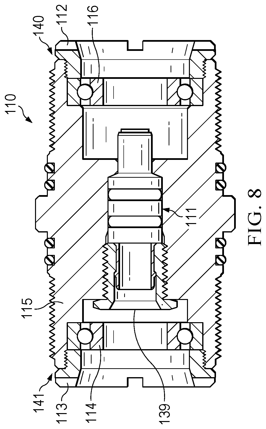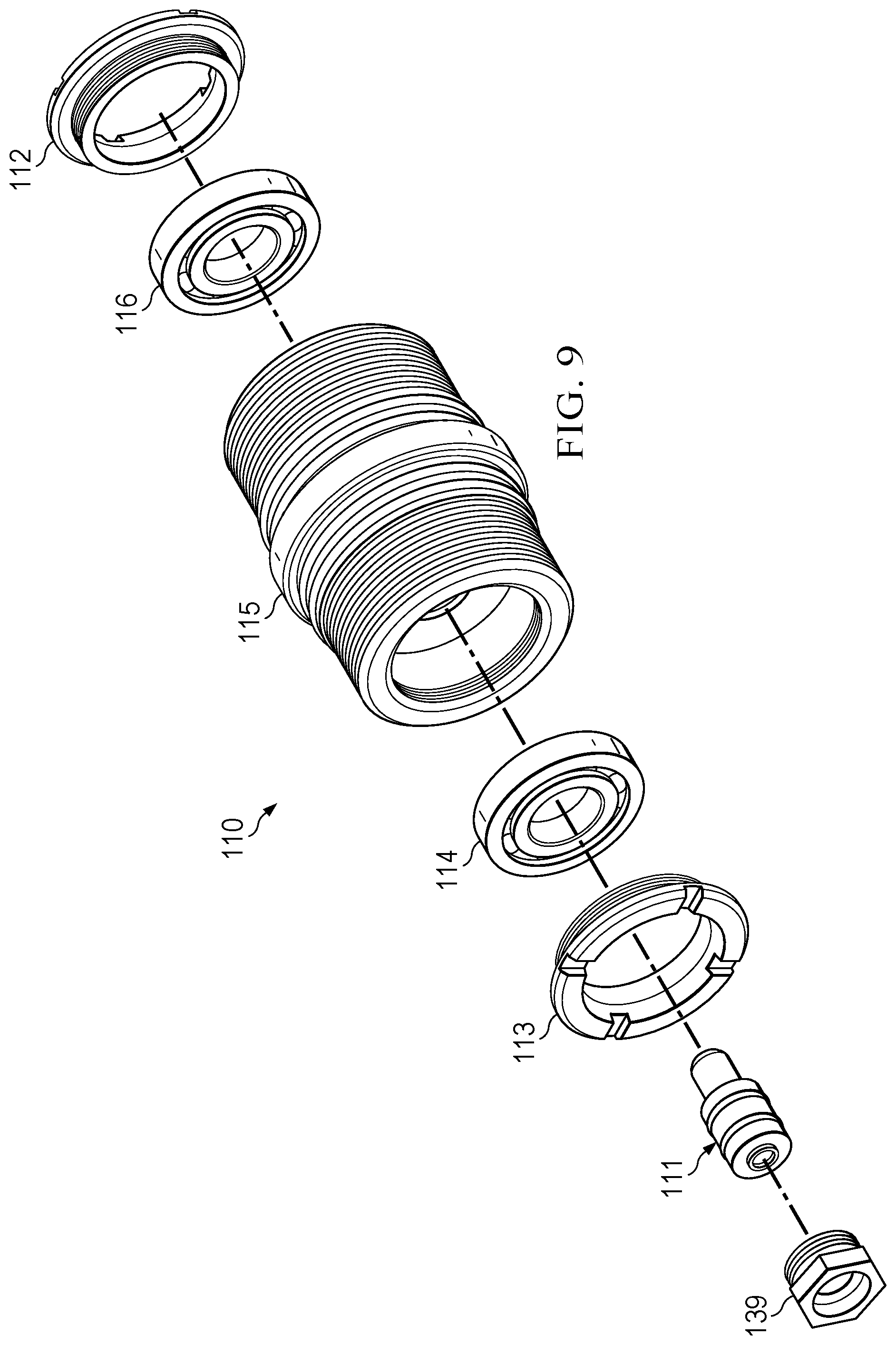 a first rotational bearing mechanism located at a first end, wherein the first rotational bearing mechanism is coupled with the first charge tube in the first perforating gun; and a second rotational bearing mechanism located at a second end, wherein the second rotational bearing mechanism is coupled with the second charge tube in the second perforating gun. 8. The perforating gun system of 9. The perforating gun system of 10. The perforating gun system of 11. The perforating gun system of 12. The perforating gun system of claim of 13. The perforating gun system of claim of 14. The perforating gun system of claim of 15. The perforating gun system of 16. The perforating gun system of 17. The perforating gun system of 18. The perforating gun system of 19. A perforating gun system comprising: