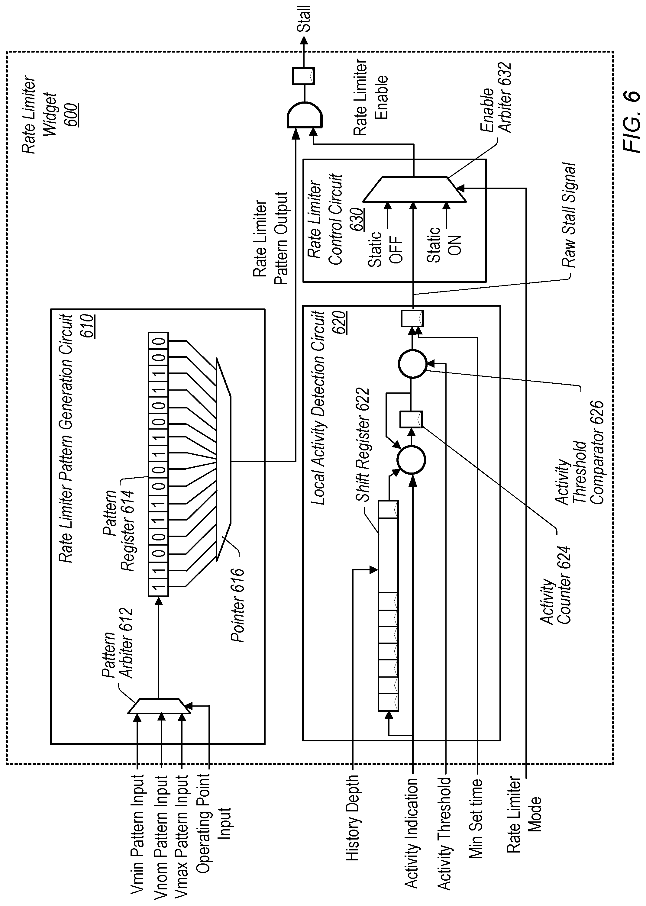 Various techniques and circuit implementations for power reduction management in integrated circuits are disclosed. Certain techniques include the implementation of rate control circuits to control a clock rate for circuits associated with a communication fabric in an integrated circuit. The clock rate may be reduced based trigger signals received from power delivery trigger circuits coupled to the integrated circuit and voltage regulators providing power to the integrated circuit. Additional techniques may include the use of rate limiter circuits in a memory pipeline.