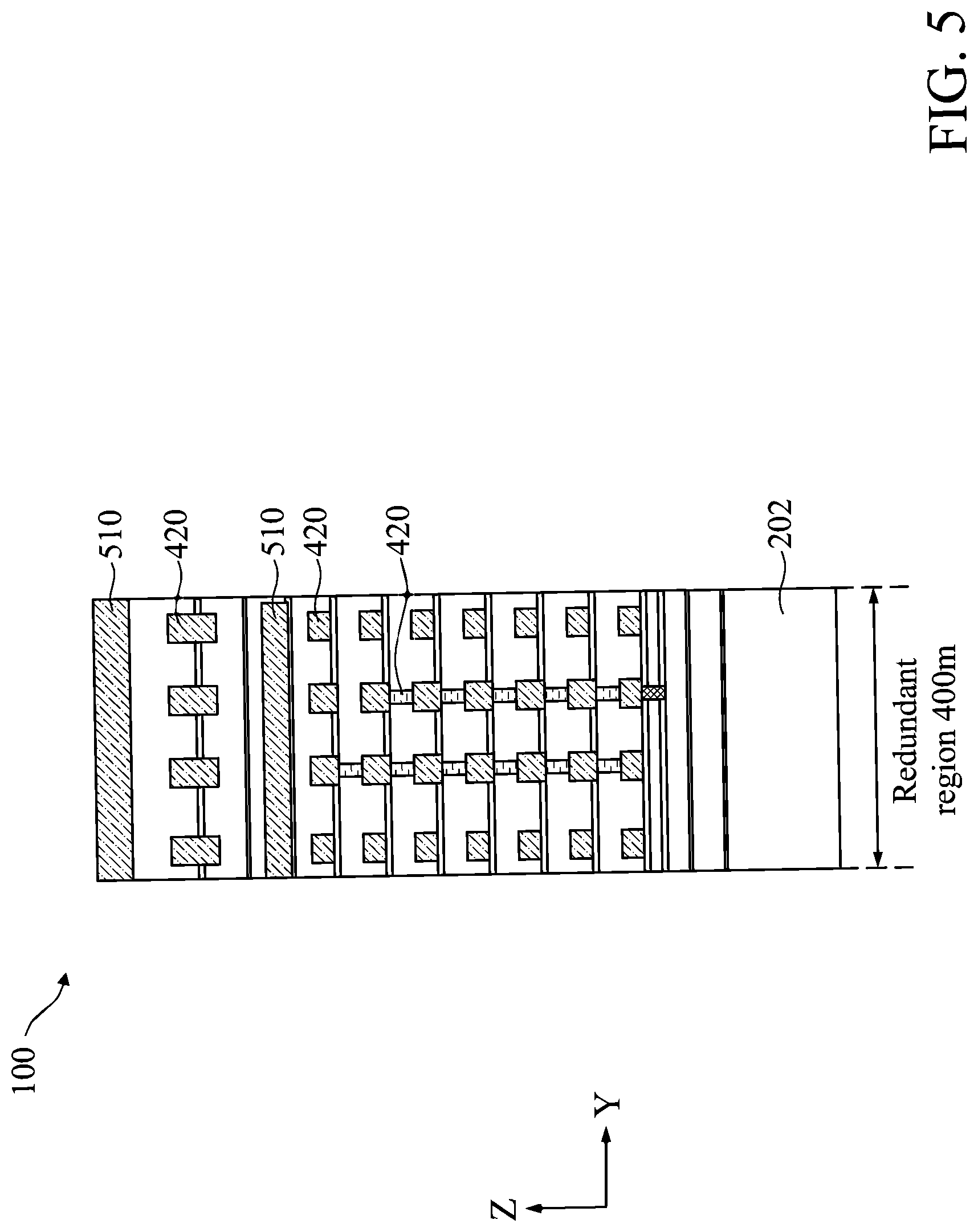 two circuit regions; two inner seal rings, each of the two inner seal rings surrounding one of the two circuit regions, wherein the two inner seal rings have openings; conductors going through the openings and connecting the two circuit regions; an outer seal ring surrounding the two inner seal rings and the conductors, wherein each of the inner seal rings and the outer seal ring has a substantially rectangular periphery with four interior corner seal ring structures; first redundant regions between the inner seal rings and the outer seal ring, each of the first redundant regions being a substantially isosceles trapezoidal shape with two legs each being an edge of one of the four interior corner seal ring structures; and first dummy patterns substantially uniformly distributed in each of the first redundant regions. 11. The semiconductor structure of second dummy patterns substantially uniformly distributed between the two inner seal rings and adjacent to the conductors. 12. The semiconductor structure of 13. The semiconductor structure of 14. The semiconductor structure of 15. The semiconductor structure of 16. A semiconductor structure, comprising: