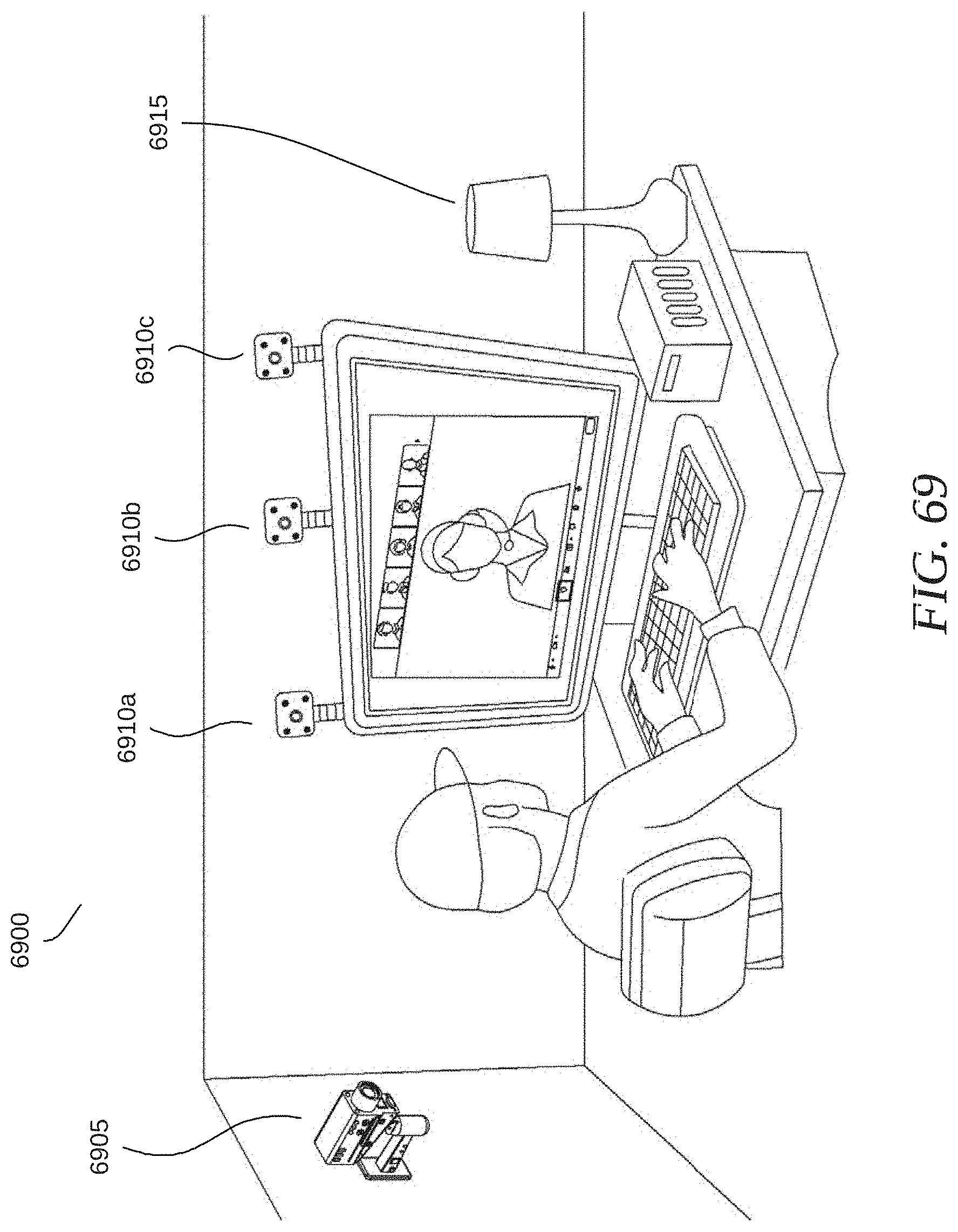 A portion of the disclosure of this patent document contains material which is subject to copyright protection. The copyright owner has no objection to the facsimile reproduction by anyone of the patent document or the patent disclosure, as it appears in the Patent and Trademark Office patent file or records, but otherwise reserves all copyright rights whatsoever. The present application is a Non-Provisional of, and claims benefit and priority to U.S. Provisional Patent Application No. 63/031,561, titled “SYSTEMS, METHODS, AND APPARATUS FOR ENHANCED CAMERAS”, and filed May 28, 2020 in the name of Jorasch et al., the entirety of which is hereby incorporated by reference herein for all purposes. Cameras have various uses, such as in security, surveillance, conferencing, streaming, and broadcasting. For example, cameras may be used to capture footage of a room, or to capture people's images for use in a virtual business meeting. Various embodiments comprise systems, methods, and apparatus for enhancing cameras with additional capabilities. Various embodiments enable an integration of data from many sources, and enable intelligent processing of that data such that many elements of the system can be optimized and enhanced. Various embodiments enhance video calls, meetings, educational communications, or game experiences by improving interactions of people through the collection of images, video and/or sensor data from the camera and peripherals. Various embodiments may enhance the use of business software applications, safety protocols, authentication, gameplay experiences, recreational activities, household activities, social interactions and educational activities. An understanding of embodiments described herein and many of the attendant advantages thereof may be readily obtained by reference to the following detailed description when considered with the accompanying drawings, wherein: Embodiments described herein are descriptive of systems, apparatus, methods, interfaces, and articles of manufacture for utilizing devices and/or for managing meetings. Headings, section headings, and the like are used herein for convenience and/or to comply with drafting traditions or requirements. However, headings are not intended to be limiting in any way. Subject matter described within a section may encompass areas that fall outside of or beyond what might be suggested by a section heading; nevertheless, such subject matter is not to be limited in any way by the wording of the heading, nor by the presence of the heading. For example, if a heading says “Mouse Outputs”, then outputs described in the following section may apply not only to computer mice, but to other peripheral devices as well. As used herein, a “user” may include a human being, set of human beings, group of human beings, an organization, company, legal entity, or the like. A user may be a contributor to, beneficiary of, agent of, and/or party to embodiments described herein. For example, in some embodiments, a user's actions may result in the user receiving a benefit. In various embodiments, the term “user” may be used interchangeably with “employee”, “attendee”, or other party to which embodiments are directed. A user may own, operate, or otherwise be associated with a computing device, such as a personal computer, desktop, Apple® Macintosh®, or the like, and such device may be referred to herein as “user device”. A user device may be associated with one or more additional devices. Such additional devices may have specialized functionality, such as for receiving inputs or providing outputs to users. Such devices may include computer mice, keyboards, headsets, microphones, cameras, and so on, and such devices may be referred to herein as “peripheral devices”. In various embodiments, a peripheral device may exist even if it is not associated with any particular user device. In various embodiments, a peripheral device may exist even if it is not associated with any particular other device. As used herein, a “skin” may refer to an appearance of an outward-facing surface of a device, such as a peripheral device. The surface may include one or more active elements, such as lights, LEDs, display screens, electronic ink, e-skin, or any other active elements. In any case, the surface may be capable of changing its appearance, such as by changing its color, changing its brightness, changing a displayed image, or making any other change. When the outward service of a device changes its appearance, the entire device may appear to change its appearance. In such cases, it may be said that the device has taken on a new “skin”. As used herein, pronouns are not intended to be gender-specific unless otherwise specified or implied by context. For example, the pronouns “he”, “his”, “she”, and “her” may refer to either a male or a female. As used herein, a “mouse-keyboard” refers to a mouse and/or a keyboard, and may include a device that has the functionality of mouse, a device that has the functionality of a keyboard, a device that has some functionality of a mouse and some functionality Of a keyboard and/or a device that has the functionality of both a mouse and a keyboard. Systems Referring first to Various components of system 100 may communicate with one another via one or more networks (e.g., via network 104). Such networks may comprise, for example, a mobile network such as a cellular, satellite, or pager network, the Internet, a wide area network, a Wi-Fi® network, another network, or a combination of such networks. For example, in one embodiment, both a wireless cellular network and a Wi-Fi® network may be involved in routing communications and/or transmitting data among two or more devices or components. The communication between any of the components of system 100 (or of any other system described herein) may take place over one or more of the following: the Internet, wireless data 