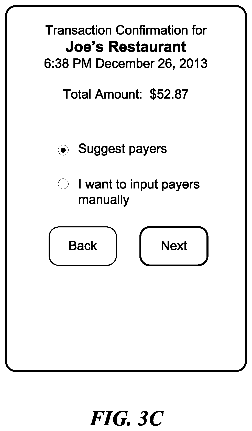 This application claims the benefit of co-pending U.S. patent application Ser. No. 16/846,358, filed on Apr. 12, 2020, which is a continuation of U.S. patent application Ser. No. 14/149,754, filed on Jan. 7, 2014, and granted as U.S. Pat. No. 10,621,563, on Apr. 14, 2020, which claims the benefit of U.S. Provisional Patent Application No. 61/921,373, filed on Dec. 27, 2013. These applications are hereby incorporated by reference as if fully set forth herein. At least one embodiment of the present invention pertains to financial transactions involving payment cards, and more particularly, to a technique for apportioning a payment card transaction among multiple payers. When two or more people want to share the cost of a purchase, apportioning the cost between them can be problematic, especially when one or more of them wants to pay by credit card. Consider, for example, the situation in which a social group gathers for a meal at a restaurant, where everyone is to pay for his or her own food and drink. When it comes time to pay the check, the need to determine how much each person owes and settle the bill creates an inconvenient and sometimes awkward interruption in the social interaction of the group. Making this process go smoothly can be a challenge, even more so if the group includes a mixture of single people and couples or families. There are various ways of handling this kind of situation. For example, in one common approach, one member of the group uses a credit card, and the other members of the group reimburse that person with cash for their portions. With this approach, it is inconvenient and often time-consuming to have to calculate how much each person (or each couple or family) owes and then collect cash from the other members of the group. Additionally, it is common that some members of the group end up paying more or less than their fair share (with the person who paid by credit card often paying more than his fair share). In another common approach, the group asks the waiter to split the check in a certain manner, and everyone then either pays cash or uses his own credit card. This approach can also be troublesome if the check is not being split equally, and regardless, it is inconvenient and time-consuming for the waiter. In any of these situations, the need to deal with these issues detracts from the social atmosphere of the event. One or more embodiments of the present invention are illustrated by way of example and not limitation in the figures of the accompanying drawings, in which like references indicate similar elements. In this description, references to “an embodiment”, “one embodiment” or the like, mean that the particular feature, function, structure or characteristic being described is included in at least one embodiment of the technique introduced here. Occurrences of such phrases in this specification do not necessarily all refer to the same embodiment. On the other hand, the embodiments referred to also are not necessarily mutually exclusive. Introduced here is a technique for apportioning the cost of a purchase or other financial transaction among multiple payers, particularly (though not exclusively) where one of the payers uses a payment card to pay for the transaction. The term “payment card” as used herein means a credit card, debit card, prepaid gift card, or the like, or a card which functions as a combination of any of these mechanism. A payment card is a specific type of payment object. Other types of payment objects are discussed below. Briefly described, the technique introduced here enables a consumer who uses a payment card to pay for goods or services to specify, by using his mobile device (e.g., a smartphone or tablet computer), how the transaction amount should be apportioned among multiple payers. Such apportionment is called “bill splitting” in this description, as shorthand. In certain embodiments, the technique involves communication between a mobile payment application installed on the consumer's mobile device and a remote payment service system (PSS). The mobile payment application enables the user to specify (either at the time of the transaction or at a later time) how many payers there are, who the payers are, and exactly how the transaction amount should be apportioned (how the bill should be split) among the payers. The mobile payment application communicates this information to the PSS, which then executes or triggers execution of the transfer of funds to carry out the specified apportionment. The technique introduced here makes bill splitting relatively quick and easy compared to traditional methods. Furthermore, since the apportionment can be specified by the consumer and effectuated well after the transaction has completed, the technique greatly reduces the potential for awkward interruptions to the social flow of group events due to bill splitting issues. As described further below, to initiate a payment transaction according to one embodiment of the technique, a consumer first presents a payment card to a merchant. The merchant swipes the payment card of the consumer with a card reader at the merchant's point-of-sale (POS) system, in the traditional manner. The term “swipe” here refers to any manner of triggering a physical card reader to read a physical card, such as passing a card through a magnetic stripe card reader, optical scanner, or smartcard reader, radio frequency identification (RFID) reader, or the like. The term “sale”, such as in “point-of-sale,” refers to any type of payment-oriented transaction, including a lease or rental for example, and is not limited to an actual purchase. In response to the card swipe, the merchant's POS system transmits onto a network a standard transaction approval request, which gets routed to the PSS. The transaction approval request includes data commonly associated with traditional payment card transaction approval requests. However, in certain embodimen