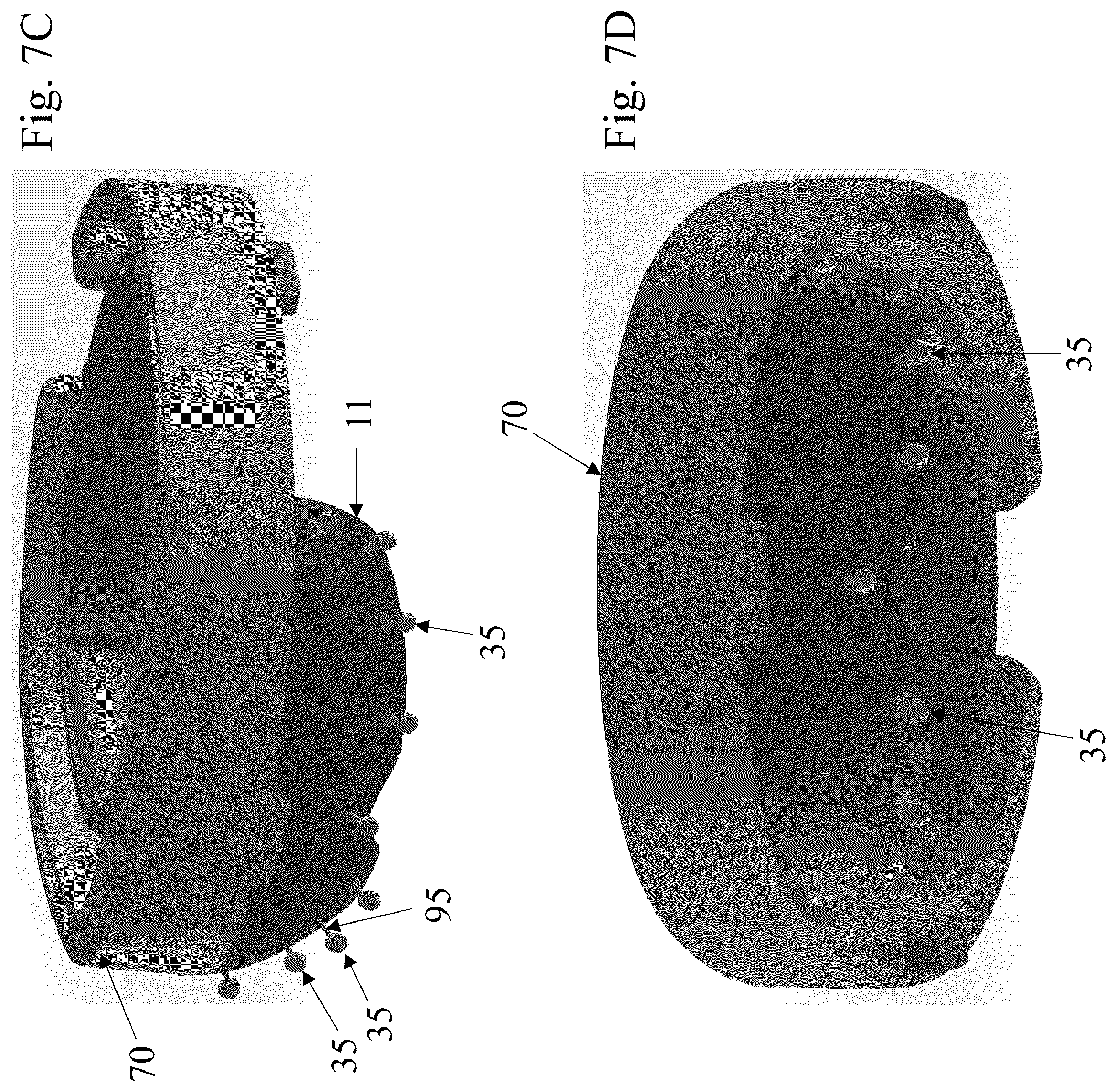 Any of the frontal, parietal, occipital, temporal, vertex, zygomatic, nasal, maxillary, mandibular and/or chin portions, modules or components can include a skin, face or hair facing surface, portion, module or component and/or an external facing surface, portion, module or component. One or more of the frontal, parietal, occipital, temporal, vertex, zygomatic, nasal, maxillary, mandibular and/or chin portions, modules or components, including any skin, face or hair facing surfaces, portions, modules or components and/or external facing surfaces, portions, modules or components can be of mono-component design, e.g. with a singular body, or multi-component design, e.g. with multiple bodies, for example connected using mechanical, electric, magnetic or electromagnetic means. Mono-component, singular body and multi-component, multi-body designs can be combined. For example, an internal (towards skin, face or hair) facing portion of a frontal, vertex and occipital portion can be of mono-component design, e.g. formed as a singular body, while a mandibular portion and chin portion can be of multi-component design with a chin portion body and two or more mandibular portion bodies formed as multiple bodies that can be connected to each other and, optionally, that can be connected to the single body frontal, vertex and occipital portion. Any combination of mono-component and multi-component designs is possible. One or more of the frontal, parietal, occipital, temporal, vertex, zygomatic, nasal, maxillary, mandibular and/or chin portions, modules or components, including any skin, face or hair facing surfaces, portions, modules or components, can include one or more components, pieces, extenders, tabs to support, secure and/or stabilize the HMD against portions of the surgeon's skin, hair, face on the surgeon's frontal, parietal, occipital, temporal, vertex, zygomatic, nasal, maxillary, mandibular and/or chin area. One or more of the frontal, parietal, occipital, temporal, vertex, zygomatic, nasal, maxillary, mandibular and/or chin portions, modules or components, including any skin, face or hair facing surfaces, portions, modules or components, can include one or more fasteners, including optionally with adhesive, e.g. water soluble, to support, secure and/or stabilize the HMD against portions of the surgeon's skin, hair, face on the surgeon's frontal, parietal, occipital, temporal, vertex, zygomatic, nasal, maxillary, mandibular and/or chin area. One or more of the frontal, parietal, occipital, temporal, vertex, zygomatic, nasal, maxillary, mandibular and/or chin portions, modules or components, including any skin, face or hair facing surfaces, portions, modules or components, can include one or more straps, including optionally with rubber or Velcro, to support, secure and/or stabilize the HMD against portions of the surgeon's skin, hair, face on the surgeon's frontal, parietal, occipital, temporal, vertex, zygomatic, nasal, maxillary, mandibular and/or chin area. One or more of the frontal, parietal, occipital, temporal, vertex, zygomatic, nasal, maxillary, mandibular and/or chin portions, modules or components, including any skin, face or hair facing surfaces, portions, modules or components, can include one or more mechanical means to support, secure and/or stabilize the HMD against portions of the surgeon's skin, hair, face on the surgeon's frontal, parietal, occipital, temporal, vertex, zygomatic, nasal, maxillary, mandibular and/or chin area. The mechanical means can be head holder which can optionally be tightened over the user's head, for example using a dial with expandable or retractable elements (24, The frontal or front facing portion, module or component (18, In some embodiments, the surgeon can wear a surgical gown, which can be sterile. Standard surgical gowns, such as, for example, the AAMI Level 4 and Level 3 gowns provided by Cardinal Health (Dublin, OH, USA) can be used. The gown can, for example, cover the arms, shoulders, chest, abdomen, and/or back portions of the surgeon. The gown can be worn in conjunction with a cover for the surgical helmet or hood. In some embodiments, the surgeon can elect to wear a cover for a surgical helmet or hood, for example in conjunction with a surgical helmet and an optional air filtration system. The cover for the surgical helmet or hood can be sterile. The cover for the surgical helmet or hood can be made of the same material or a similar material as the gown. The cover for the surgical helmet or hood can cover the entire head and, optionally, extend down to the surgeon's neck and/or shoulders. The cover for the surgical helmet or hood can, optionally, be connected to the gown, for example using fasteners, Velcro straps, regular straps (which can, optionally, be tied or knotted). The cover for the surgical helmet or hood can include a transparent portion, e.g. an integrated, transparent face shield, through which the surgeon can observe the surgical field. The transparent portion, e.g. a transparent face shield, can be made of plastic. The transparent face shield can, optionally, include a UV light filter. The UV light filter function can be inherent to the plastic of the face shield. The UV light filter function can be achieved through a coating to the face shield. Optionally, the transparent portion, e.g. transparent face shield, can be exchangeable. Exchanging the transparent portion can be desirable when, for example, too much blood or tissue has accumulated on the transparent portion, for example after sawing a bone. The transparent portion can be exchangeable using mechanical means, e.g. one or more snap-on mechanisms, which can be rounded and local, e.g. like multiple snap-on studding the front portion of the cover for the surgical helmet or hood at the perimeter surrounding the face shield. The transparent portion can be exchangeable using a zip lock like mechanism, which can optionally surround the entire perimeter of the cover fo
