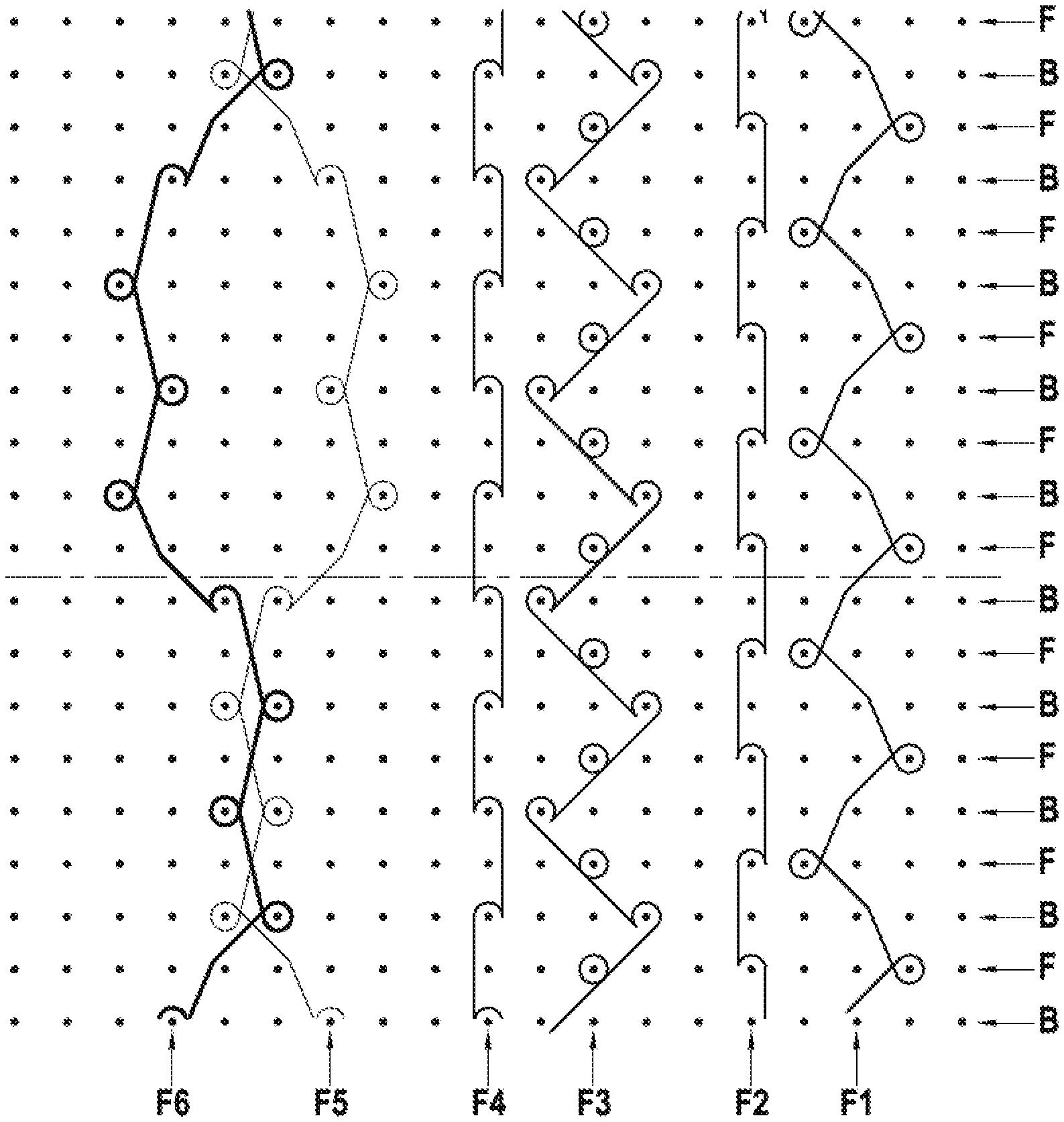 closed or open loop or alternating closed loop and open loop pillar stitch,