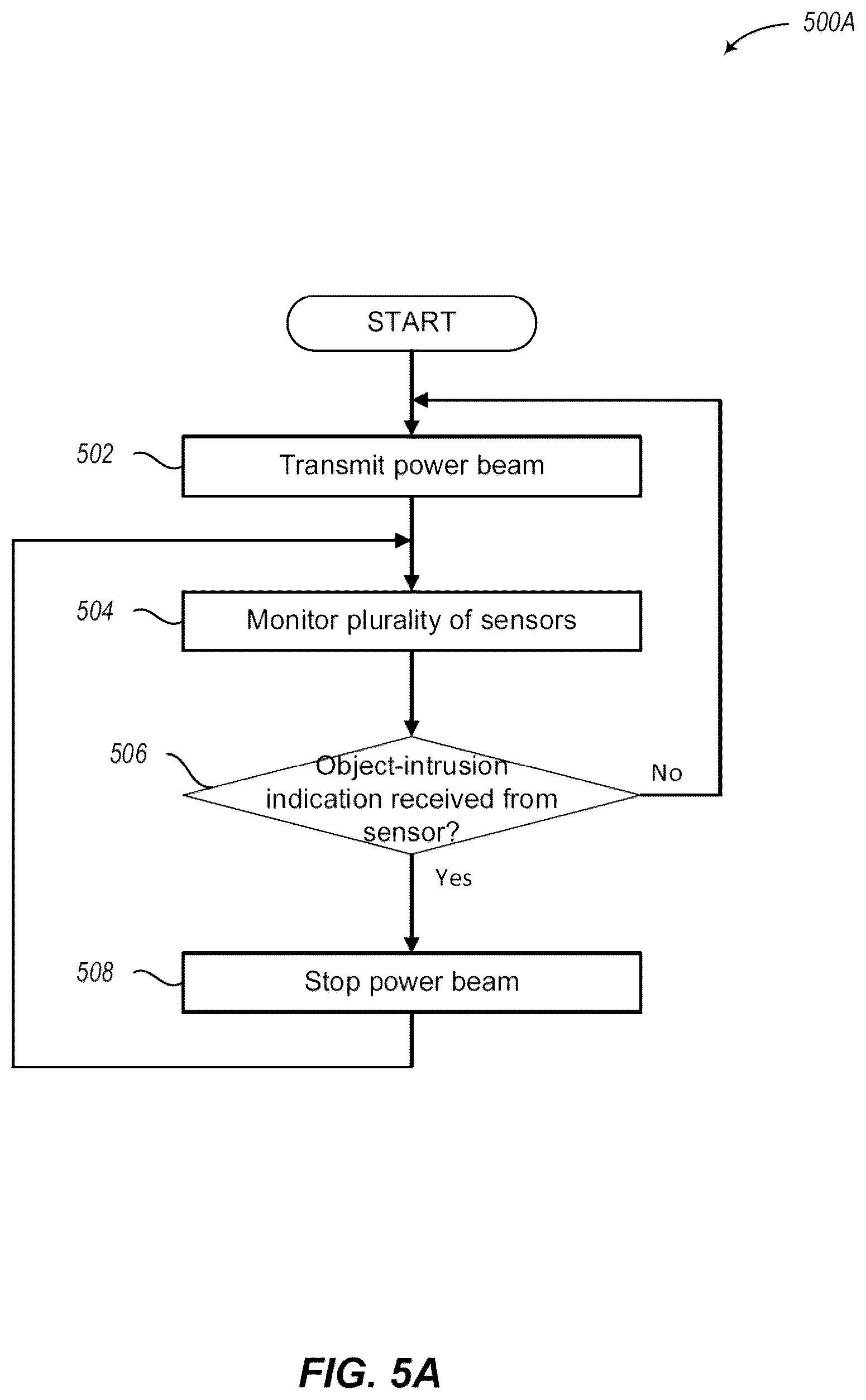 one or more first detectors arranged to detect a first guard beam signal emitted by the one or more first emitters at the first wavelength; one or more second detectors arranged to detect a second guard beam signal emitted by the one or more second emitters at the second wavelength, a controller that directs operations of one or more first detectors and one or more second detectors, wherein when an expected signal of a particular wavelength is not received, the controller determines that is indicative of a foreign object near or impeding the power beam. 18. The system according to 19. The system according to 20. The system according to