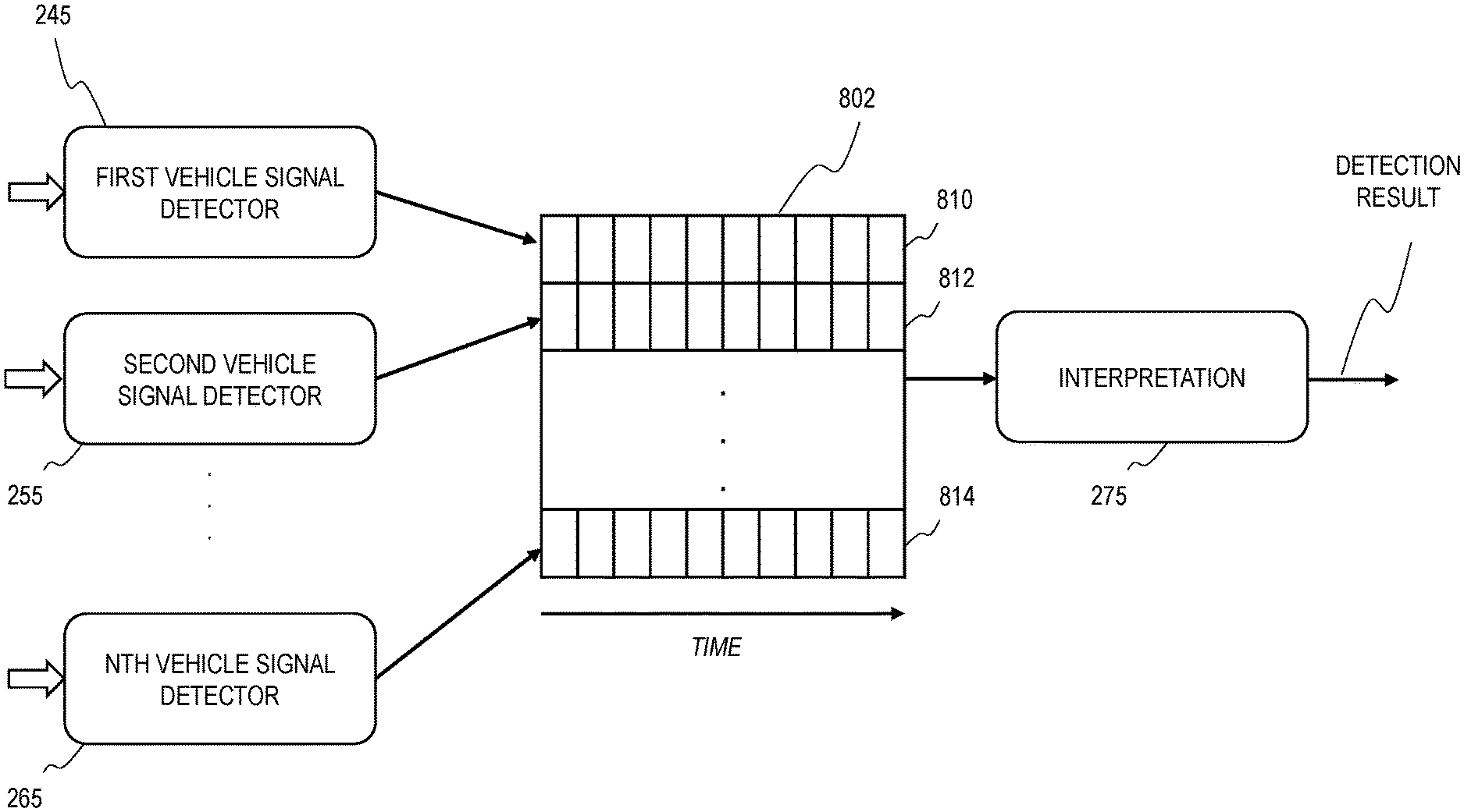 outputting, by an object tracker encoded by the instructions, one or more tracked objects; processing images by a first vehicle signal detector encoded by the instructions and a second vehicle signal detector encoded by the instructions, wherein the first and second vehicle signal detector implement different techniques for detecting vehicle signal lights based on the same images; outputting, by the first vehicle signal detector, first intermediary vehicle signal light semantic classifications; outputting, by the second vehicle signal detector, second intermediary vehicle signal light semantic classifications; processing further images different from the images by a third vehicle signal detector encoded by the instructions; outputting, by the third vehicle signal detector, third intermediary vehicle signal light semantic classifications; collecting first time-series data generated by the first vehicle signal detector, wherein the first time-series data comprises the first intermediary vehicle signal light semantic classifications; collecting second time-series data generated by the second vehicle signal detector, wherein the second time-series data comprises the second intermediary vehicle signal light semantic classifications; collecting third time-series data generated by the third vehicle signal detector, wherein the third time-series data comprises the third intermediary vehicle signal light semantic classifications; and deducing a final semantic detection of a vehicle signal light based on the first time-series data, the second time-series data, the third time-series data, and the one or more tracked objects. 16. A vehicle, comprising: