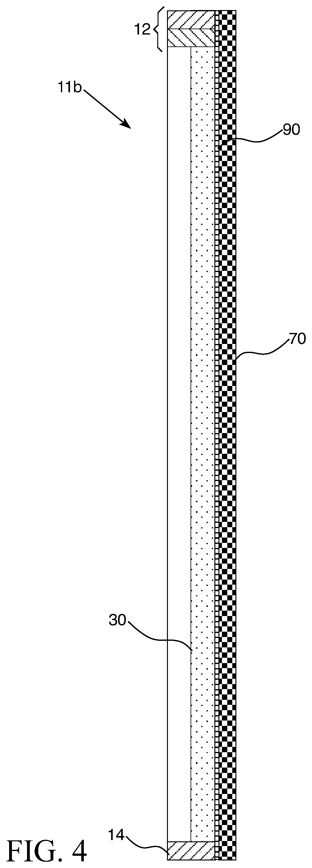 (i) adheres to a rear surface of at least one of the foam panel or, if present, a rear surface of the non-foam sheathing, (ii) has a density, as determined by ASTM D1622-14, of 44 kg/m3(2.75 lb/ft3) to 160 kg/m3(10.0 lb/ft3) and exhibits a Class A rating according to ASTM E84-16, and (iii) is a cured reaction product of a polyurethane foam-forming composition comprising: