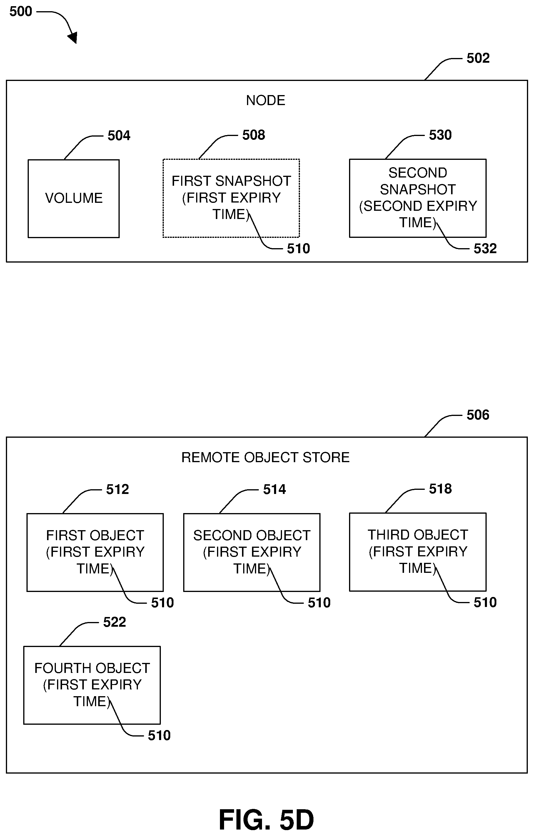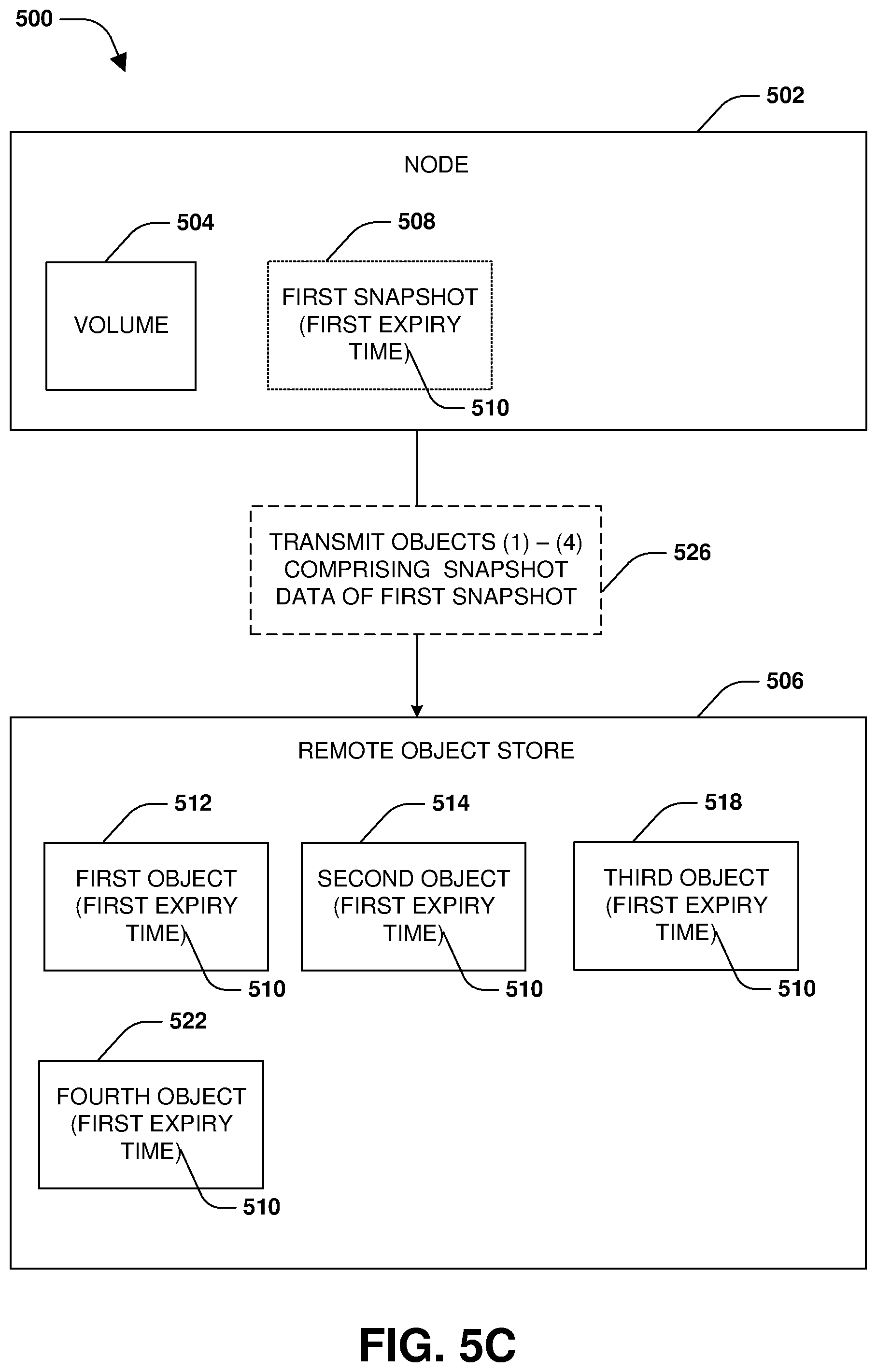 This application claims priority to U.S. Patent Application, titled “IMMUTABLE SNAPSHOT COPIES STORED IN WRITE ONCE READ MANY (WORM) STORAGE”, filed on Jul. 30, 2021 and accorded application Ser. No. 17/389,398, which is incorporated herein by reference. Many industries, such as financial, automotive, and healthcare industries, may have requirements where data and backup data is to be stored within immutable storage for a particular amount of time for compliance purposes. This data may be stored in an immutable state where the data cannot be deleted or modified for a retention time, such as 1 month. For example, the data may be locked down into a protected state for data retention and compliance purposes, such as by being stored in the immutable storage with write once read many (WORM) access. While in the protected/immutable state, the data cannot be modified or deleted. Once the retention time has expired, the data may be modified or deleted. Some examples of the claimed subject matter are now described with reference to the drawings, where like reference numerals are generally used to refer to like elements throughout. In the following description, for purposes of explanation, numerous specific details are set forth in order to provide an understanding of the claimed subject matter. It may be evident, however, that the claimed subject matter may be practiced without these specific details. Nothing in this detailed description is admitted as prior art. Many users are starting to store their data within remote object stores, such as cloud computing environments, which provide relatively cost effective and scalable storage. For example, a client may store data within a volume hosted by a node using storage managed by the node. The client may actively access and modify the data within the volume. The node may generate snapshots of the volume as point in time representations of the volume. The node may store snapshot data of these snapshots into objects formatted according to an object format. The node may then store these objects within a remote object store for long term cost effective storage of snapshots of the volume. The client may specify or be subject to a storage retention policy where the snapshots are to be retained in an immutable state for a retention time period. In an example, financial data, healthcare data, or other types of data, may be subject to the storage retention policy where the snapshots cannot be deleted or modified for the retention time. For example, the snapshot data of the snapshots stored within the objects are to be retained in the immutable state for 3 months before the snapshots and corresponding objects can be modified or deleted. When an object comprising snapshot data of a snapshot subject to the storage retention policy is stored within the remote object store, an expiry time may be assigned to the object. The expiry time may be based upon a creation time of the snapshot or object and the retention time. The object may remain in the immutable state where the object cannot be modified or delete until expiration of the expiry time. In this way, the snapshot data of the snapshot stored within the object cannot be deleted or modified for the retention time, thus satisfying the storage retention policy. Snapshot data within an object may be shared by multiple snapshots, and snapshot data of a snapshot may be stored across multiple objects. For example, some snapshot data referenced by a first snapshot (e.g., a base snapshot or an incremental snapshot) may be shared with a second snapshot (e.g., an incremental snapshot created subsequent the first snapshot) because that snapshot data is referenced by both the first snapshot and the second snapshot. This can cause problems when enforcing a storage retention policy because shared snapshot data referenced by two different snapshots having different expiry times may reside in an object having an expiry time that does not comply with both expiry times of the snapshots. For example, a first snapshot may be created, and snapshot data of the first snapshot may be stored within a first object for storage within the remote object store. The first snapshot and the first object may have an expiry time of Jun. 15, 2021, which may correspond to 3 months after the first snapshot and first object are created. 10 days later, a second snapshot may be created, and snapshot data of the second snapshot may be stored within a second object for storage within the remote object store. The second snapshot and the second object may have an expiry time of Jun. 25, 2021, which may correspond to 3 months after the second snapshot and second object are created. However, if the second snapshot with the expiry time of Jun. 25, 2021 reference snapshot data of the first snapshot in the first object having the expiry time of Jun. 10, 2021, the first object could be deleted or modified before Jun. 25, 2021. This would violate the storage retention policy for the second snapshot and second object. Accordingly, as provided herein, snapshot data of snapshots may be stored within objects in a manner that guarantees that a storage retention policy is not violated notwithstanding multiple snapshots with different expiry times referencing the same shared snapshot data within an object. When a snapshot is created and snapshot data of the snapshot is stored into one or more objects for storage within the remote object store, a scanner may be executed. The scanner is executed in order to determine whether any existing objects within the remote object store comprise shared snapshot data referenced by the snapshot. In particular, the scanner may be configured to interpret metadata structures associated with the existing objects so that the scanner can traverse hierarchical tree structures used to represent snapshot data and bitmaps of snapshots indicating which objects store data of each snapshot. In this way, the scanner can utilize the metadata str