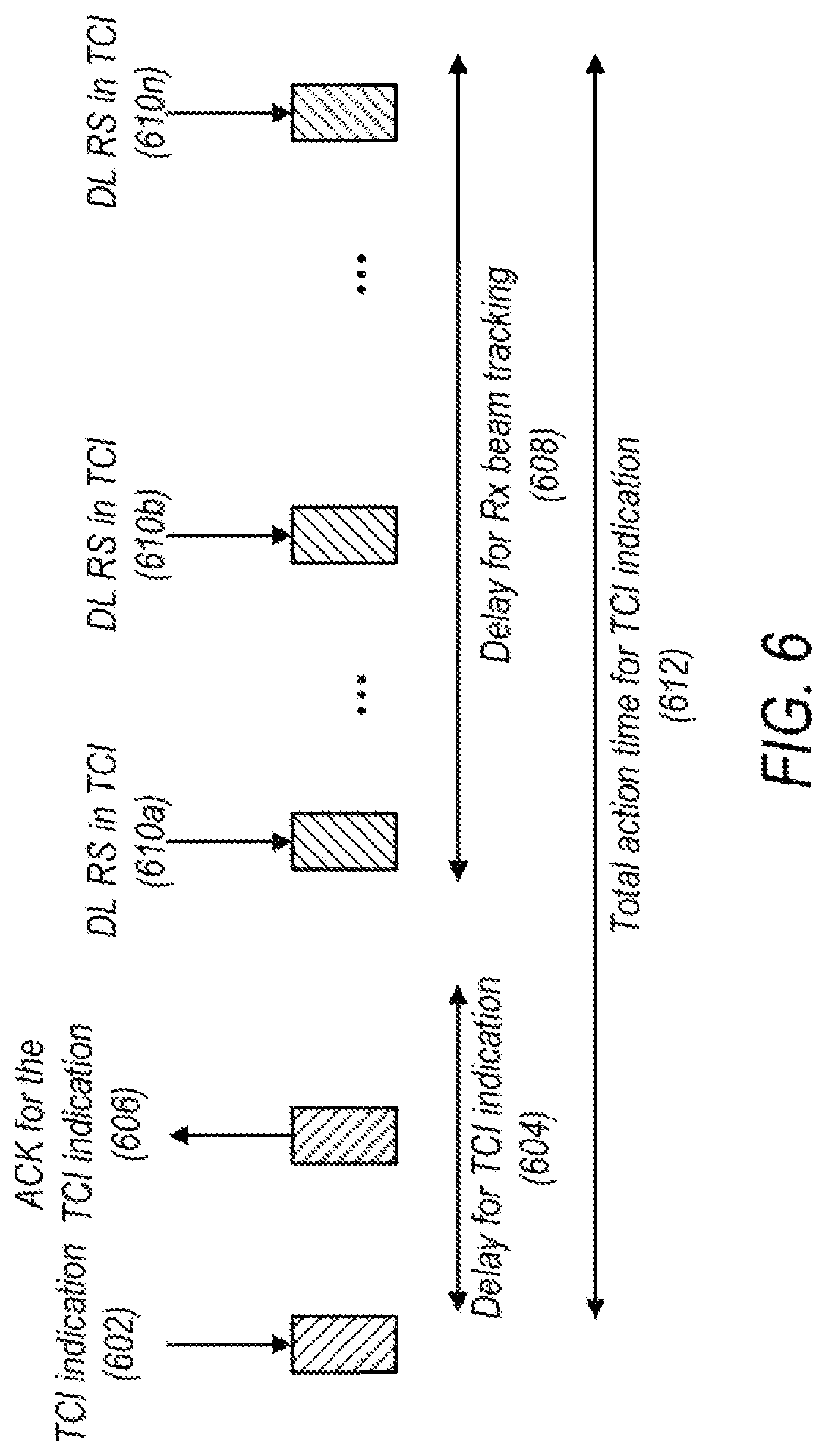 establishing communication with a user equipment device (UE) according to a first transmission control state; transmitting, to the UE, an indication to use a second transmission control state and an indication of first aperiodic reference signals; transmitting, to the UE, the first aperiodic reference signals according to the second transmission control state; and receiving, from the UE, an acknowledgement of the indication to use the second transmission control state, wherein the acknowledgement is transmitted after the first aperiodic reference signals are transmitted. 16. The method of determining first periodic references signals that share a quasi-colocation (QCL) with the first aperiodic reference signals, wherein the first periodic reference signals are useable for pathloss measurement; and determining not to provide an explicit indication of reference signals for pathloss measurement according to the second transmission control state. 17. The method of 18. The method of transmitting periodic reference signals according to the pathloss reference signal index. 19. The method of 20. The method of transmitting, to the UE, an indication to use the third transmission control state for uplink communication.