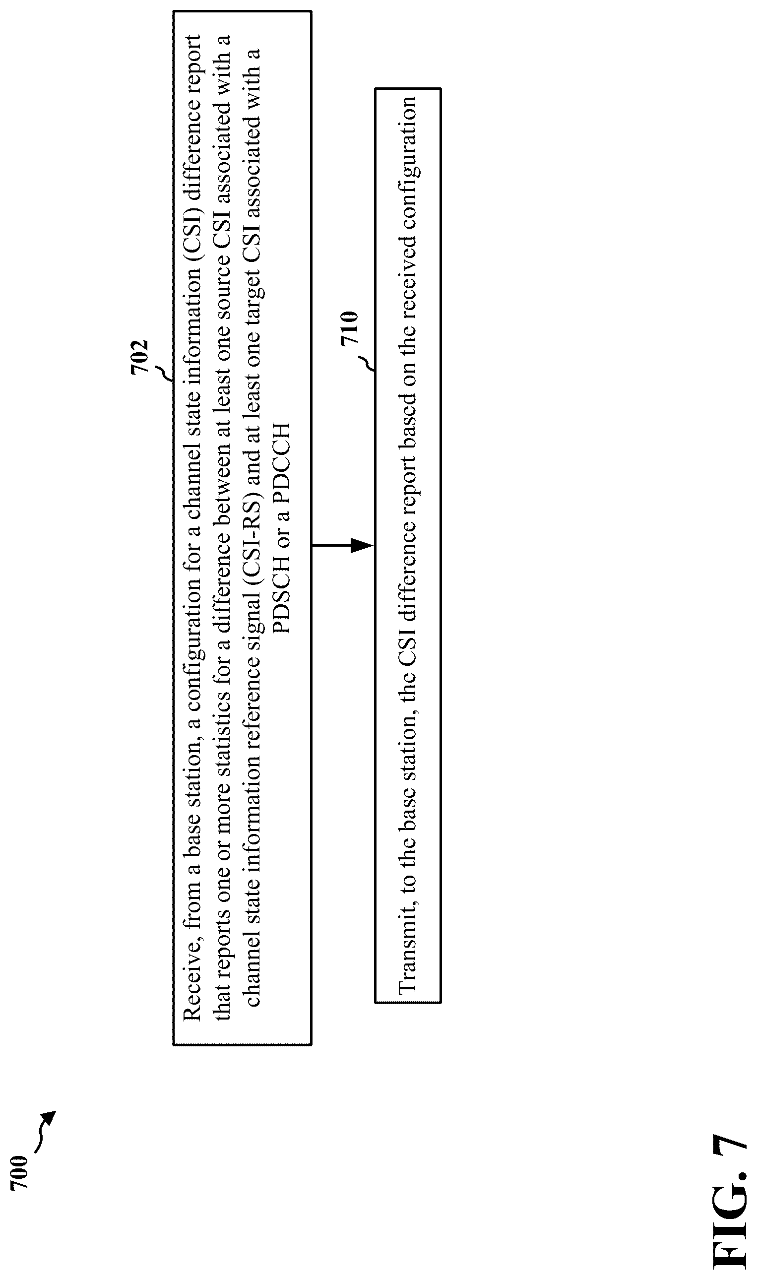 transmitting, to a user equipment (UE), a configuration comprising a set of triggering conditions for transmitting a channel state information (CSI) difference report that reports one or more statistics for at least one source CSI associated with a channel state information reference signal (CSI-RS) and at least one target CSI associated with a physical downlink shared channel (PDSCH) or a physical downlink control channel (PDCCH), wherein the configuration configures the UE to report the CSI difference report without reporting the at least one source CSI and the at least one target CSI; and receiving the CSI difference report from the UE.