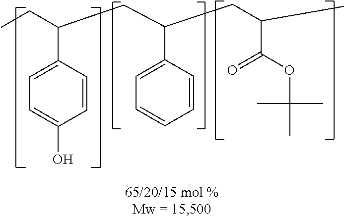 The second polymer which comprises a copolymer of polyhydroxystyrene and polytetiarybutylmethacrylate (denoted as (PHS/TBA) is shown below.