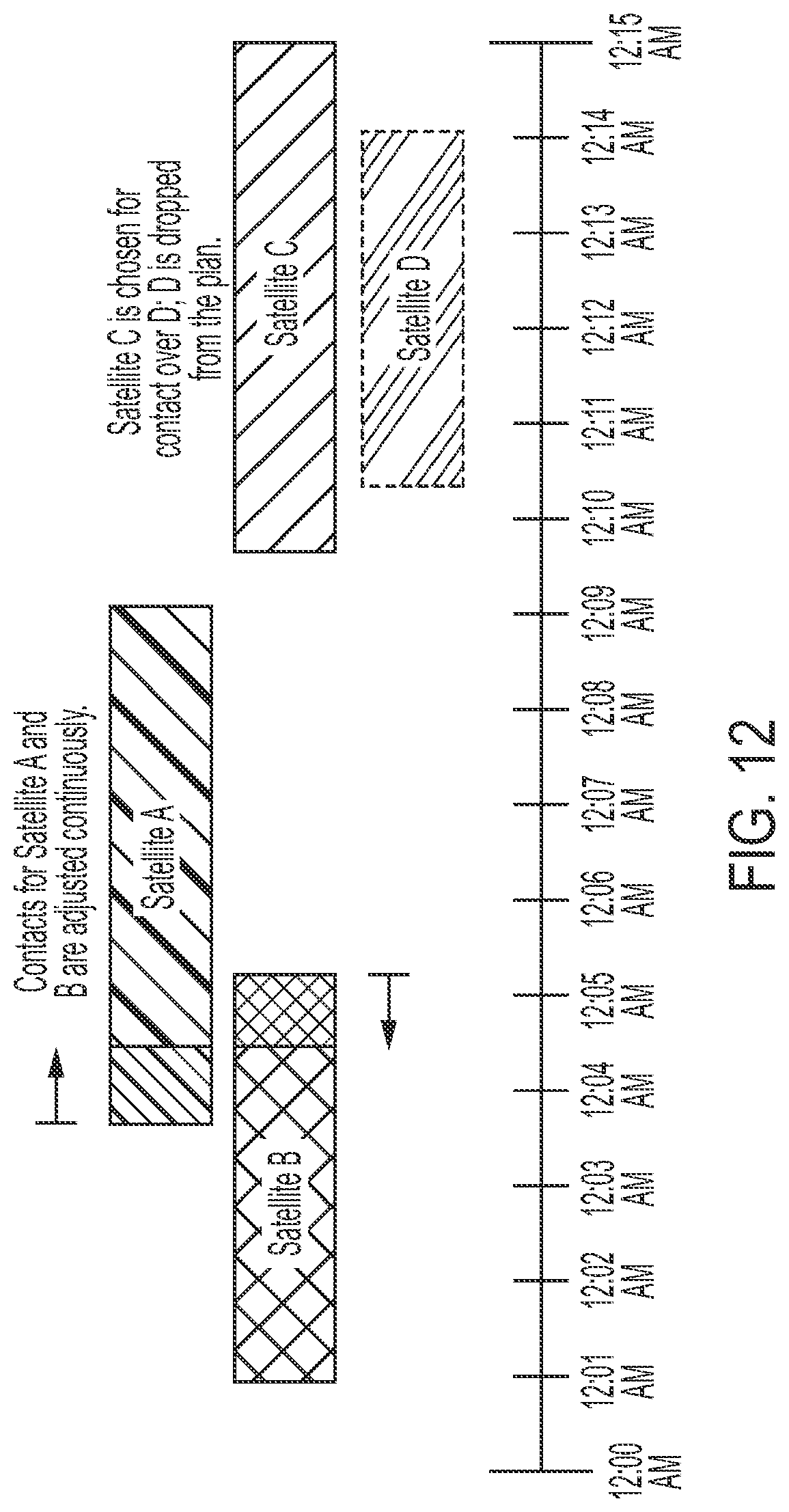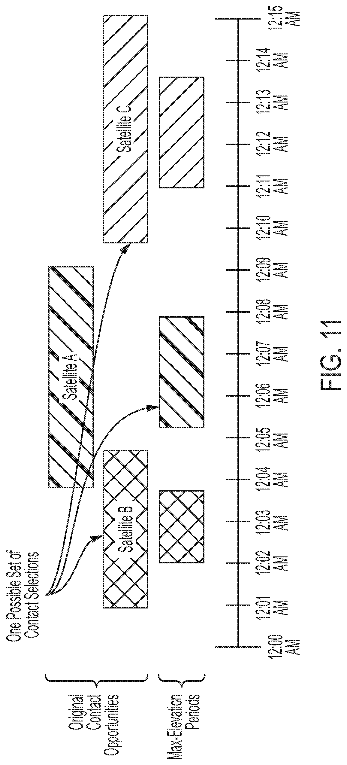 a scheduled payload window; and historical telemetry that describes a pairwise bandwidth between the ground station and the satellites. 20. The method of performing, by the processor, semi-continuous splitting to: