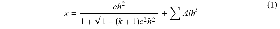 Material Refrac- Conic Surface Surface Radius of Thick- tive Abbe coeffi- number type curvature ness index number cient OBJ Spherical Infinite Infinite S1 Aspheric 2.7818 0.5727 1.54 55.9 −6.3737 S2 Aspheric −31.5016 0.1000 80.0000 S3 Aspheric 8.6316 0.4672 1.55 56.1 −4.1830 S4 Aspheric 99.0000 0.1000 −80.0000 S5 Aspheric −99.0000 0.2400 1.67 20.4 0.0000 S6 Aspheric 6.3340 0.1649 5.4843 STO Spherical Infinite 0.1452 S7 Aspheric −99.0000 0.6107 1.55 56.1 0.0000 S8 Aspheric −5.0599 0.3387 −11.3653 S9 Aspheric −100.0000 0.4847 1.67 20.4 0.0000 S10 Aspheric −55.1449 0.4495 80.0000 S11 Aspheric 4.0194 0.6701 1.55 56.1 −1.3544 S12 Aspheric 3.5209 0.4993 −10.6790 S13 Aspheric 11.3697 0.2400 1.54 55.9 8.3866 S14 Aspheric 1.9026 0.1035 −11.7514 S15 Spherical Infinite 0.2495 1.52 64.2 S16 Spherical Infinite 0.1138 S17 Spherical Infinite S1 1.2947E−02 −7.1200E−03 −3.1820E−02 5.0844E−02 −5.1390E−02 3.2572E−02 −1.2250E−02 2.5200E−03 −2.2000E−04 S2 −2.5460E−02 −1.0640E−02 3.4673E−02 −5.3190E−02 4.9472E−02 −2.8050E−02 9.3780E−03 −1.6600E−03 1.1900E−04 S3 −9.3000E−03 2.3191E−02 −4.7690E−02 1.0073E−01 −1.1953E−01 8.3678E−02 −3.5050E−02 7.9850E−03 −7.3000E−04 S4 −1.2060E−02 −7.5080E−02 1.6365E−01 −2.8283E−01 3.5331E−01 −2.9318E−01 1.5076E−01 −4.3230E−02 5.2810E−03 S5 7.3670E−03 −6.9610E−02 1.1730E−01 −1.3843E−01 1.5222E−01 −1.3734E−01 8.3926E−02 −2.9140E−02 4.2580E−03 S6 1.6662E−02 −5.9090E−02 1.3203E−01 −2.0640E−01 2.5354E−01 −2.2244E−01 1.2725E−01 −4.1440E−02 5.7210E−03 S7 −2.7150E−02 −3.1850E−02 2.5620E−02 −2.7710E−02 1.7380E−03 4.1685E−02 −5.3060E−02 2.8413E−02 −5.8100E−03 S8 −3.3680E−02 −1.2720E−02 −8.3910E−02 2.0718E−01 −2.7664E−01 2.2896E−01 −1.1531E−01 3.2326E−02 −3.9000E−03 S9 1.8144E−02 −3.7480E−02 −4.4610E−02 1.3805E−01 −2.0977E−01 1.8811E−01 −9.9580E−02 2.8859E−02 −3.5700E−03 S10 1.8057E−02 −4.2420E−02 5.6686E−02 −7.5980E−02 6.1355E−02 −3.0330E−02 9.1710E−03 −1.5700E−03 1.1600E−04 S11 −5.7730E−02 −1.4630E−02 3.5676E−02 −3.9170E−02 2.5484E−02 −1.0590E−02 2.6320E−03 −3.5000E−04 1.8700E−05 S12 −3.2180E−02 −5.9900E−03 1.2610E−03 1.6850E−03 −1.9800E−03 8.0400E−04 −1.5000E−04 1.4000E−05 −5.0000E−07 S13 −3.1744E−01 2.3914E−01 −1.2298E−01 4.1130E−02 −8.7000E−03 1.1590E−03 −9.5000E−05 4.3700E−06 −8.7000E−08 S14 −1.3631E−01 8.8302E−02 −3.4810E−02 9.2460E−03 −1.6600E−03 1.9800E−04 −1.5000E−05 6.5500E−07 −1.2000E−08 f1 (mm) 4.79 f2 (mm) 17.29 f3 (mm) −8.92 f4 (mm) 9.75 f5 (mm) 183.68 f6 (mm) −99.00 f7 (mm) −4.29 f (mm) 4.20 TTL (mm) 5.55 ImgH (mm) 3.54 FOV (°) 79.4 Example 7