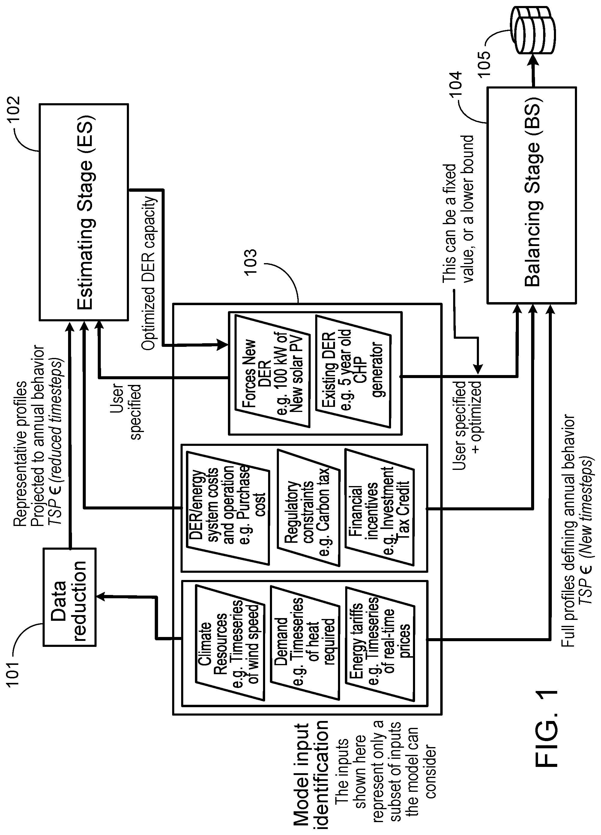 feeding, with the at least one processor, the subset of input data into a reduced version of a model for estimating an energy system configuration; estimating, with the at least one processor and using the reduced version of the model, a first microgrid configuration and a lower bound solution for a first energy system configuration based on the subset of input data; and in a second stage following the first stage: