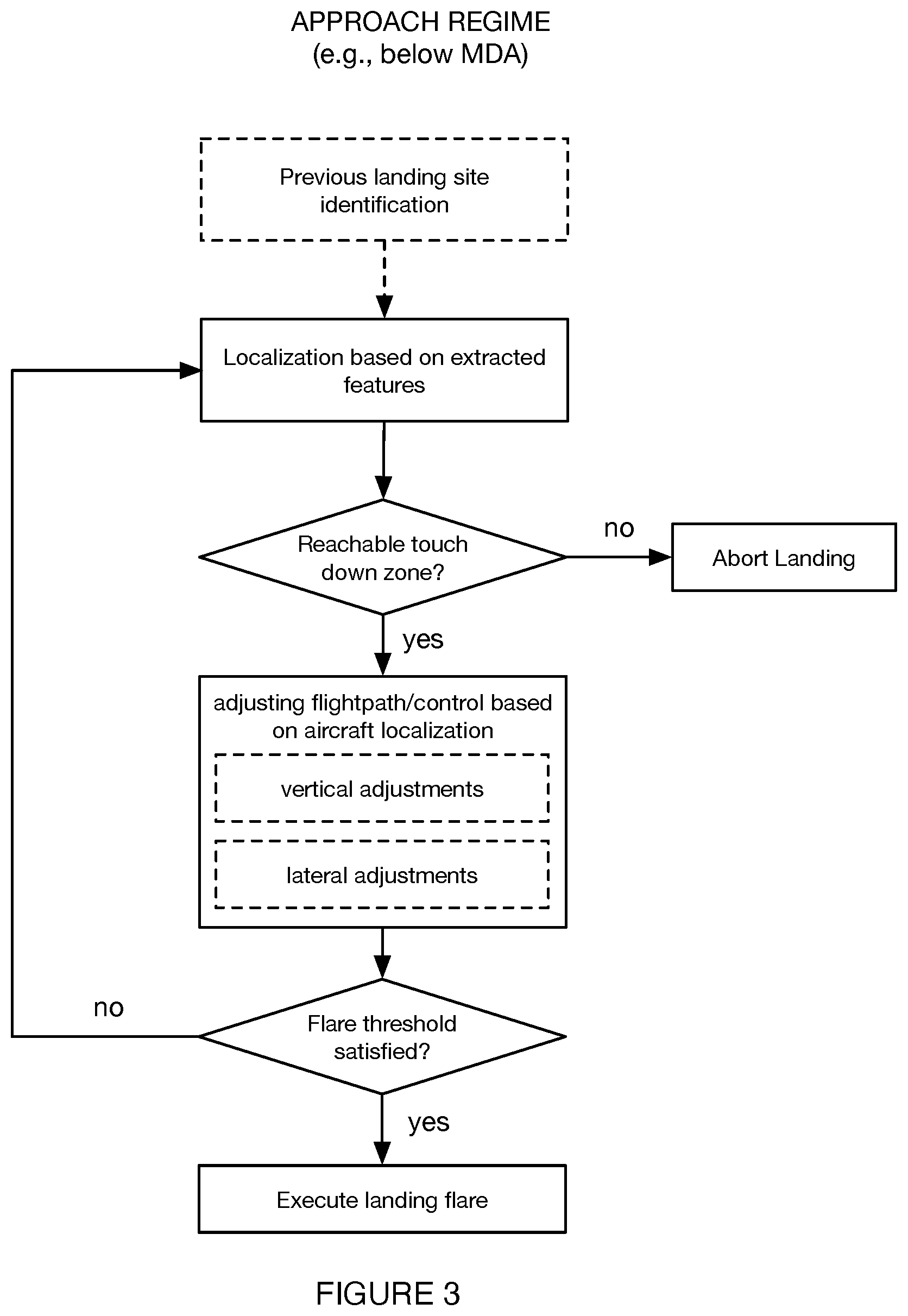 identifying a set of visual references based on features extracted from measurements collected with a first set of time-of-flight sensors onboard the aircraft, the first set of time-of-flight sensors comprising a LIDAR sensor; and determining a confidence score value associated with the identification of the set of visual references; and verifying observability of the landing site with the measurements by a binary determination that the confidence score value satisfies the confidence threshold; and responsive to the binary determination that the confidence score value satisfies the confidence threshold, automatically controlling the aircraft within an approach corridor of the landing site based on the set of visual references, comprising: