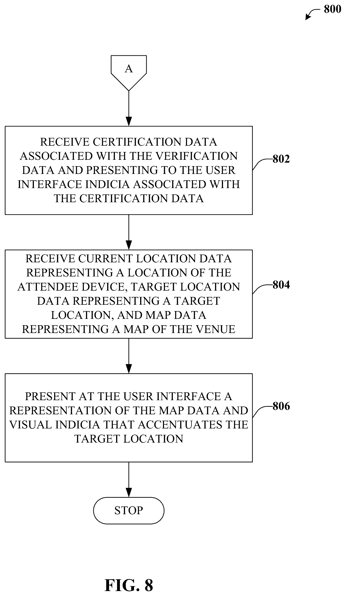 Any and all applications for which a foreign or domestic priority claim is identified in the Application Data Sheet as filed with the present application are hereby incorporated by reference under 37 CFR 1.57. This disclosure generally relates to providing true paperless entry to a venue and paperless location-based services. The trend to go paperless has touched most domains, including venue ticketing. Conventional approaches to go paperless generally only further that end up to the point of arriving at the gate. For example, other so-called paperless approaches typically leverage the existence of an attendee-operated smart phone or other computing device, by storing ticket information on the device. With this information digitally encoded, a guest services representative at a door or gate of the venue might simply scan a visual representation of suitable ticket information (e.g., a barcode) as readily as scanning the same or similar information from a paper ticket. In what is referred to herein as “flash seat” embodiments, a similar process might occur. That is, the device can include ID information in addition to or instead of ticket/barcode information, which can be scanned at the gate. In either case, assuming access to a suitable device, the attendee can arrive at the gate without any paper, thereby furthering the ends of going paperless. However, conventional paperless entry approaches are not truly paperless. In particular, once the attendee has produced sufficient proof of rights to enter (e.g., ticket data based on old approaches or ID data based on the more innovative flash seats approach), the scanner used by the guest services representative to verify this information prints a paper seat locator. This seat locator is then transferred to the attendee and can be subsequently produced for ushers in the interior of the venue to aid in seat location or verify entry privileges to certain exclusive portions of the venue. The following presents a simplified summary of the specification in order to provide a basic understanding of some aspects of the specification. This summary is not an extensive overview of the specification. It is intended to neither identify key or critical elements of the specification nor delineate the scope of any particular embodiments of the specification, or any scope of the claims. Its purpose is to present some concepts of the specification in a simplified form as a prelude to the more detailed description that is presented in this disclosure. Systems and methods disclosed herein relate to paperless venue entry. Verification data representing verification of a privilege to enter a venue can be received. Such can be received in response to a challenge of entry to the venue executed by a venue device associated with the venue. Locator data representing a location associated with the privilege to enter the venue can be received in response to the verification. The locator data can be presented to a user interface associated with the device of the attendee. The following description and the drawings set forth certain illustrative aspects of the specification. These aspects are indicative, however, of but a few of the various ways in which the principles of the specification may be employed. Other advantages and novel features of the specification will become apparent from the following detailed description of the specification when considered in conjunction with the drawings. Numerous aspects, embodiments, objects and advantages of the present invention will be apparent upon consideration of the following detailed description, taken in conjunction with the accompanying drawings, in which like reference characters refer to like parts throughout, and in which: Overview The subject matter described broadly relates to various techniques or mechanisms that can be utilized in connection with events (e.g., live events) held at a venue (e.g., stadium, arena, amphitheatre, theme park, etc.). These techniques or mechanisms can be ticketing-oriented, seating-oriented, or the like; and can be directed to enhancing efficiency, available features, conservation, incentives, security, or the experiences associated with event attendees (e.g., a ticket purchaser), event performers (e.g., artists, athletes, etc.), event hosts (e.g., venue owners, operators, etc.), event vendors or sponsors, or other suitable parties. When venues hold an event, manifests representing a seat map are used. Applying a manifest to a particular event can yield a ticket inventory, which can be a set of individual tickets. The process of creating and selling or otherwise allocating these tickets to customers is known as primary ticketing. Traditionally, primary ticketing relied on a paper ticket that was printed on-site and retrieved (e.g., from a will call booth) prior to entering the event, or in some cases delivered to the customer. Later, ticket outlets took over certain aspects of the ticket logistics, by delivering or providing convenient locations to pick-up the paper ticket. Soon after, customers were able to purchase tickets and print the ticket or a barcode at home. Eventually, this process has begun to migrate toward so-called “paperless” tickets, particularly in cases where the customer (e.g., event attendee) has access to a suitable electronic device of some sort to store the ticket information. However, regardless of whether the attendee appears at the venue with a paper ticket or an electronic one, the procedure for entering is somewhat similar. In particular, guest services representative(s) are assigned to each point of ingress at the venue, equipped with a scanner of some type. The scanner is used to scan the ticket or printed barcode (whether paper or electronic) and appropriate information is sent from the scanner to an access control server (ACS). The ACS can respond to this query with indications that the ticket or barcode is valid and has not already been scanned. Recentl