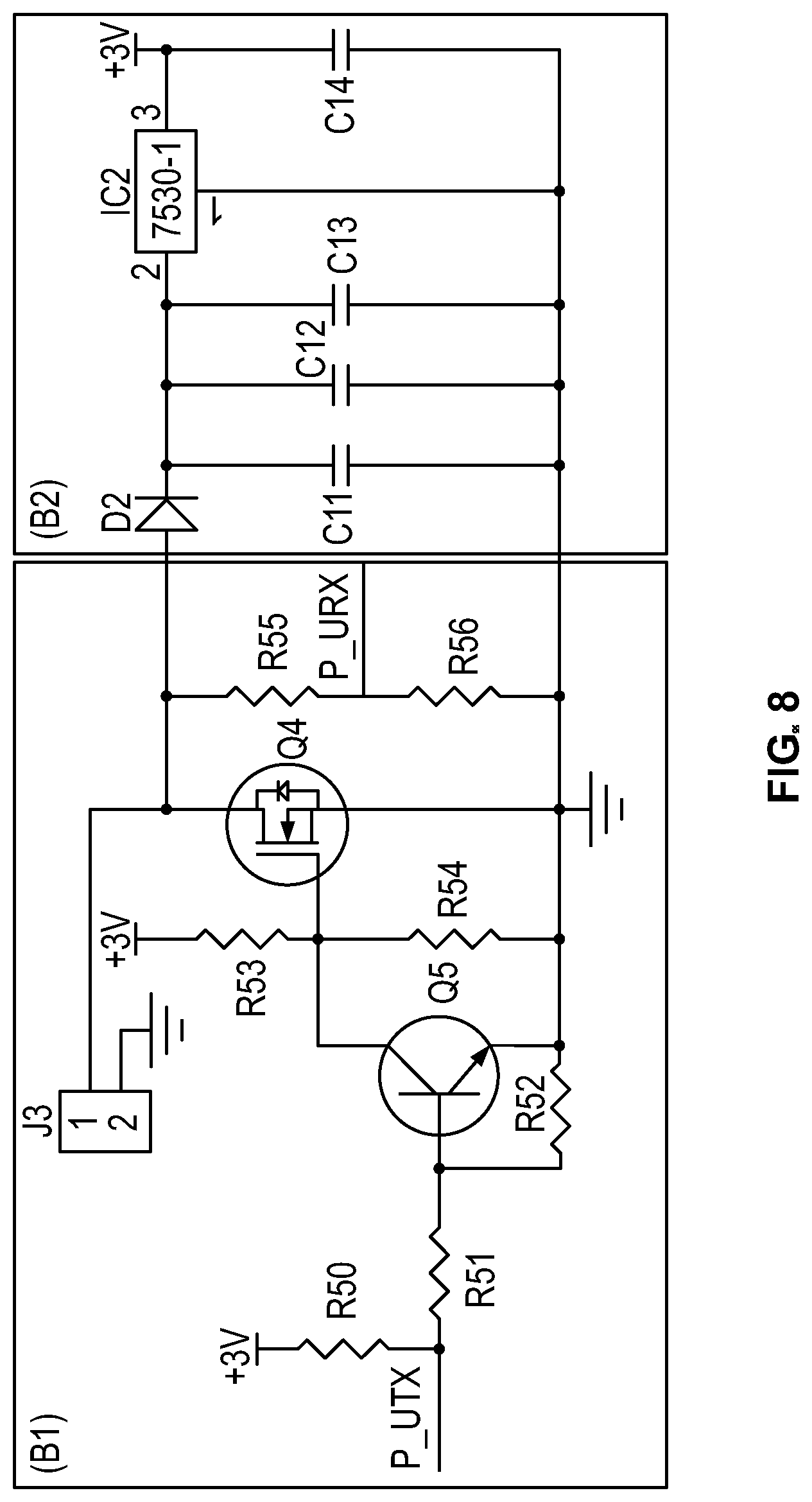 FIG. 8 is a first circuit diagram of an auxiliary power carrier serial port circuit and a sub-control power extraction circuit in FIG. 2 according to an embodiment of the present disclosure;