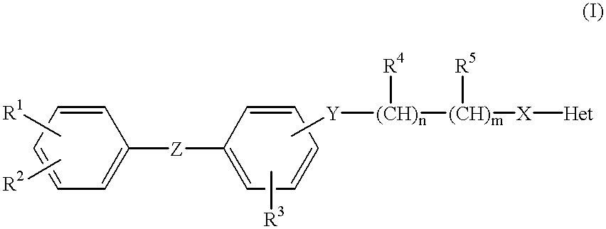 [0227] The substituted diaryl ethers include, in particular, substituted alkoxydiphenyl ethers or -diphenylmethanes of the general formula I