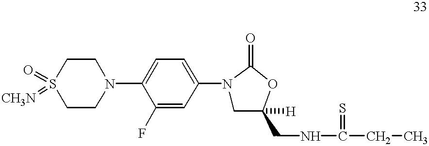 N-[((5S)-3-{3-Fluoro-4-[1-(methylimino)-1-oxido-1λ4,4-thiazinan-4-yl]phenyl}-2-oxo-1,3-oxazolidin-5-yl)methyl]propanethioamide (33)