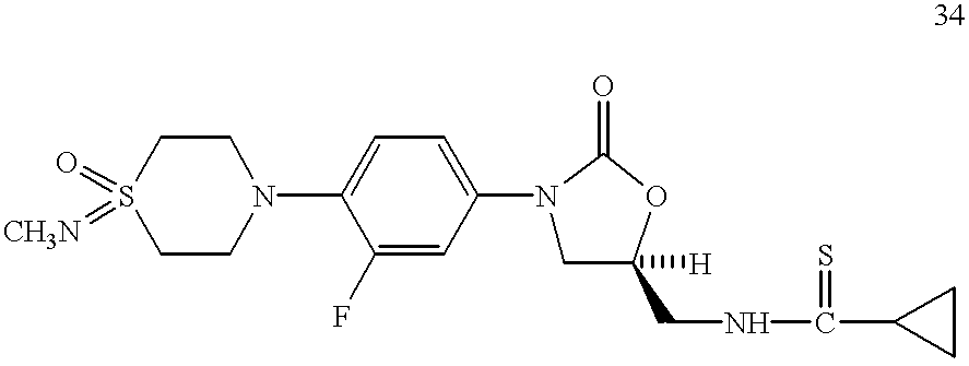 N-[((5S)-3-{3-Fluoro-4-[1-(methylimino)-1-oxido-1λ4,4-thiazinan-4-yl]phenyl}-2-oxo-1,3-oxazolidin-5-yl)methyl]cyclopropanecarbothioamide (34)