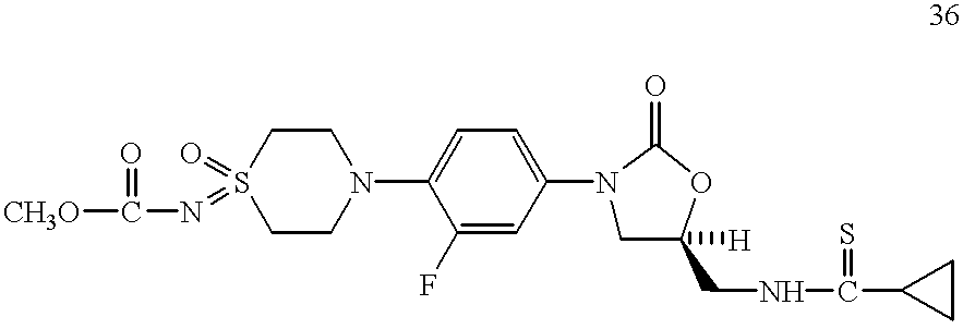 N-[((5S)-3-{3-Fluoro-4-(1-[(methoxycarbonyl)imino]-1-oxido-1λ4,4-thiazinan-4-yl)phenyl}-2-oxo-1,3-oxazolidin-5-yl)methyl]cyclopropanecarbothioamide (36)