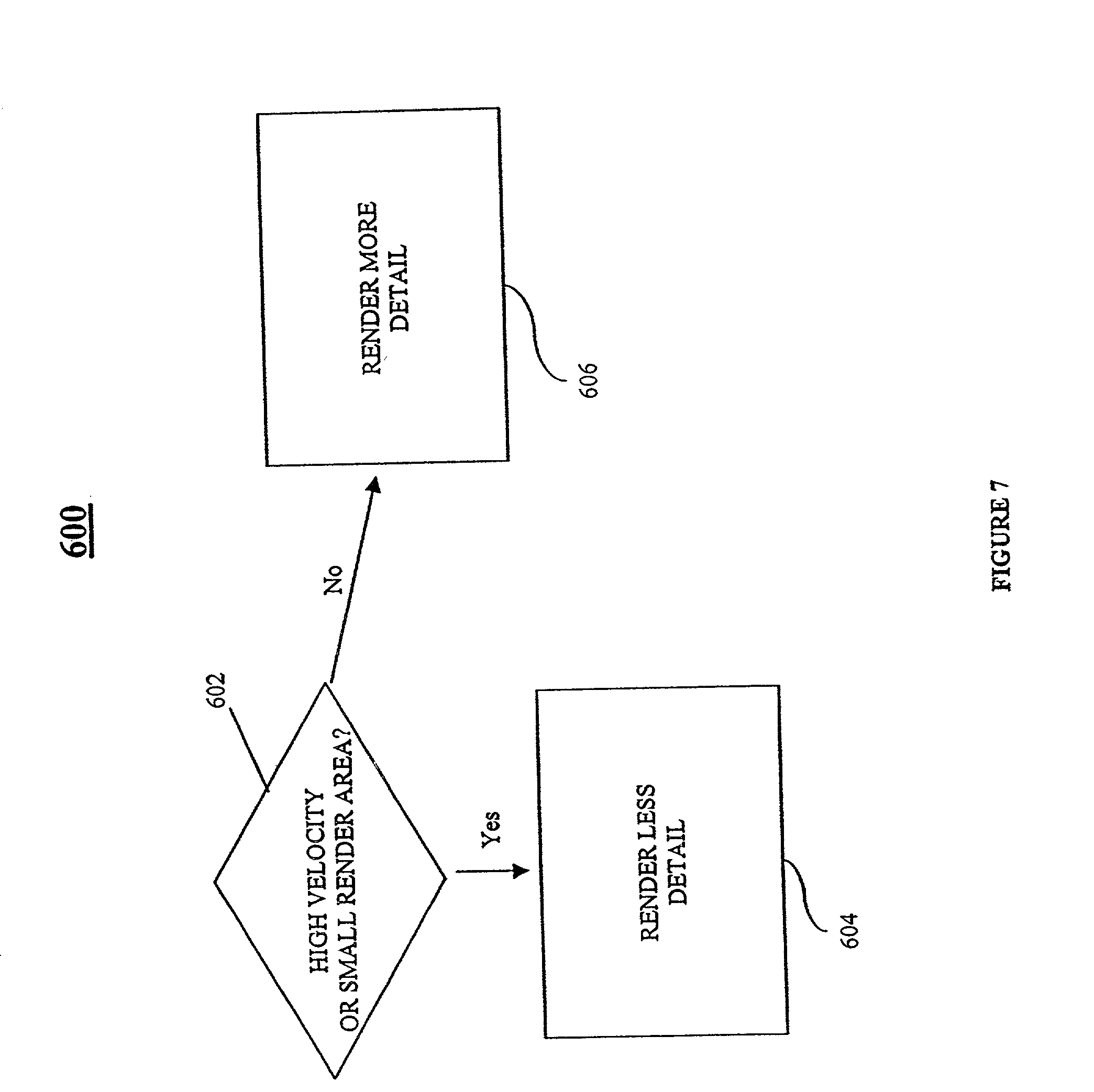 [0085] [0086] [0087] In the illustrative embodiment, the system 100 transmits and stores images in two formats. The two formats are raster graphic appearances and vector graphic appearances. The trade-off between the two is that raster graphic appearances provide more detail while vector graphic appearances require less information. In one embodiment, raster graphic appearances are used to define the appearance of data objects. Raster graphic appearances define graphic appearances by the bit. Since every bit is definable, raster graphic appearances enable the system 100 to display increased detail for each data object. However, since every bit is definable, a large amount of information is needed to define data objects that are rendered in a large client display area. [0088] In another embodiment, the raster graphic appearances, which require large size data words even when compressed, are omitted and instead the system 100 employs vector graphic appearances and text, which require a smaller size data word than raster graphic appearances, to define the appearance of data objects. Vector graphic appearances define the appearance of data objects as coordinates of lines and shapes, using x, y coordinates. A rectangle can be defined with four x, y coordinates, instead of the x times y bits necessary to define the rectangle in a raster format. For example, the raster graphic appearance of the country of England, which is in .gif form, highly compressed, is over three thousand bytes. However, the equivalent vector version is roughly seventy x, y points, where each x, y double is eight bytes for a total of five hundred sixty bytes. A delivery of text and vector images creates a real-time experience for users, even on a 14.4 kilobyte per second modem connection. [0089] [0090] According to another embodiment, the system 100 provides a text and image bread crumb bar 804. Like the text breadcrumb trail 802, the text and image breadcrumb trail 804 is a concatenation of each hierarchical level through which the user virtually travels. However, in addition to text, the trail 804 also includes thumbnail images 804 [0091] According to another feature, the system 100 enables the user to preview data objects without having to zoom to them. According to one embodiment, in response to the user moving a cursor over a region of the display, the system 100 reveals more detail about the data object(s) over which the cursor resides. By way of example, referring to the plates 204 [0092] [0093] The system 100 also provides a new type of searching through an advertisement, even if the advertisement is located on a “traditional” Web page. According to one embodiment, in response to the user selecting a displayed advertisement, the system 100 virtually transports the user to a virtual space, such as the three-dimensional space 110, that contains data objects selected for the advertisement and hierarchically organized according to a template 105. Because of the nearly infinite virtual space, business entities can create advertisement spaces that contain aspect geared for all demographic appearances, and let the user browse through the data objects and gravitate to those of interest. [0094] For example, an advertisement might simply state “Enter the world of ‘FamousMark’ merchandise.” Illustratively, in response to the user selecting the advertisement, the system 100 displays a graphical representation of a multi-dimensional virtual space, having for example, conceptual plates, such as the plates 204 [0095] According to another embodiment, the system 100 enables the user to warp from one data object to another through the use of a visual “wormhole.” [0096] In a further example, the user interaction with a wormhole might proceed as follows. The user is viewing data objects organized based on a template associated with a geographical paradigm. Thus, all the data objects are displayed to the user and related in the virtual space 110 according to their actual geographical location. The user is more specifically viewing businesses in Boston. One business is a travel agent, and the travel agent has an advertisement for a business in Paris. This advertisement is associated with a wormhole to the business in Paris. In one embodiment, the wormhole is indicated as a wormhole to the user by a thumbnail of what information is at the other end of the wormhole. The user zooms into the advertisement (i.e., enters the wormhole) and the system 100 changes the viewing perspective, in a continuous manner, to the city of Paris to view information regarding the Parisian business. The user can also virtually navigate to Parisian business by panning to the east across the Atlantic. Similarly, the user can pan to the west around the world to Paris. However, the wormhole provides a quick and direct route to the user's desired virtual destination. Additionally, the wormhole 906 can be uni-directional or bi-directional. [0097] [0098] The extractor module 102 is in communication with a data source 112 (e.g., a database) from which the extractor module 102 extracts data objects. The extractor module 102 converts, if necessary, the data objects into a W3C standard language format (e.g., extended markup language “XML”). The extractor module 102 uses a mapping module 116 to relate each of the data objects to each of the other data objects. In one embodiment, the mapping module 116 is an internal sub-process of the extractor module 102. The extractor module 102 is also in communication with the stylizer module 104. The extractor module 102 transmits the data objects to the stylizer module 104. [0099] The stylizer module 104 converts the data objects from their W3C standard language format (e.g., XML) into a virtual space language format (e.g., ZML™, SZML™, referred to generally as ZML™). The ZML™ format enables the user to view the data objects from an adjustable viewing perspective in the multi-dimensional, virtual space 1