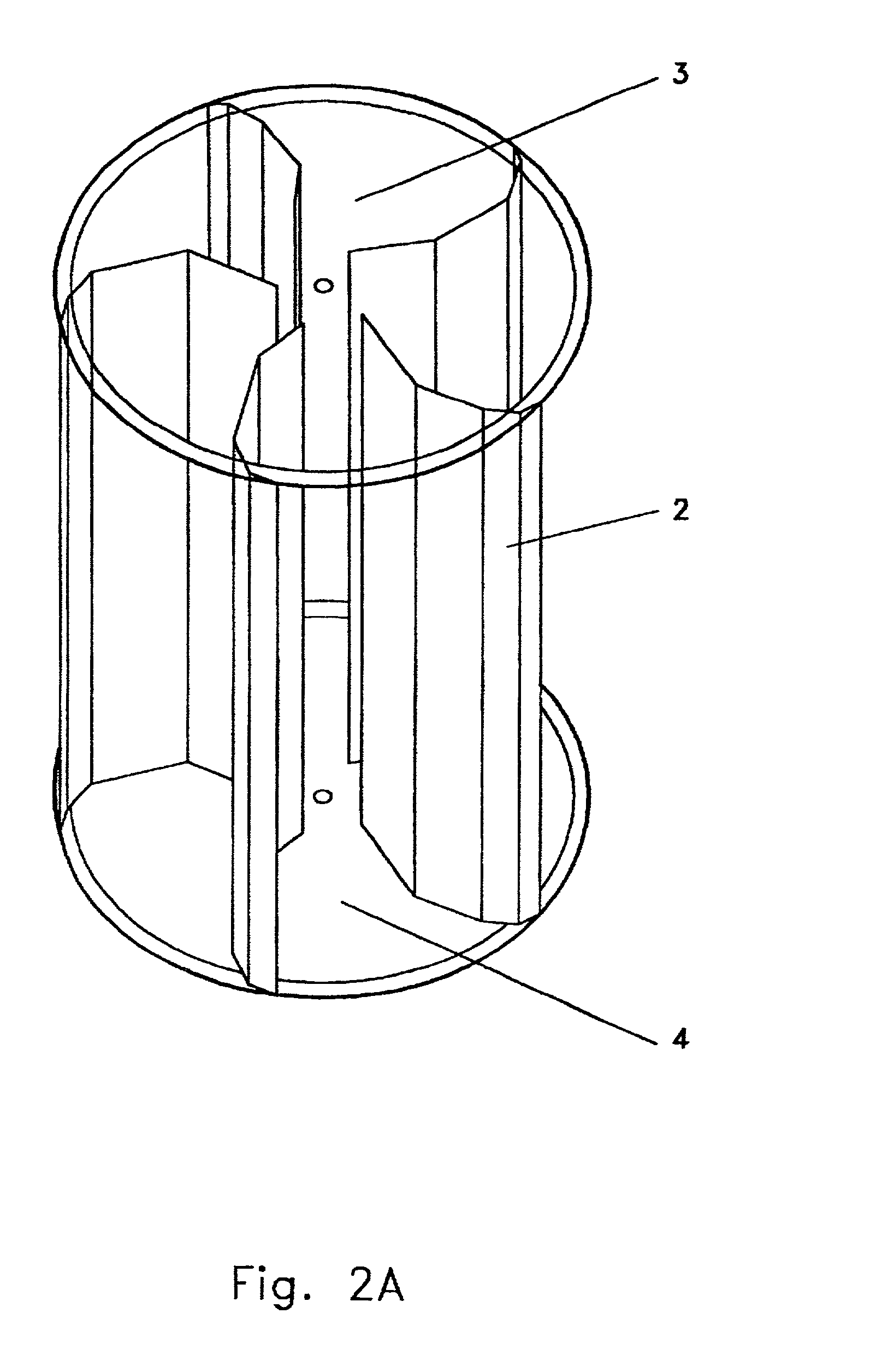 [0001] The present invention relates to improved vertical-axis wind turbines with enhanced conversion of wind kinetic energy into mechanical energy. Vertical-axis turbines are typically of a long axis type, allowing large columns of air to be harnessed. These devices differ from horizontal-axis (propeller) type windmills which typically pivot about a vertical axis in order that they may face directly into a wind. The improvement of the invention comprises the use of lightweight materials for the construction of the components of the wind turbine. Lightweight materials such as non-metallic composite sandwich panels are preferred. The vertical-axis turbines of this invention are designed to be employed as a cost effective alternate power source in any wind condition. [0002] Wind as a source of energy is a concept that has been promoted for some time. According to one source, there is evidence which shows that windmills were in use in Babylon and in China as early as 2000 B.C. The United States Patent and Trademark Office has granted patents on windmill devices dating back to the early to mid 1800's. Despite the continued research and development in this age old technology, until the present invention, no windmill or wind turbine device has successfully appropriately addressed some of the most important problems which have seemingly made the harnessing of wind not economically feasible. While wind is unquestionably a large potential source of energy, estimated to be about 5 kW per acre in the United States, its variability in velocity has made it an unreliable source. Many devices such as U.S. Pat. Nos. 4,850,792 to Yeoman, 4,035,658 to Diggs and 2,406,268 to Terhune have relied on the ability of concentrating low to moderate winds for producing power. Others, like those shown in U.S. Pat. Nos. 4,834,610 to Bond and 4,075,500 to Oman, et al. (a horizontal-axis turbine), have accomplished the harnessing variable wind speeds by using modern variable speed governors. No device currently known to the present inventors is capable of adequately harnessing low and high-Express winds for power production. High winds are characterized, for purposes of discussion as currents having average velocities above 45 m.p.h., or having gusts greater than 60 m.p.h. Many devices are designed to fold and/or feather in winds reaching certain levels. Such devices are illustrated in U.S. Pat. is Nos. 4,818,181 to Kodric, 4,632,637 to Traudt, and 3,942,909 to Yengst. These techniques, while intended to protect the structural integrity of the windmill, decrease a device's ability to produce power. Others, such as U.S. Pat. No. 5,391,926 to Staley and Elder, attempt to harness high winds emanating from any direction for power production but low to moderate winds have been unable to produce adequate torque for continual reliable power generation. Until the present invention variable winds have been an untapped source of energy by those skilled in the relevant art. [0003] In the past, wind driven power generators of all sorts have attempted to harness the energy present in the wind. Some have concentrated their efforts in the low to moderate wind range and suffer periodic damage from the occasional high wind while others work well in the moderate to high wind range with little or no success in harnessing low speed wind. No prior art has effectively drawn useable power from the slight breeze all the way to gale force winds. Perhaps one of the biggest reasons for the lack of all wind turbines has to do with the structural integrity of typical wind devices. By design many are lightweight, inadequately supported, and made from insufficient materials. A number of these devices are comprised of a multitude of moving parts, such as rotors, stators, vanes, shields, and the like. These parts not only compromise the integrity of the machine, but also require continuous maintenance, repair and/or replacement. For such a device, which may produce only a few kilowatts of power, the costs soon begin to outweigh the benefits. Another concept widely used is to build large multi-story wind turbines capable of producing at or near the megawatt level. Two such devices are shown in U.S. Pat. Nos. 3,902,072 to Quinn, and 3,994,621 to Bogie. It is believed that these devices would cost close to $100 million to build and several hundred thousand to maintain each year. Another example is the 1.25 MW generator installed near Rutland, Vermont. This is believed to be the largest windmill ever built in the United States, having two main blades each 175 feet in diameter. This facility operated intermittently between 1941 and 1945, during the war years when most resources were being used for war efforts. In 1945 one of the blades broke due to material fatigue and was never repaired, presumably due to a lack of cost efficiency. Similar to the smaller units, these large devices become cost prohibitive on a much larger scale. The present invention solves this second problem by presenting a low cost, low maintenance, cost efficient wind turbine. While certain aspects of the design have been known, until the present invention the proper combination of elements, new and old, has not been achieved to provide a commercially viable product. [0004] Variable wind velocity is not, of course, the only obstacle in harnessing kinetic energy from the wind. Wind direction has been another area of study and development. Wind currents are typically unpredictable, and due to topography, upper air disturbances, changing weather patterns, or seasonal variations, they rarely blow in the same direction for any substantial length of time. For this reason effective wind machines must be capable of immediately accommodating winds from a full 360 degrees. Some devices have attempted to accomplish this goal with pivoting shields, and stators or wind directing vanes. U.S. Pat. Nos. 4,474,529 to Kinsey, 5,374,94 to Stevens et al., the Yengst patent, and many other devices illustr