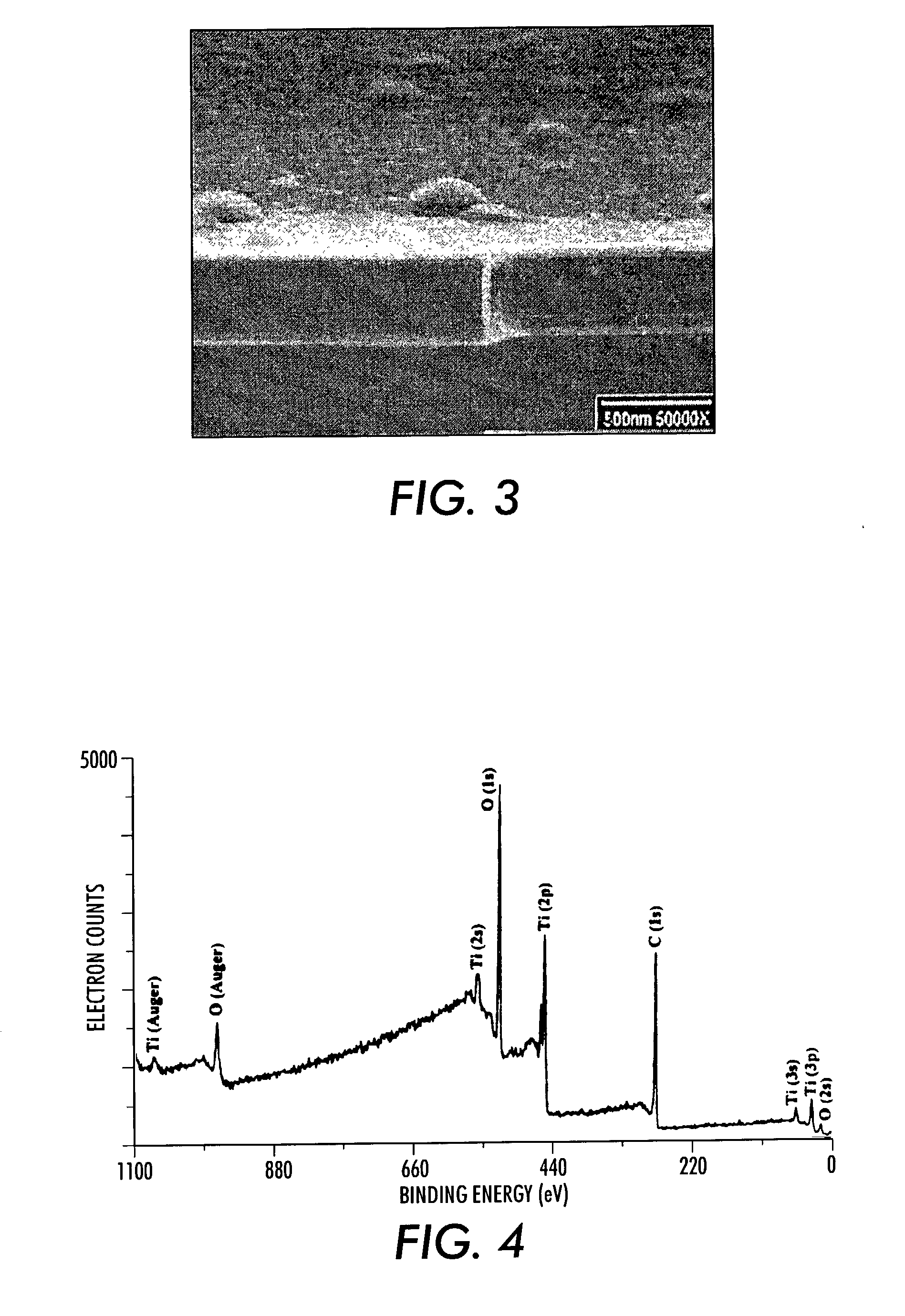 [0001] This application is a continuation-in-part of copending patent application U.S. Ser. No. 09/853,006, filed on May 10, 2001, which claims the benefit of the filing date of U.S. provisional patent application Serial No. 60/277,993 filed Mar. 22, 2001. [0002] This application is also a continuation-in-part of copending patent application U.S. Ser. No. 10/058,362, filed on Jan. 28, 2002, which claims the benefit of the filing date of U.S. provisional patent application Serial No. 60/284,226, filed on Apr. 18, 2001. [0003] The invention herein was supported by Department of Defense BMDO Phase 1 SBIR Contract No. DAAG55-97-C-0038. [0004] Compositions of matter comprising at least two elements, molecules, grains, crystals, structural units, or phases of matter, and more particularly to metal alloys, mixtures of metals and metal oxides, mixed composition semiconductors, and mixed organic and inorganic substances, wherein the scale of mixing of the reactants may be on the order of nanometers or less; and wherein the resulting distribution of elements, molecules grains, crystals, structural units, or phases of matter may range from nanometers to about one millimeter; and processes for preparing these compositions of matter as thin films or particles. [0005] There is a large demand for multi-component substances across a range of technological and industrial applications. These multi-component substances may be required for particular applications as thin films for use in optical and opto-electronic devices, as insulating and diffusion barriers in silicon-on-insulator electronic devices, chemical sensors, MEMs, pyroelectrics and superconducting films among others. Alternatively, such multi-component substances may be required for other applications as fine particles, or powders, for use in structural materials, pharmaceuticals, medical devices, separation processes, catalysis, and others. [0006] The present invention provides a method and apparatus for the synthesis of multi-component substances, comprising entities of at least two elements, molecules, grains, crystals, structural units, or phases of matter, in which the scale of the distribution of the elements, molecules, or phases of matter may range from on the order of nanometers or less, to about one millimeter, depending upon the specific materials and process conditions that are chosen. The method and apparatus of the present invention further provides processes for preparing these compositions of matter as thin films or particles. The present invention additionally provides examples of such substances. [0007] In regard to the term “multi-component”, as used herein, a “component” is defined as an entity, which is either a discontinuous material distributed throughout another material; or a generally continuous material, through which is distributed other materials. Thus, in the present invention, a component may be a pure element, distributed throughout or coated upon a general continuous phase of matter, such as titanium metal, cerium metal, silicon, or other elements. A component may be a molecular substance, or an inorganic or ionic compound distributed throughout or coated upon a general continuous phase of matter, such as gallium nitride, silicon carbide, zinc oxide, titanium nitride, cerium oxide, hafnium oxide, and the like. A component may be a grain or crystal structure within a metal alloy wherein different grains or crystals within the alloy comprise different compositions, e.g. a particular metal that has a specifically advantageous grain structure. A component may be a first structural unit of matter, distributed throughout a second phase of matter, e.g. fibers, nanotubes, or nanospheres distributed throughout e.g. a polymer, a glass, and the like, such as a catalytic metal distributed within a matrix structure; or cerium oxide (CeO2, or Ce2O3) or silicon oxide (SiOx, where x is 1 or 2). A component may be an inorganic phase of material distributed throughout or coated upon an organic phase of matter, or vise versa, such as an organic dye condensed within a continuous inorganic thin film; or a dye embedded in an inorganic matrix; or sequentially layered combinations of such films. A component may be a substantially continuous phase of matter through which other components are distributed or coated upon as defined above. [0008] The single feature in common with all of the above variants of components is that they each are products resulting from the process of the present invention. Accordingly, novel materials produced by the process of the present invention may comprise two or more components selected from elements, molecules, inorganic or ionic compounds, grains, crystals, structural units, and phases. The components, while most often being present as solids, may also exist as liquids or gases in the materials of the present invention. [0009] The unique capabilities of the energy assisted molecular beam deposition processes of the present invention, including pulsed arc molecular beam deposition (PAMBD), laser assisted molecular beam deposition (LAMBD), and electron beam assisted molecular beam deposition (EAMBD), enable the instantaneous mixing of reactive chemical species on a molecular scale, such that the resulting film or powder products have uniform repeating structures distributed through them which may range from nanometers or less, to about one millimeter. For example, metal alloys with extremely fine grain structure can be produced by the PAMBD process. Such unique metal alloys are valuable as e.g. heterogeneous catalysts, sensor elements, and high strength materials. [0010] Mixed organic and inorganic matrices may also be synthesized in thin film or particulate form. For example, one may synthesize metal/metal oxide films doped with organic or covalent molecules; or metal/metal oxide particles coated with organic films. One may further synthesize an organic dye or pigment encased within a metal oxide