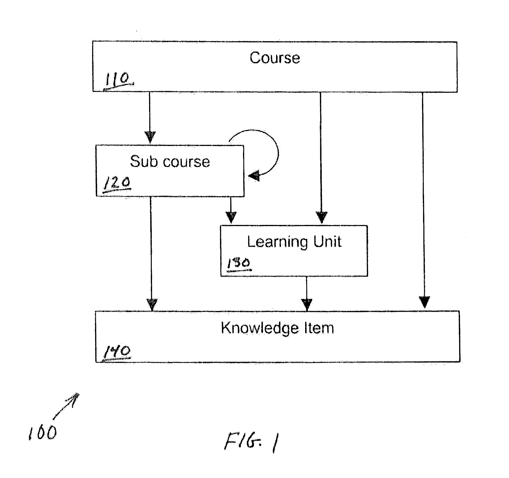 a course data structure stored in the memory, the course data structure including information used by the application to present an e-learning course, the course data structure including: