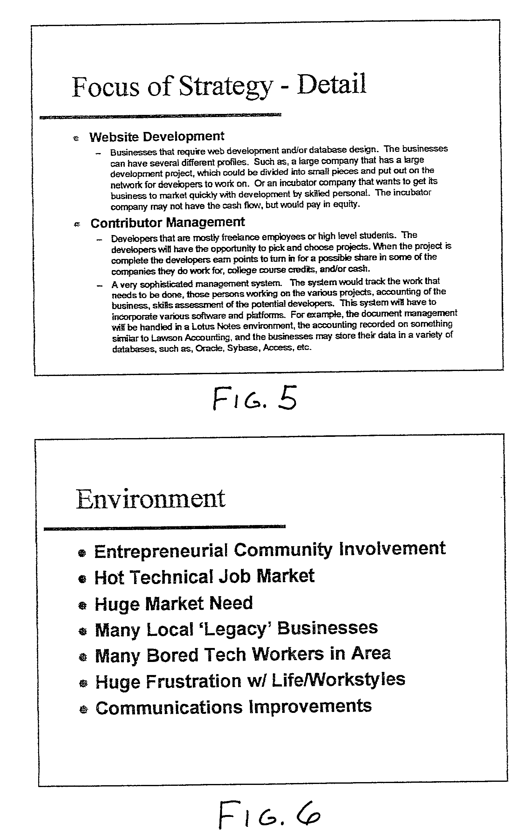 [0001] This document provides a list of high-level business functions of an internet website strategy. These business functions have been developed by Dennis Van Dusen. [0002] 1.1 Identification [0003] This Business Functions Report (FR) applies to the development of an internet website and an information delivery strategy. [0004] 1.2 System Overview [0005] 1.3 Document Overview [0006] This document enumerates business functions for the effort as found by Dennis Van Dusen thus far in the requirements definition phase of the project. The Business Functions Report contains the following sections: [0007] 1. Scope. This section is divided into the following paragraphs. [0008] 1.1 Identification. This paragraph contains a full identification of the system and the software to which this document applies, including, as applicable, identification number(s), title(s), abbreviation(s), version number(s), and release number(s). [0009] 1.2 System overview. This paragraph briefly states the purpose of the system and the software to which this document applies. It describes the general nature of the system and software; summarizes the history of system development, operation, and maintenance; identifies the project sponsor, acquirer, user, developer, and support agencies; identifies current and planned operating sites; and lists other relevant documents. [0010] 1.3 Document overview. This paragraph summarizes the purpose and contents of this document and describes any security or privacy considerations associated with its use. [0011] 2. Referenced documents. This section lists the number, title, revision, and date of all documents referenced in this specification. This section also identifies the source for all documents not available through normal Government stocking activities. [0012] 3. Business functions. This section is divided into the following paragraphs to specify the High Level Business Functions in the system. Each business function has been assigned a project-unique identifier to support traceability. [0013] 3 Alpha List of Business Functions [0014] 3.1 E-Effort Management [0015] E-Effort Networks, Inc. is set to become an affordable provider of web development to new website owners and to small and growing entrepreneurial web ventures in the Baltimore-Washington area. [0016] It will provide website development, web database management, and web hosting services to clients on a fee basis. For a select set of clients, E-Effort Networks, Inc. will also provide assistance with business systems and capital investment acquisition in exchange for fees and/or an equity stake in the client. [0017] E-Effort Networks, Inc. will capture web development market share by being the low-cost provider in the region, leveraging its low overhead E-Effort (virtual teamwork) environment. This environment consists of a small core management team and a distributed network of IT professionals organized through a sophisticated web-based project management system. Initially, the IT professionals will consist of off-hour professionals and top-tier university students. [0018] E-Effort Networks, Inc. will provide web development and/or business development services for two types of clients: [0019] 1. Businesses that participate on a cash payment basis. These will include full web development and “surge” development projects. These sites are expected to be relatively simple in nature in most cases. [0020] 2. Incubated Ventures that participate in return for partial or full payment in equity. [0021] The E-Effort Task Management System is a web based system for task assignment, bidding, and management. This system allows prequalified IT and Electronic Graphic Design professionals to bid on task assignments, complete project management updates, and receive compensation while working in their own environments. [0022] E-Effort Networks, Inc. will provide web development services to its customers with freelance and student developers managed using a Lotus Notes-based project management tool to track client website development task progress. E-Effort Networks, Inc. management will solicit clients and draft contracts for work with existing companies for cash and with startups for a cash-equity mix. Projects are expected to be surge work and web development for existing businesses, and web development for startups. [0023] 3.1.1 Task Management for Website Build Tasks [0024] The E-Effort Task Management System is a web based system for task assignment, bidding, and management. This system allows pre-qualified IT and Electronic Graphic Design professionals to bid on task assignments, complete project management updates, and receive compensation while working in their own environments. [0025] E-Effort Networks, Inc. will provide web development services to its customers with freelance and student developers managed using a Lotus Notes-based project management tool to track client website development task progress. [0026] Deliverables, In General [0027] Description of Result Contents [0028] Contact Information [0029] Status Information [0030] Issues/Problems List [0031] Limitations List [0032] Zip of Results, with proper directory structures [0033] New Information regarding task [0034] 3.1.1.1 Site Construction Tasks [0035] planning a site, designing it, actually building it, effectively promoting it and growing its capabilities [0036] 3.1.1.1.1 Site Design [0037] If you created a solid business plan, you have already done much of the work of designing your site. For example, you have already selected applications, determined the site goals, done your resource planning, and selected the design and development tools. [0038] As you continue to design your site, remember that truly great web applications are, above all else, practical. That means they are well planned, easy to use, easy to maintain, intuitive, open (they support most browsers without plug-ins), relevant, and addictive. [0039] Prototyping and testing are important 