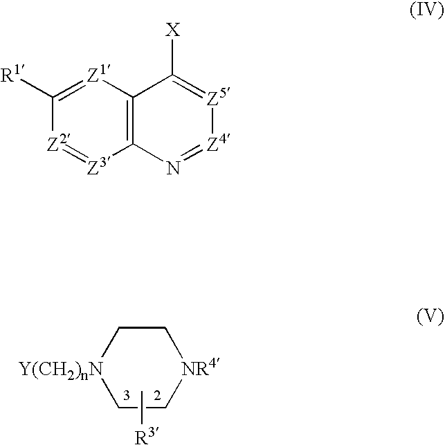 [0114] wherein n is as defined in formula (I); Z1′, Z2′, Z3′, Z4′, Z5 R1′, R3′ and R4′ are Z1, Z2, Z3, Z4, Z5, R1, R3 and R4 as defined in formula (I) or groups convertible thereto; and X and Y may be the following combinations: [0115] (i) X is A′—COW, Y is H and n is 0; [0116] (ii) X is CR6=CR8R9, Y is H and n is 0; [0117] (iii) X is oxirane, Y is H and n is 0; [0118] (iv) X is N═C═O and Y is H and n is 0; [0119] (v) one of X and Y is CO2Ry and the other is CH2CO2Rx; [0120] (vi) X is CHR6R7 and Y is C(═O)R8; [0121] (vii) X is CR7═PRz3 and Y is C(═O)R9 and n=1; [0122] (viii) X is C(═O)R7 and Y is CR9═PRz3 and n−1; [0123] (ix) Y is COW and X is NHR11 ′, NCO or NR11′COW and n=0 or 1 or when n=1X is COW and Y is NHR11′, NCO or NR11′COW; [0124] (x) X is NHR11′ and Y is C(═O)R8 and n=1; [0125] (xi) X is NHR11′ and Y is CR8R9W and n=1; [0126] (xii) X is NR11′COCH2W or NR1 11SO2CH2W and Y is H and n═O; [0127] (xiii) X is CR6R7SO2W and Y is H and n═O; [0128] (xiv) X is W or OH and Y is CH2OH and n is 1; [0129] (xv) X is NHR11′ and Y is SO2W or X is NR11′SO2W and Y is H, and n is 0; [0130] in which W is a leaving group, e.g. halo or imidazolyl; Rx and Ry are (C1-6)alkyl; Rz is aryl or (C1-6)alkyl; A′ and NR11′ are A and NR11 as defined in formula (I), or groups convertible thereto; and oxirane is: