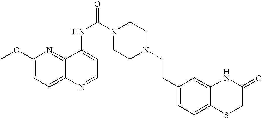 4-[2-(3-Oxo-3,4-dihydro-2H-benzo[1,4]thiazin-6-yl)-ethyl]-piperazine-1-carboxylic acid (6-methoxy-[1,5]naphthyridin-4-yl)-amide.