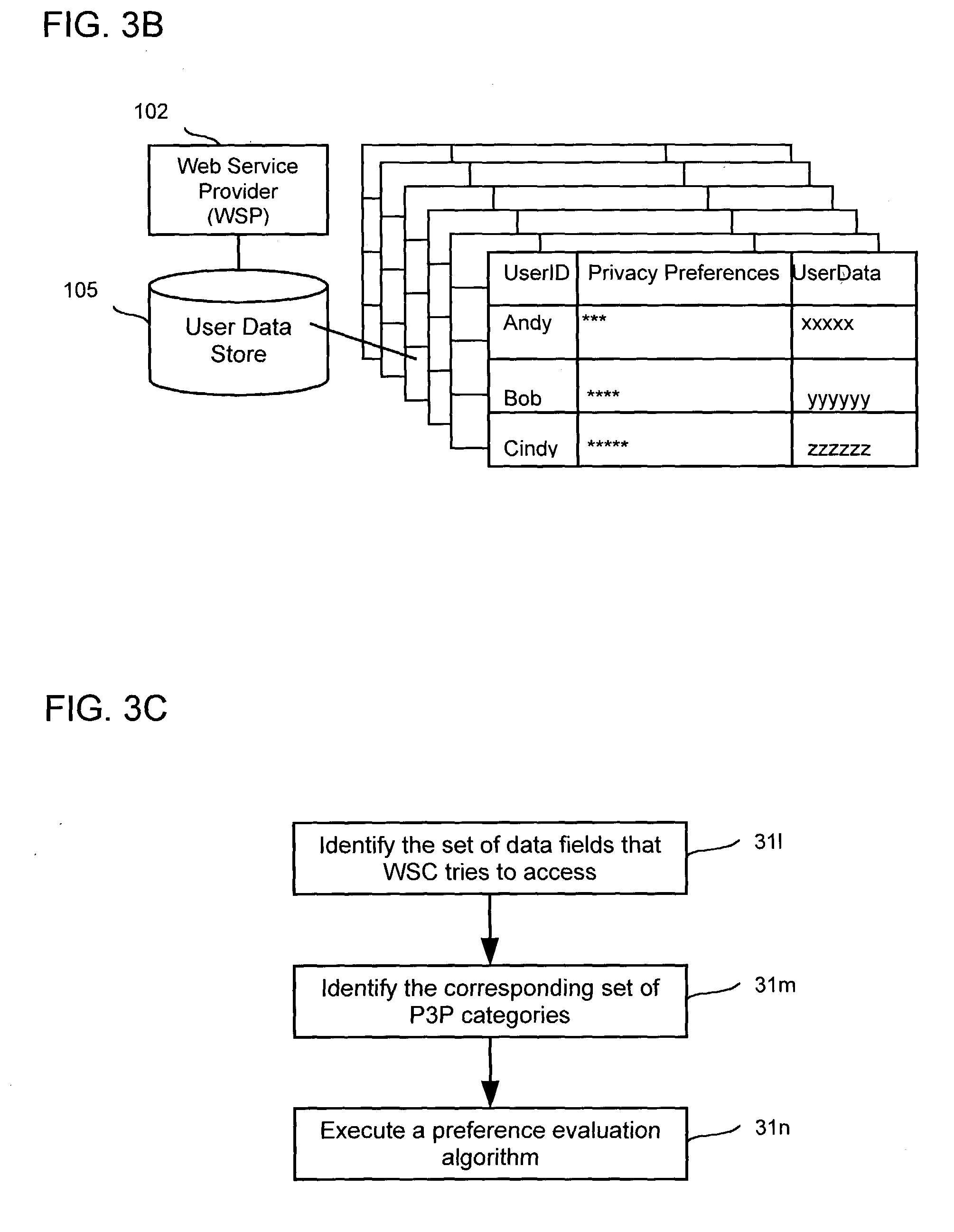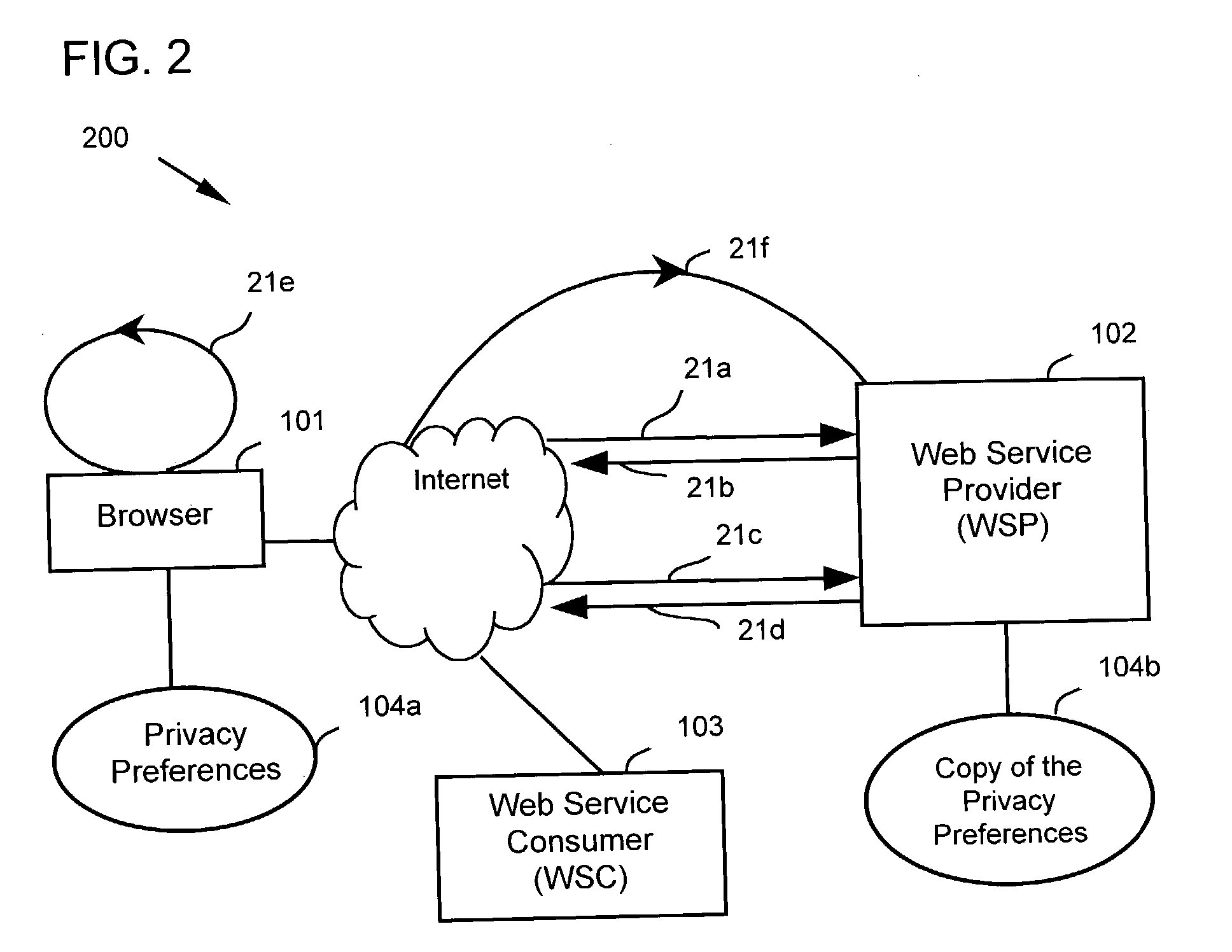 at least two Web sites; at least one client, said at least one client and said at least two Web sites being communicatively coupled to each other via the Internet; wherein a number of users registered with said Web service providers through said at least one client, each of the users having a single set of privacy preferences; wherein when a user accesses a Web service consumer site (WSC) which in turn sends a service request to a Web service provider (WSP), said WSP classifies the user's data in terms of P3P categories; wherein said WSP updates its cache of said WSC's P3P policies when necessary; wherein said WSP identifies said WSC's P3P policies based on the data included in the service request and evaluates the user's preferences against said WSC's P3P policies; wherein if said WSC's P3P policies exclude the user's privacy preferences, then said WSP prompts the user directly or indirectly via said WSC for permission and sends the user's preference changes back to said browser via HTTP response header for the user's response. 17. The apparatus of the URL of said WSC's P3P policies and/or reference file; a timestamp of said WSC's last modification on its P3P policies and/or reference file; and the URL that the user used to access said WSC. 18. The apparatus of identifying the set of data fields that said WSC is trying to access; identifying the corresponding set of P3P categories using data-to-P3P category mapping; and executing a preference evaluation algorithm by taking input parameters. 19. The method of said WSC's P3P policies used at the URL that the user used to access said WSC; and the set of P3P categories that said WSC tries to access.