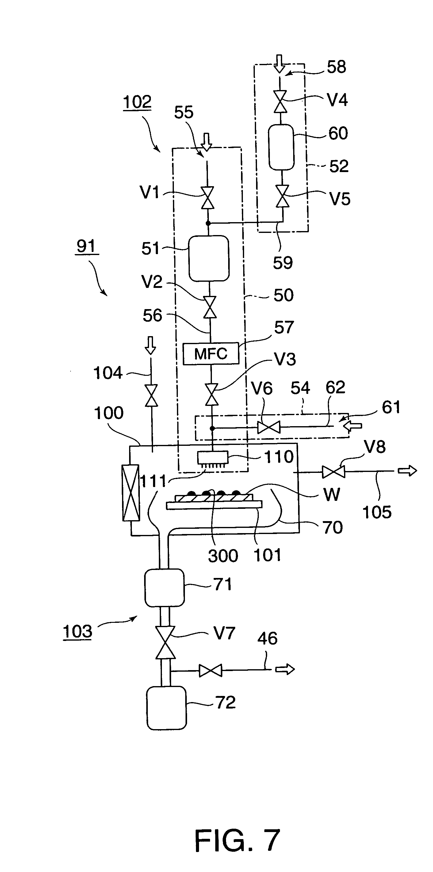 wherein the coating unit and the heat-treating unit each include a control means for independently controlling the atmosphere in a treating chamber for treating the 7. The thin-film forming method according to claim 11. The thin-film forming apparatus according to 8. The thin-film forming method according to any atmosphere in a treating chamber for treating the substrate. 12. The thin-film forming apparatus according to 9. The thin-film forming method according to any in the connection chamber. 13. The thin-film forming apparatus according to any one of 14. The thin-film forming apparatus according to any one of 10. An apparatus for forming a thin-film nozzle, for storing the liquid material, and the liquid-feeding system includes a cleaning means for cleaning the liquid-feeding system. 15. The thin-film forming apparatus according to 16. The thin-film forming apparatus according to 11. The thin-film forming apparatus according to 17. A method for manufacturing a semiconductor device having functional layers, any one of the functional layers being formed by applying a liquid material containing a component of the functional layer onto a substrate, the 12. The thin-film forming apparatus according to